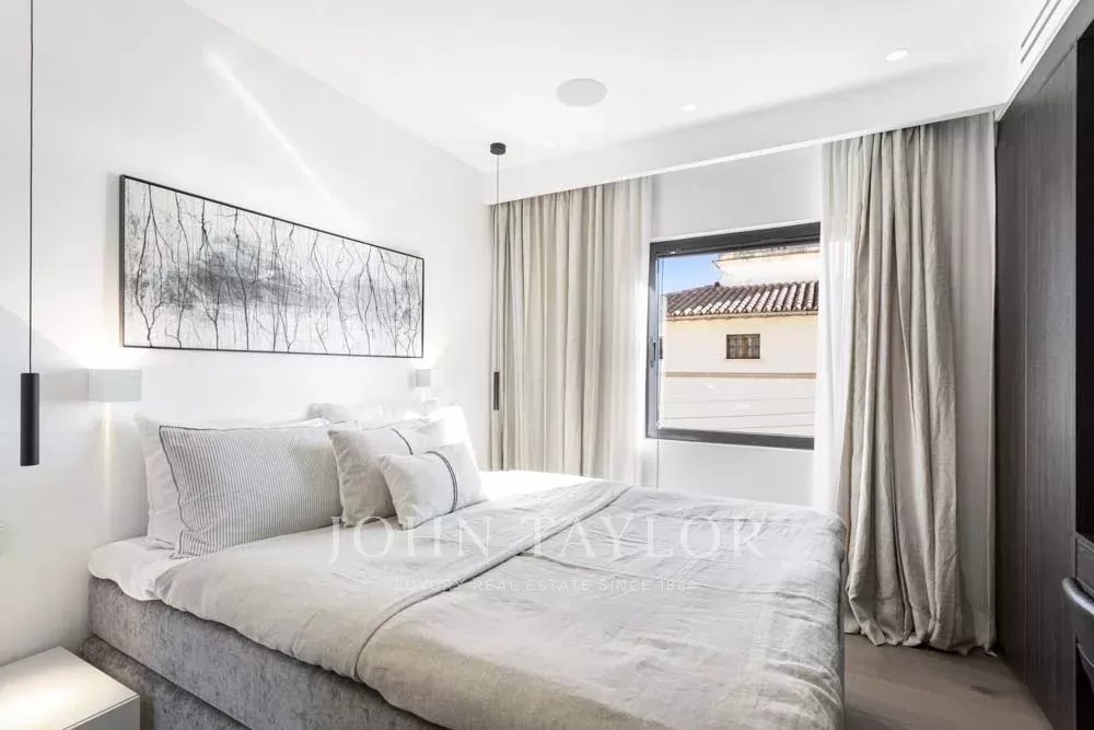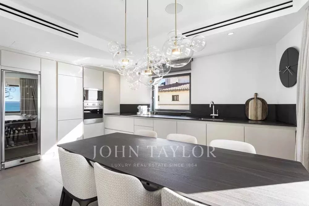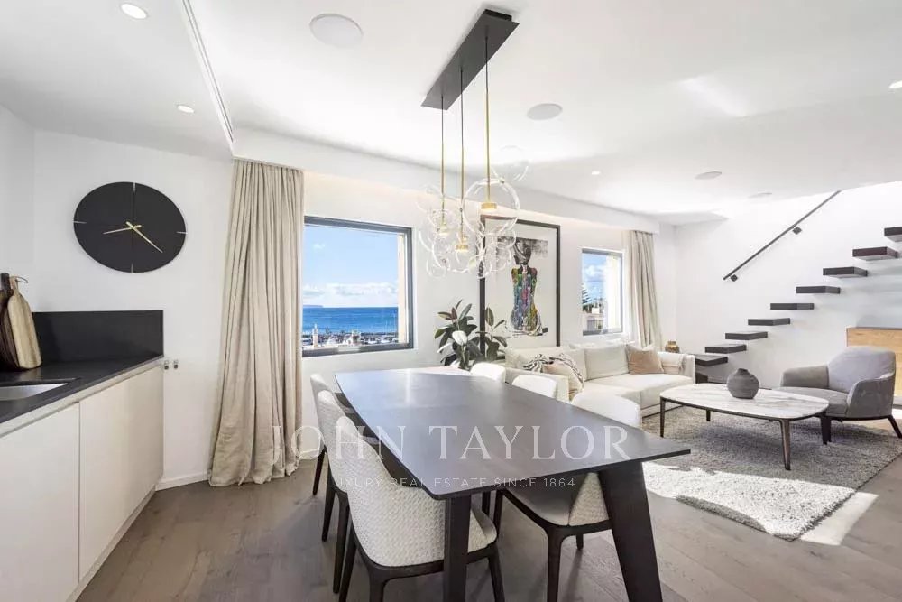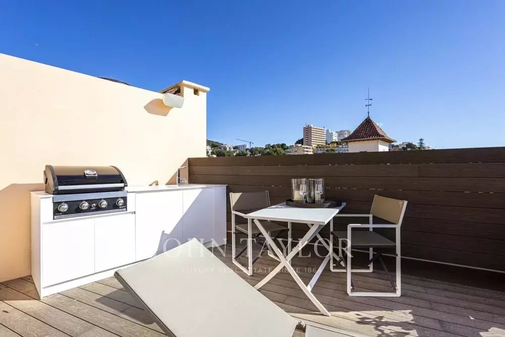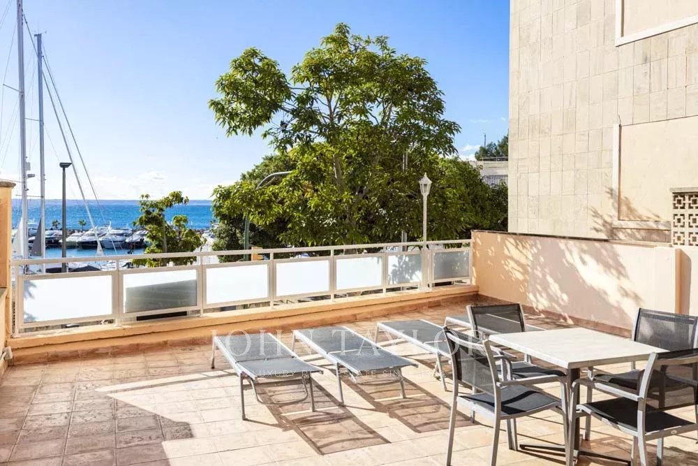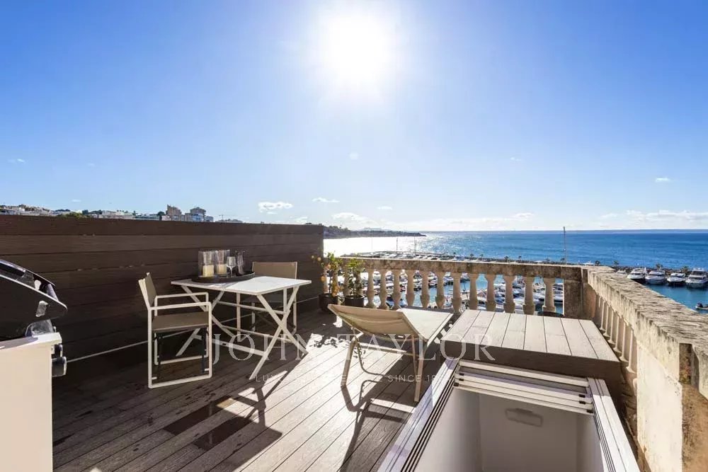 New built Penthouse in one of Mallorca’s most prime locations with Calanova Marina as your neighbor. Panorama port & sea views from all rooms in this unique Penthouse. The interior is with the finest materials & most exclusive brands. It offers an open plan fully fitted kitchen, dining, and living room, two bedrooms, two bathrooms (one en suite), and a laundry area. The entire apartment enjoys central a/c, underfloor heating, and a built-in hi-fi music system. From the living area, the rooftop terrace is accessed via a custom-made designer staircase offering truly spectacular views. The terrace includes a Summer kitchen with B.B.Q and fridge ideal for exterior dining and enjoying the views or simply sheer relaxation. The building includes a community swimming pool and terrace. The penthouse will be sold fully furnished and decorated except for the art collection. Possibility to obtain garage parking in the immediate vicinity.