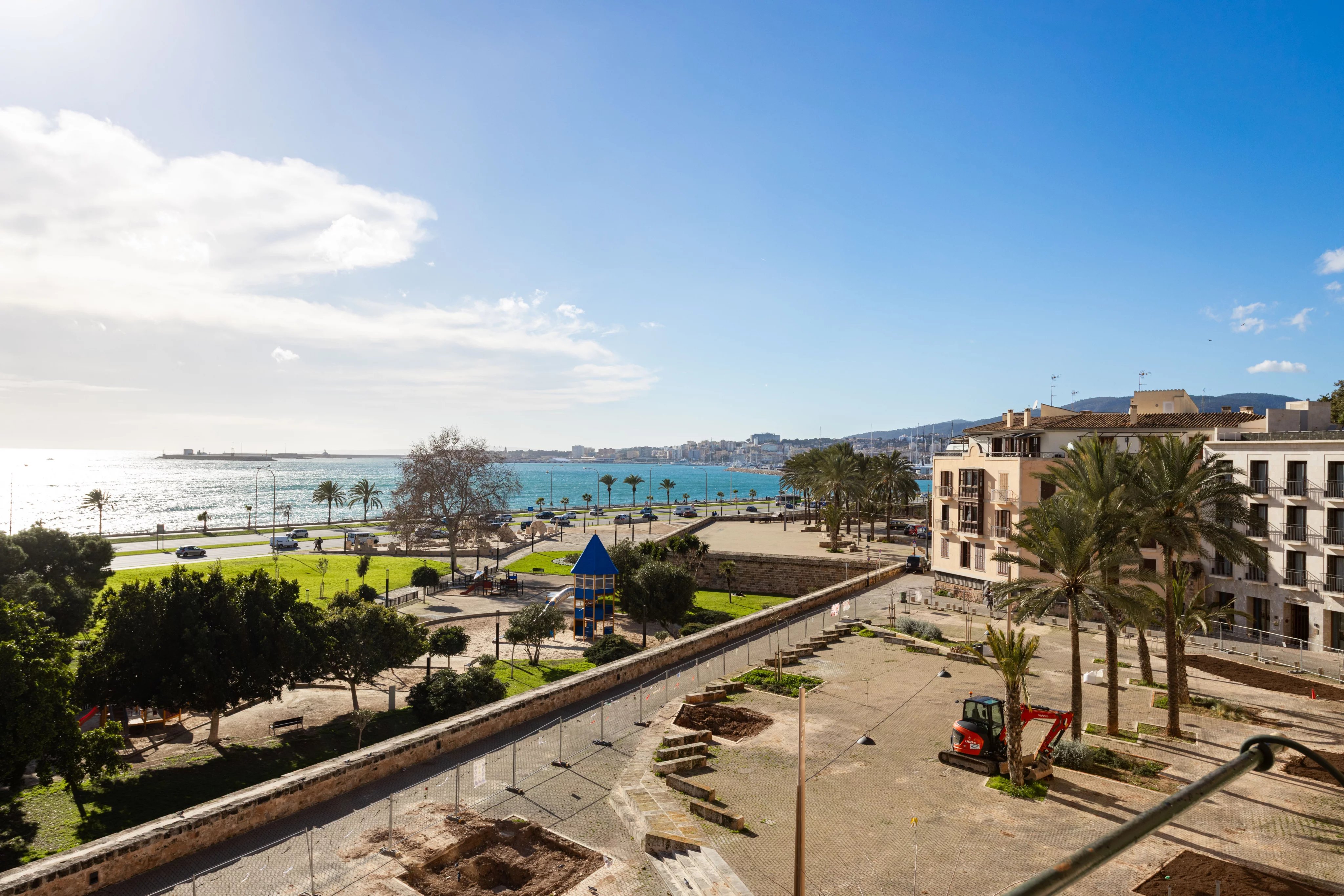 Located in one of the most prestigious areas of Palma’s historic old town, this timelessly elegant and charming apartment offers approximately 249 sqm of living space. Set directly along the historic city walls on the front line of the sea, the property enjoys uninterrupted Mediterranean views and represents a rare opportunity in the highly sought-after district of La Calatrava.