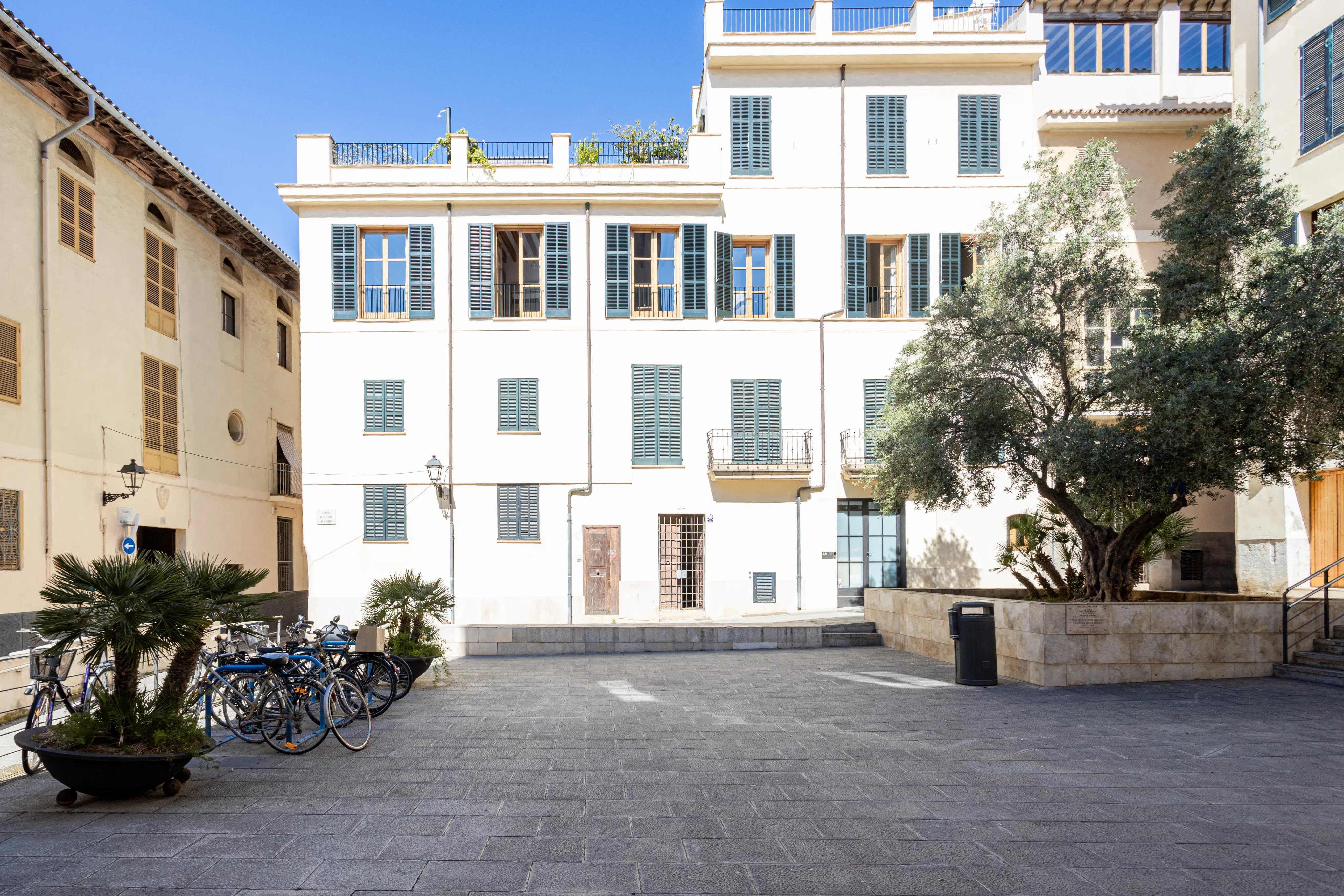 In the heart of Calatrava, one of the most sought-after areas of Palma’s old town, this property occupies a corner position overlooking a wide square, offering a very rare feeling in the historic centre: open light, privacy, and no buildings directly in front of the windows, with the theatre located on the opposite side of the square.