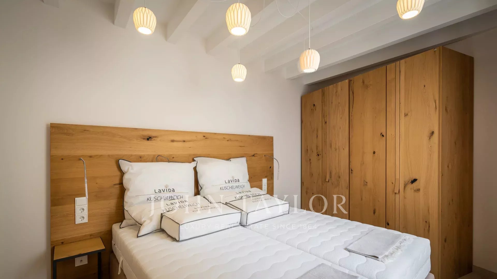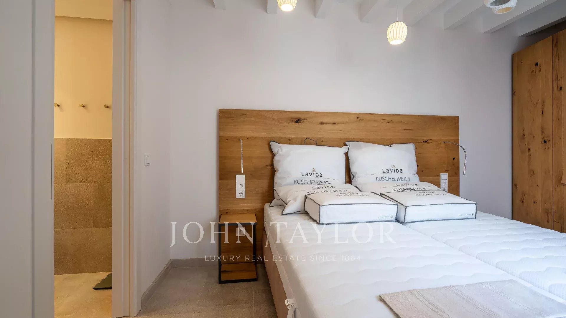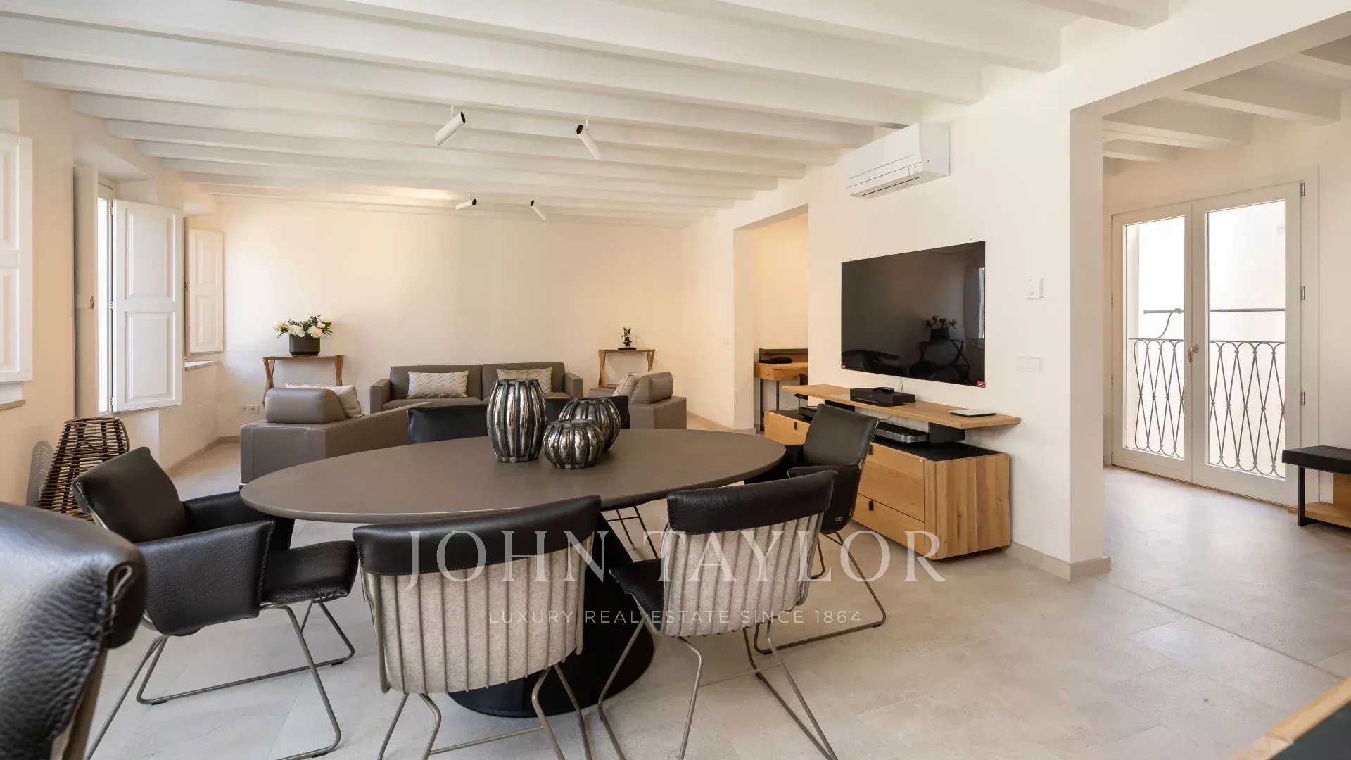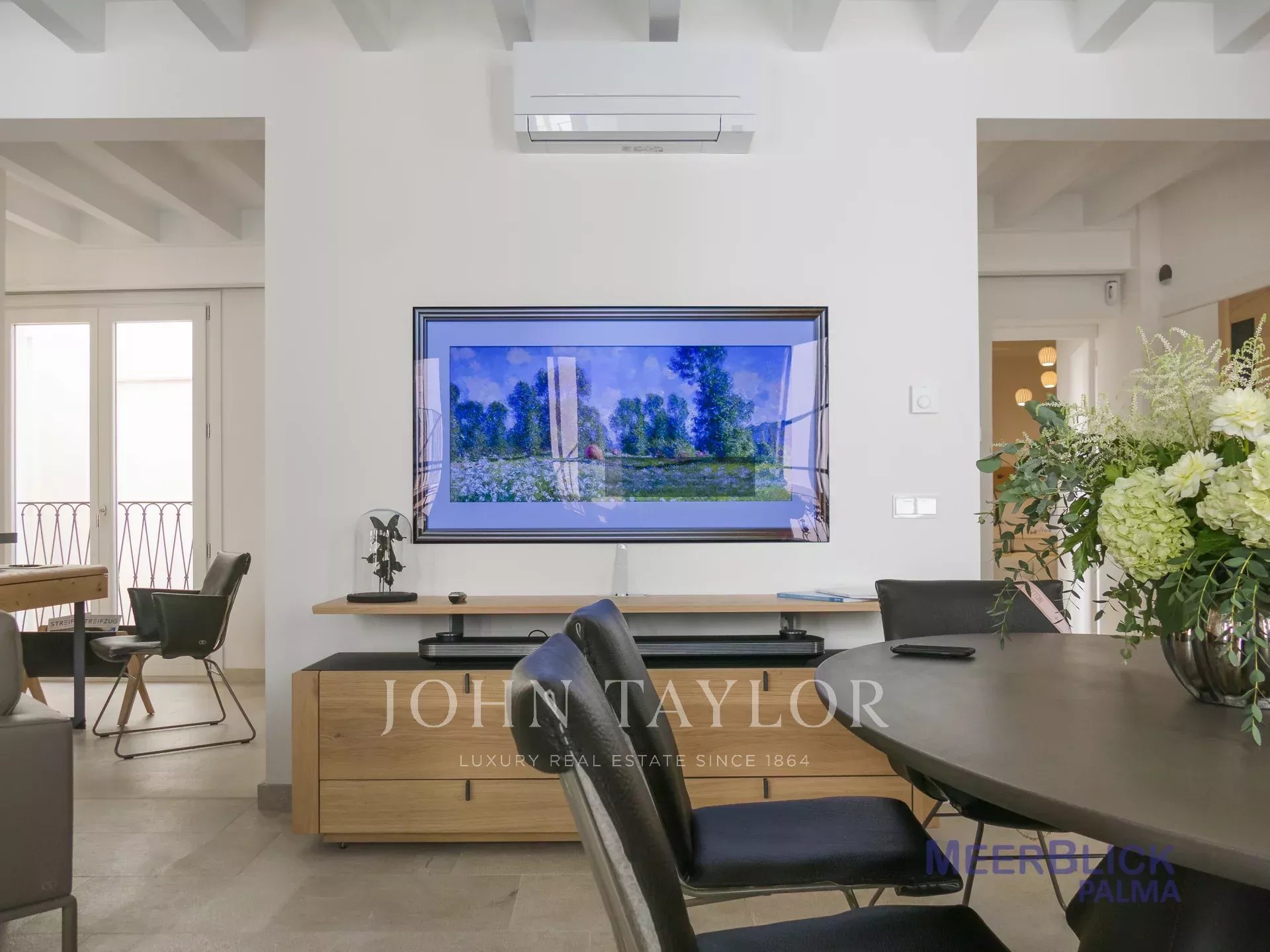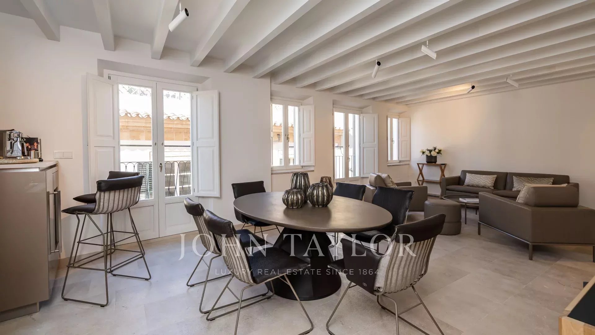 "Sea View Palma Residence" is located in one of the most emblematic streets in Palma just off Plaza Santa Eulalia. This first-floor apartment stands out for its modern clean lines and bright rooms due to its floor-to-ceiling windows. Its interior offers overall earthy, warm natural tones with carefully selected furniture. The open plan kitchen, dining, and living room area with elevated roof ceiling offers a loft feeling, and working with brands such as De Sede, Voglaur, Joka, Häcker, Miele and Gaggenau ensures maximum quality and comfort. It has two ensuite bedrooms, a guest bathroom, and a private patio. The property will be sold fully furnished and it includes underfloor heating, central A/C, and home automation. Garage parking is optional at an additional cost.