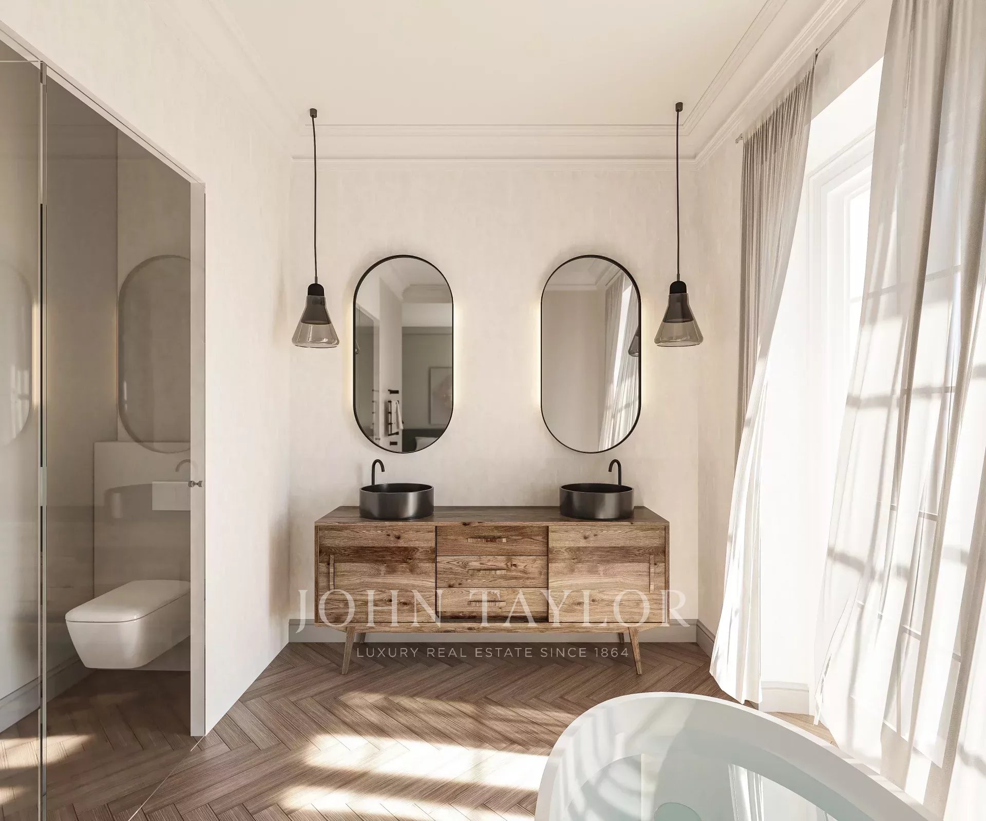 This ground-floor duplex, featuring a rooftop terrace, offers incredible natural light through its floor-to-ceiling windows that face the private 11 sqm garden. Its 35 sqm open-plan kitchen, dining, and living area are both comfortable and spacious. This floor is completed with a storage room and a guest lavatory. The first floor includes 2 large bedrooms with en suite bathrooms and a laundry room. Last but not least is the fantastic 18 sqm rooftop terrace, perfect for enjoying the best of the Mediterranean climate. All floors are accessible via a private lift, assuring maximum comfort.