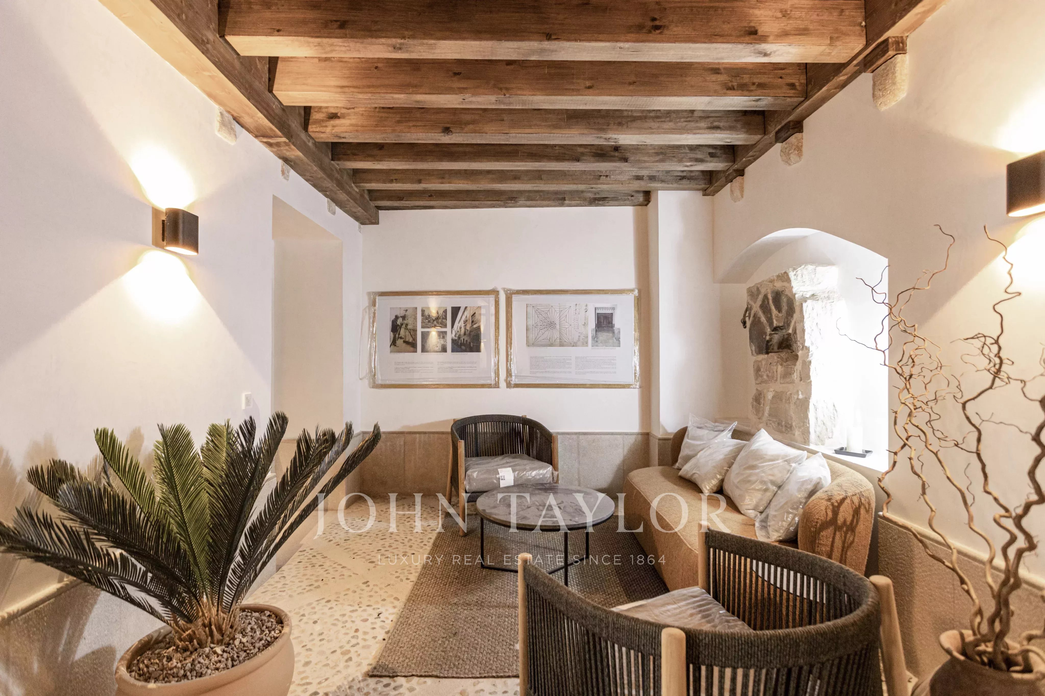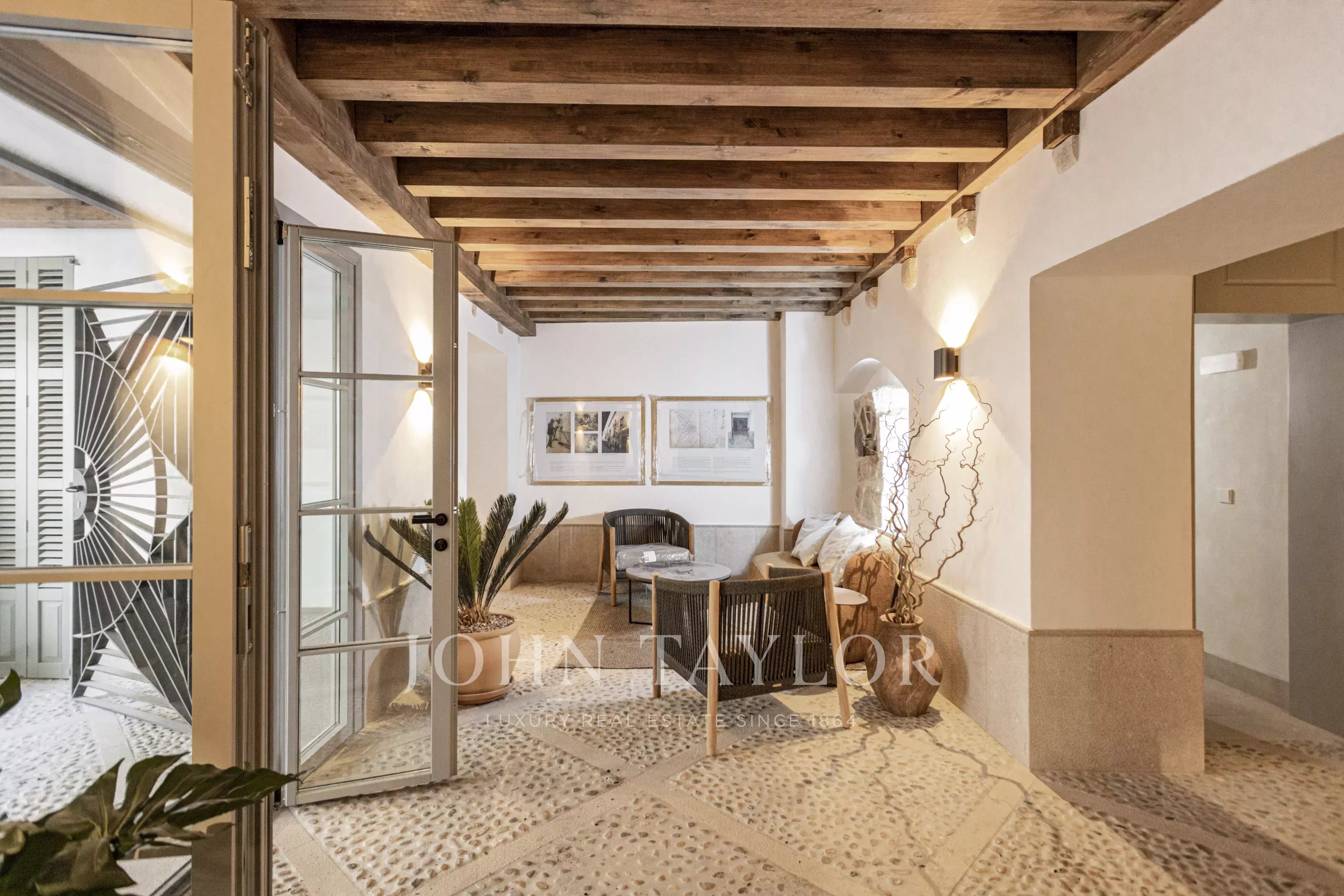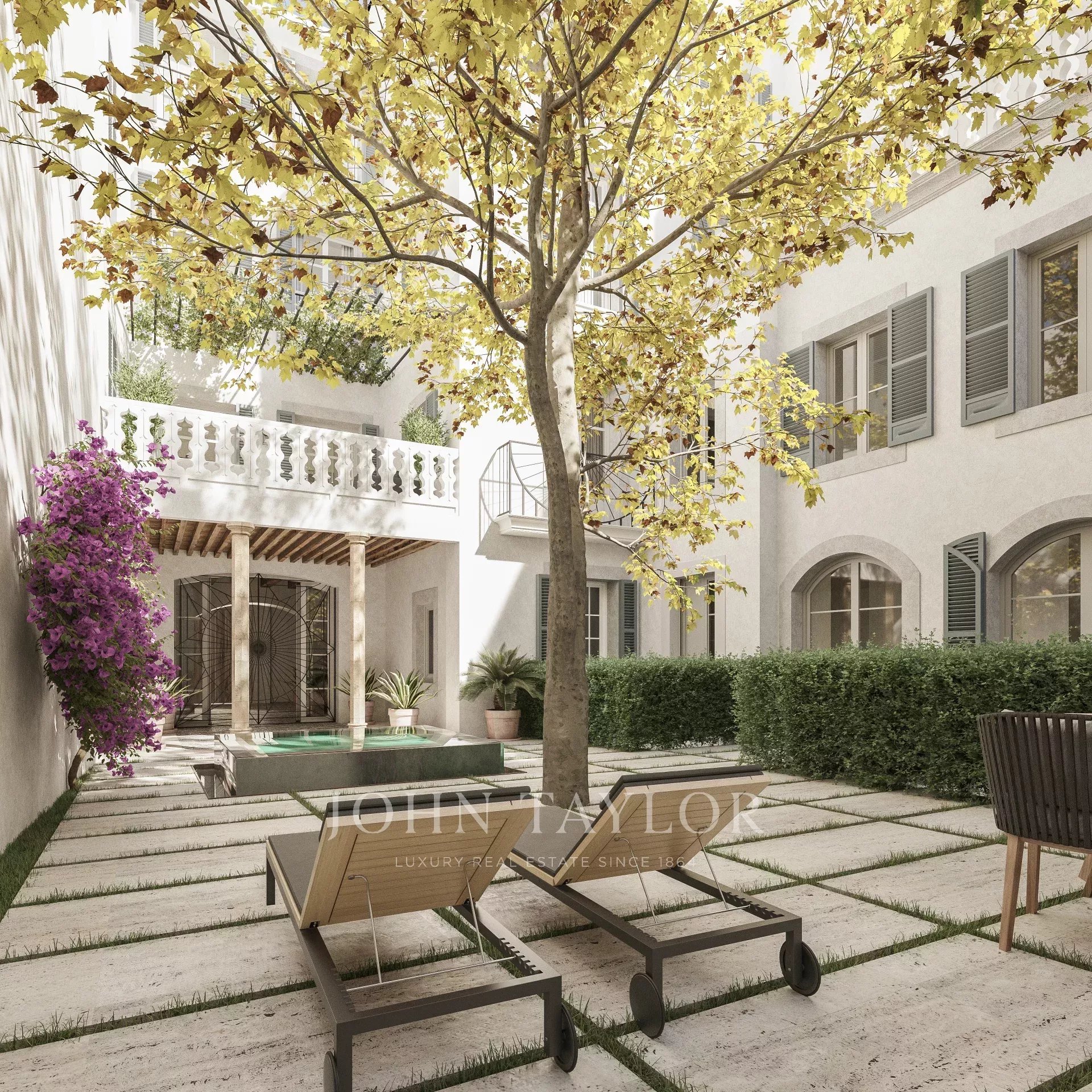 This fabulous new project in construction at present will be transformed into a stunning 5-unit residence built around a private garden. This elegant complex is an integral part of the Old Town and offers a true lush oasis of peace, summer shade, and tranquility (in winter, the large old deciduous trees lose their leaves and let the sunshine through). The units vary from garden apartments, duplexes, and triplexes, from 81m2 to 190m2, and 1, 2, and 3 bedrooms. Both the ground floor and top floor units come complete with exterior areas, ideal for recreation or sheer relaxation. The project focuses on restoring the building to its original glory with all the benefits of modern-day living, such as beamed ceilings, floor-to-ceiling windows, underfloor heating, fully fitted kitchens with Siemens appliances central a/c, and home automation system, and using noble materials such as natural Binissalem stone and oak flooring.