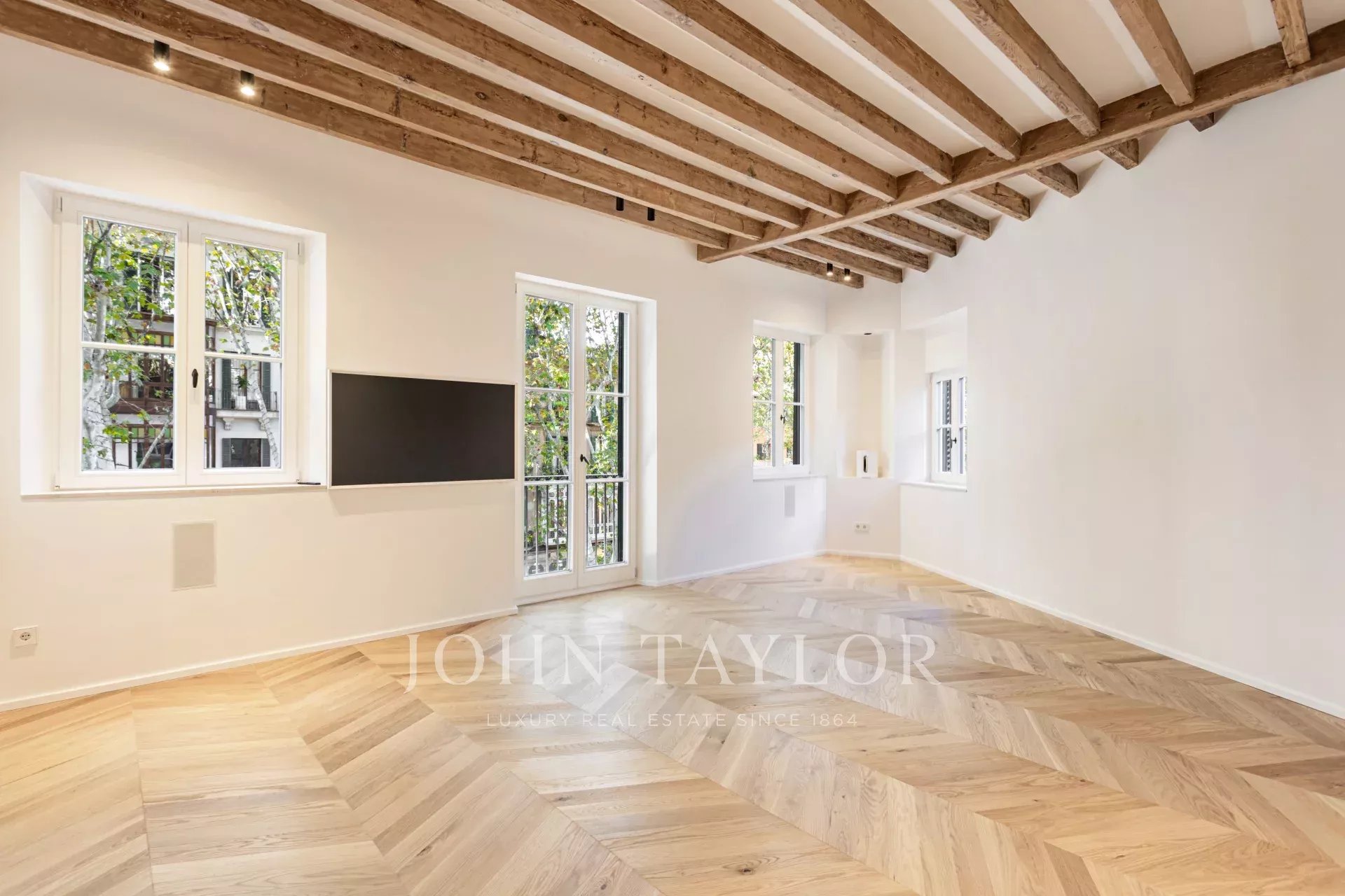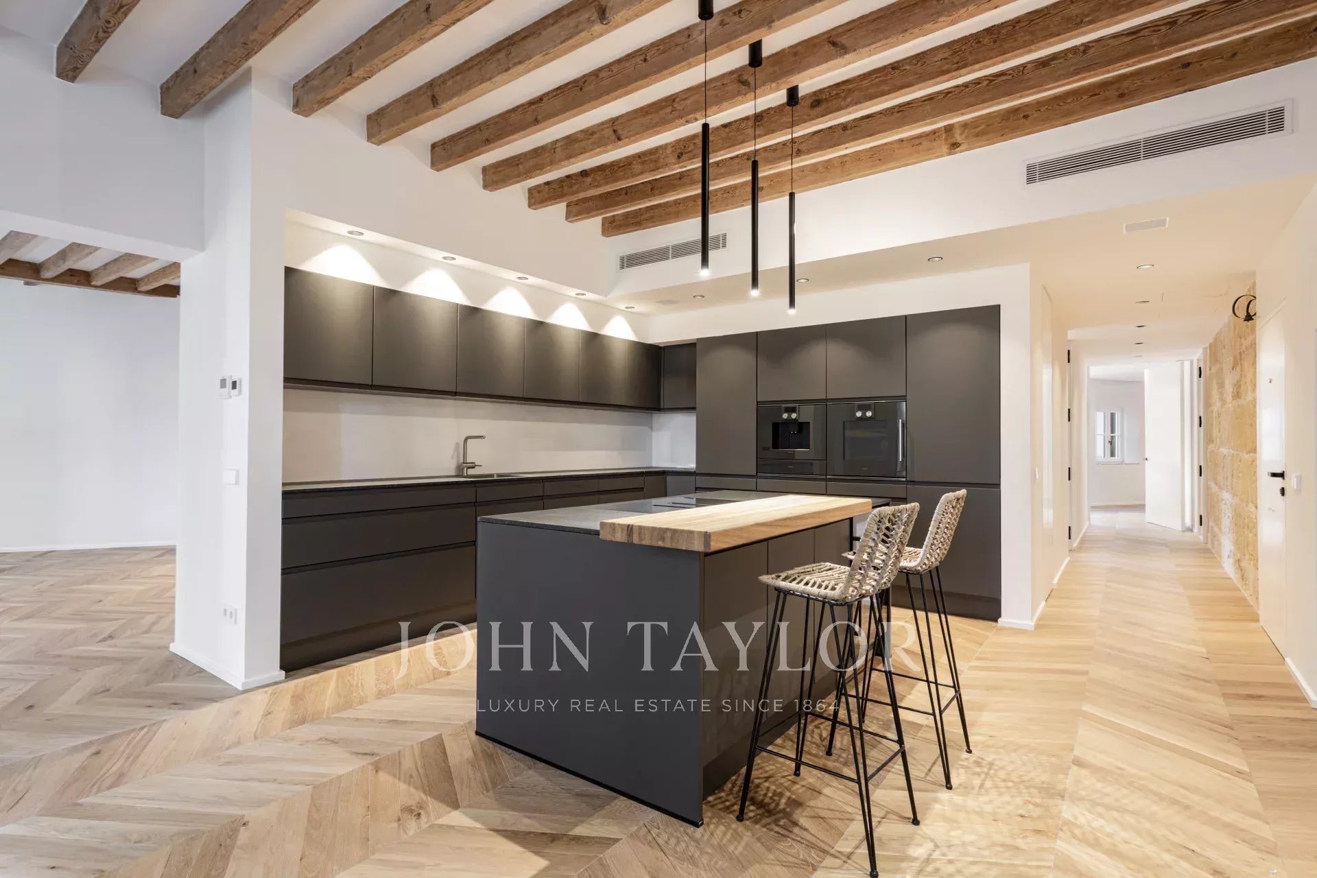 Discover this exceptional luxury apartment, located in the heart of Palma's Old Town on the renowned Rambla. Completed in October 2024, this property combines modern elegance with historic charm, providing direct access to Palma’s vibrant lifestyle, restaurants, and shopping. The apartment boasts a spacious, open-plan layout featuring a fully-fitted kitchen, dining, and living room. Floor-to-ceiling windows flood the space with natural light, highlighting the stunning natural oak wood flooring, original marés stone walls, and authentic wooden beams. This blend of modern design and traditional materials creates a warm and inviting atmosphere. The property includes three bedrooms and three bathrooms, two of which are ensuites. The master bedroom offers a private dressing room, ensuring comfort and luxury. One of the standout features is the community terrace with breathtaking views over the tree-lined Rambla, ideal for relaxing or entertaining guests. Possibility of renting a parking space a few metres away. This stunning property perfectly combines high-end finishes with the charm of Palma’s Old Town, making it an ideal choice for those seeking luxury living in a prime location.