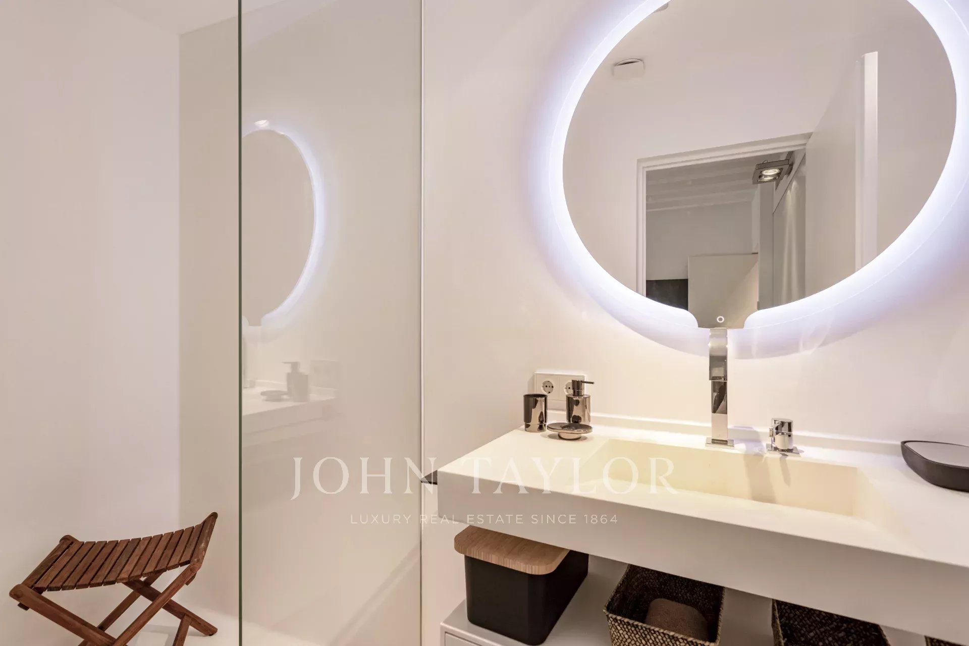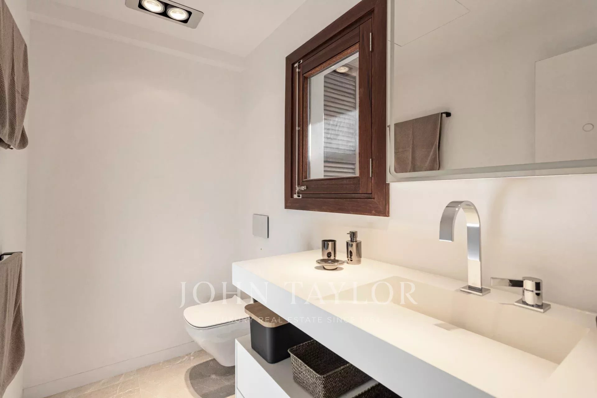 The lower floor hosts an elegant dining area with an open-plan, high-end kitchen, two spacious bedrooms with en-suite bathrooms, and a convenient utility room. The upper level features a refined living area with a guest toilet and an internal staircase leading to the spectacular private rooftop terrace of approximately 30 m², complete with an outdoor kitchen, barbecue, and awning — the perfect setting to enjoy Mediterranean living, from sun-soaked afternoons to al-fresco dinners under Palma’s sky. Among its many features are a lift, security door, fitted wardrobes, underfloor heating, and air conditioning powered by aerothermal energy — all complemented by top-quality finishes. More than just a residence, this penthouse is a statement of style — an impeccable fusion of elegance, comfort, and contemporary design in one of Palma’s most emblematic quarters.