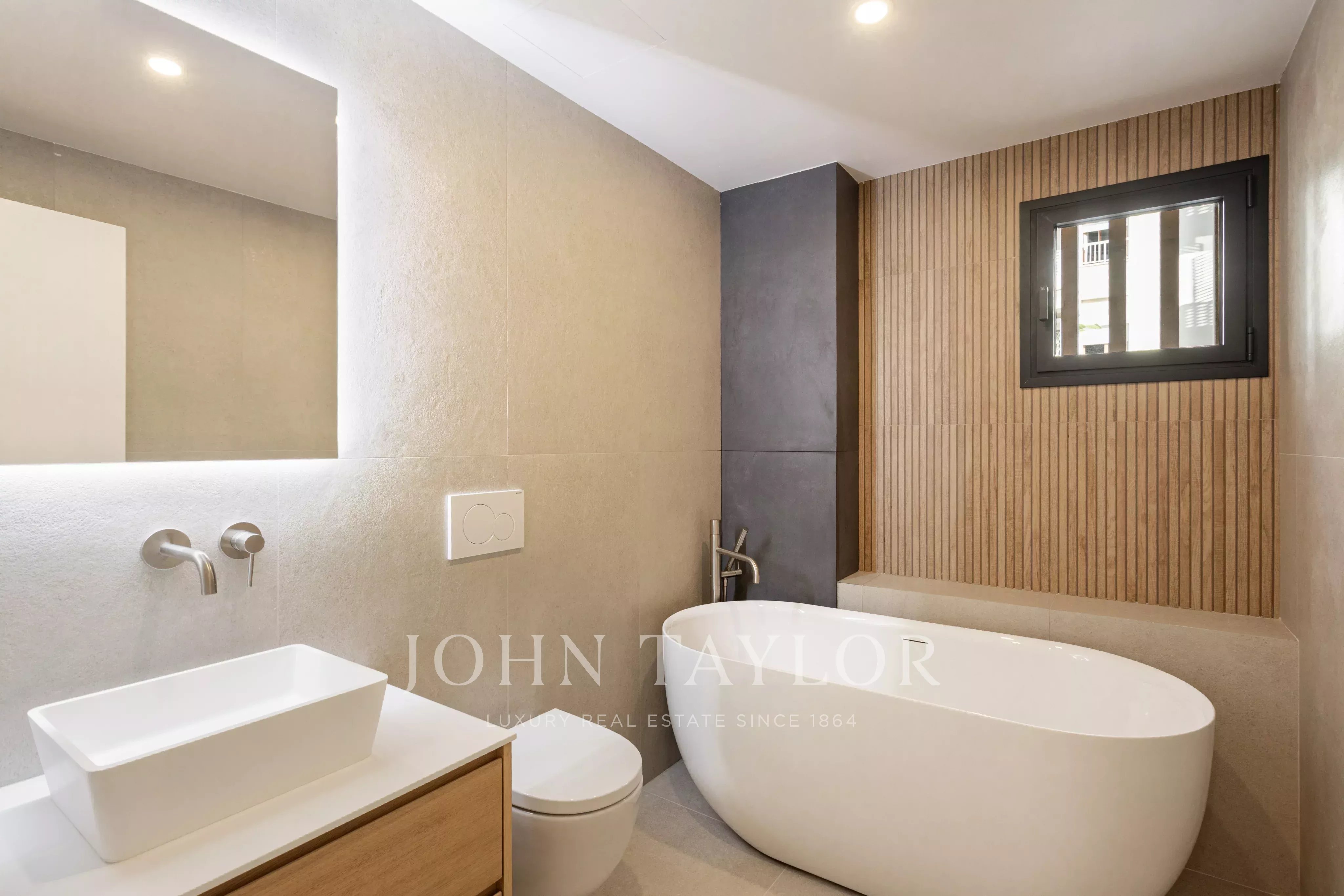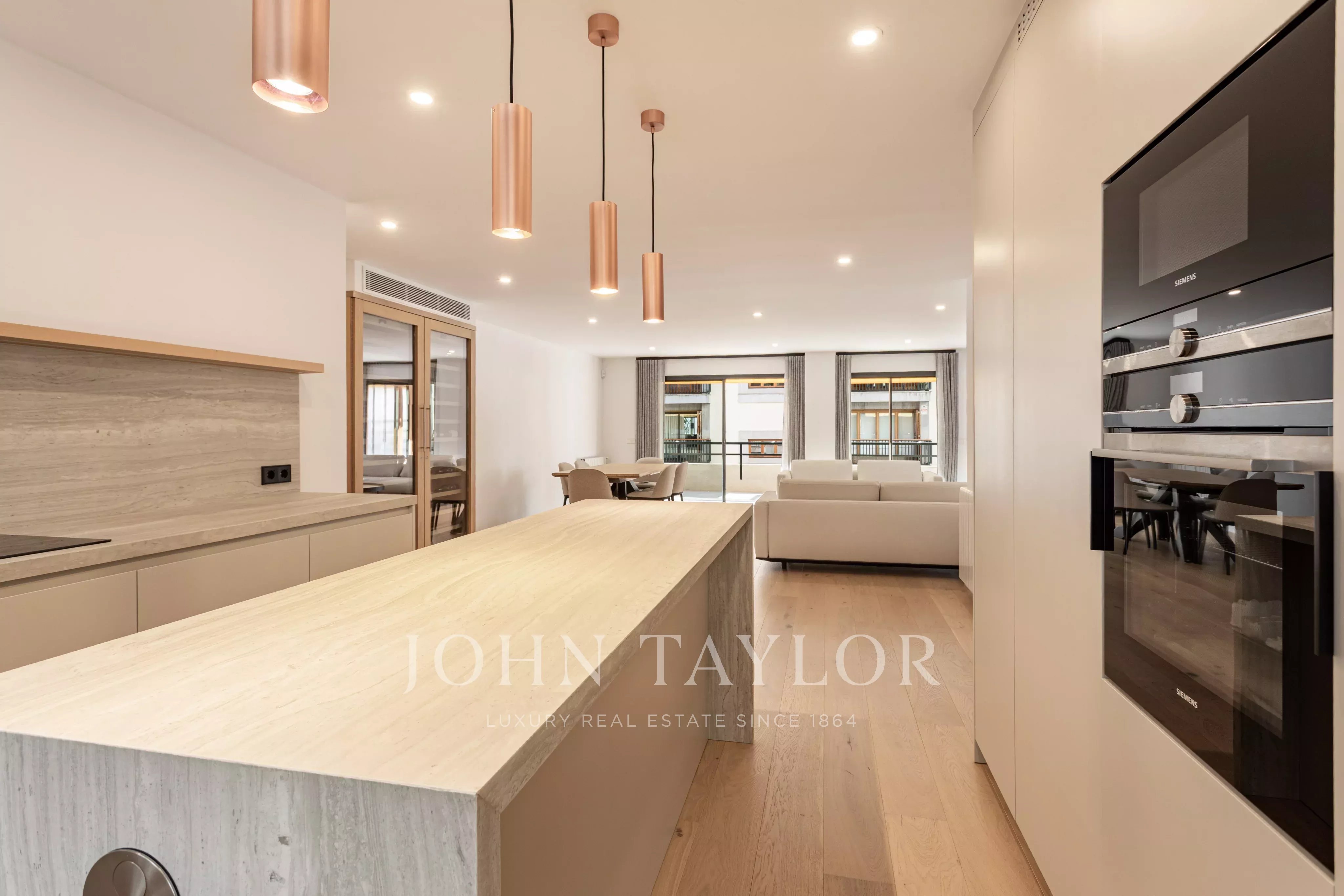 This fantastic, fully renovated apartment is located in one of the most desirable and comfortable areas of Old Town, just steps from Jaime III, while remaining free from traffic and noise. The new layout features a spacious open-plan living, dining, and fully fitted designer kitchen, complete with signature wine cabinets. This bright living space flows seamlessly onto a covered 30 m² terrace, ideal for al fresco dining and relaxed outdoor living.