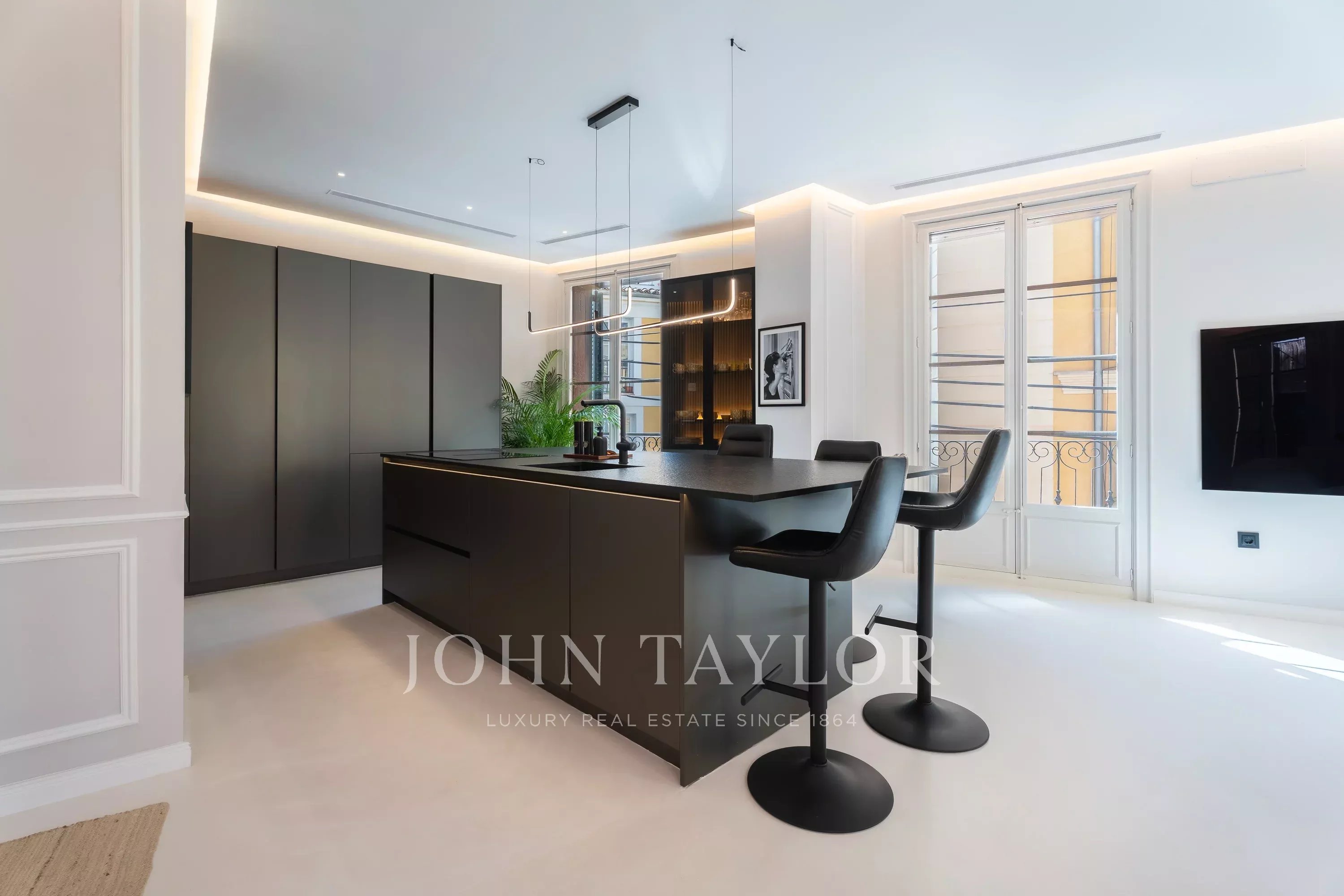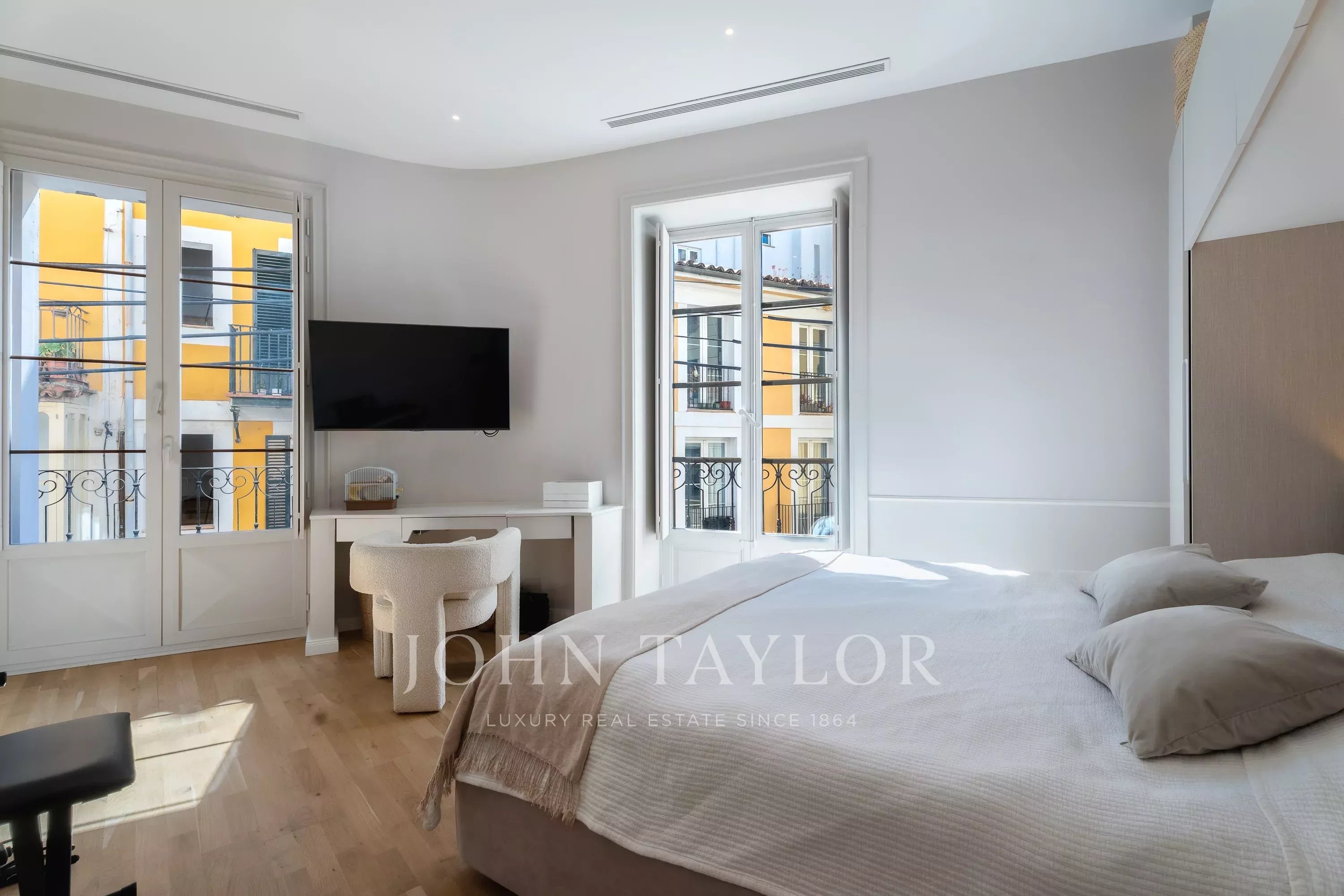 With an impressive living area of approximately 190 sqm, the apartment has been completely and tastefully renovated to a high standard, preserving its classic character while introducing contemporary finishes. The property features eight French balconies, allowing natural light to flood the interior and offering beautiful views over the small, authentic streets of the Old Town.