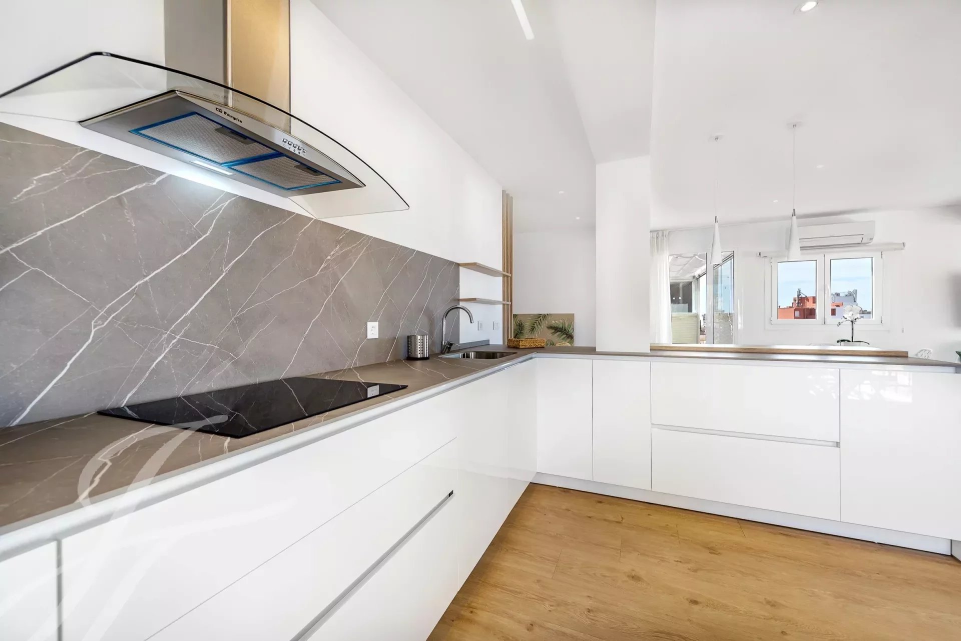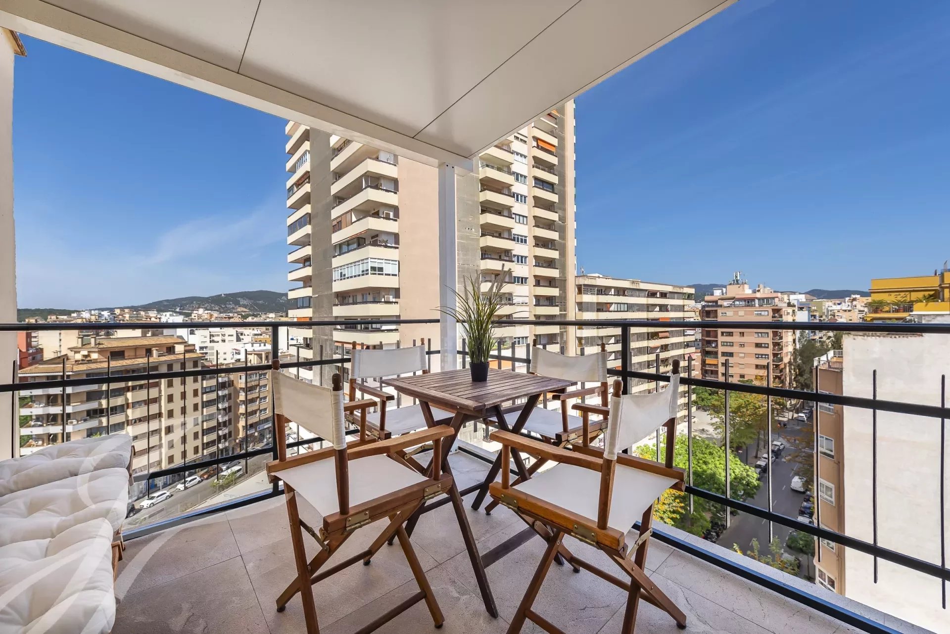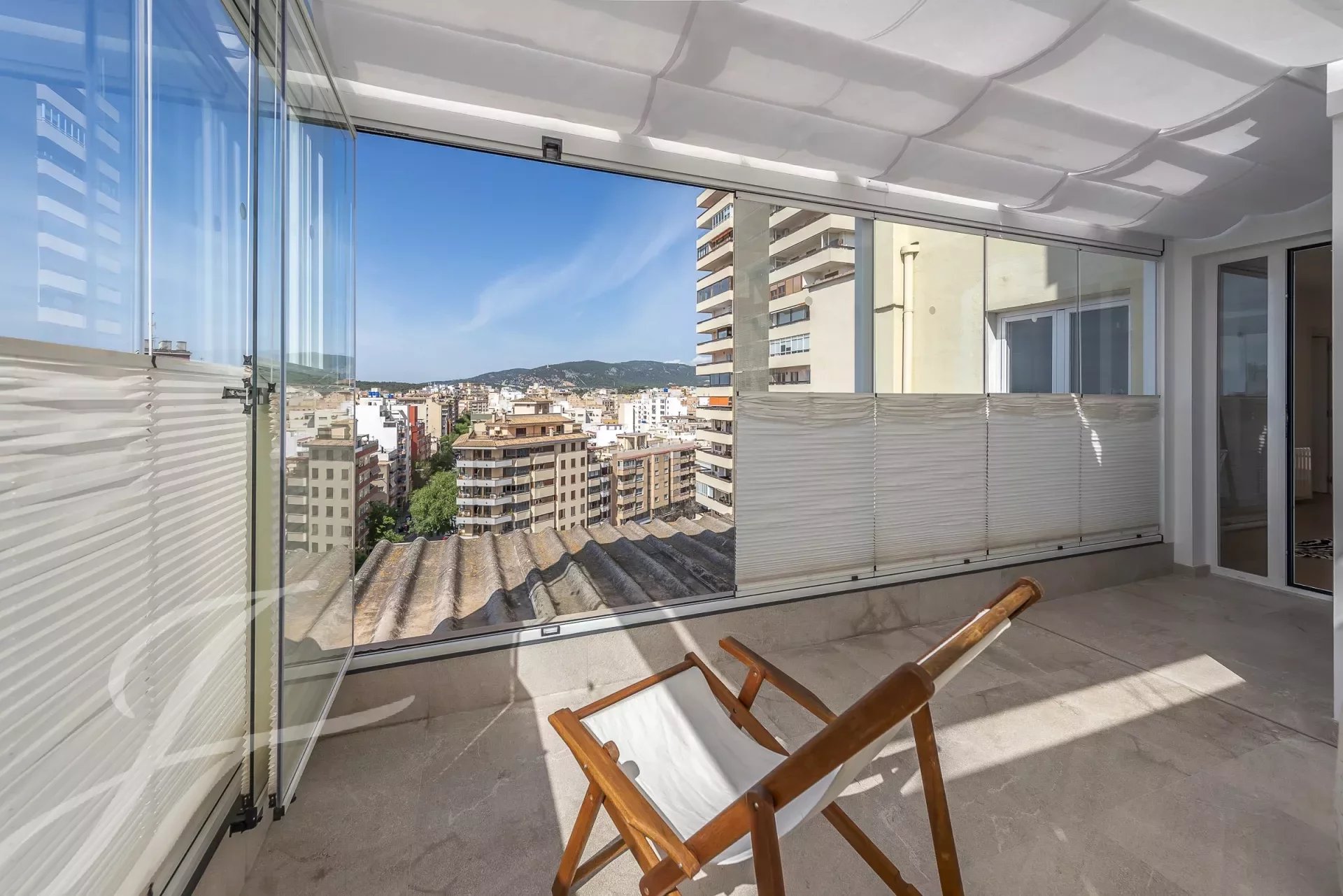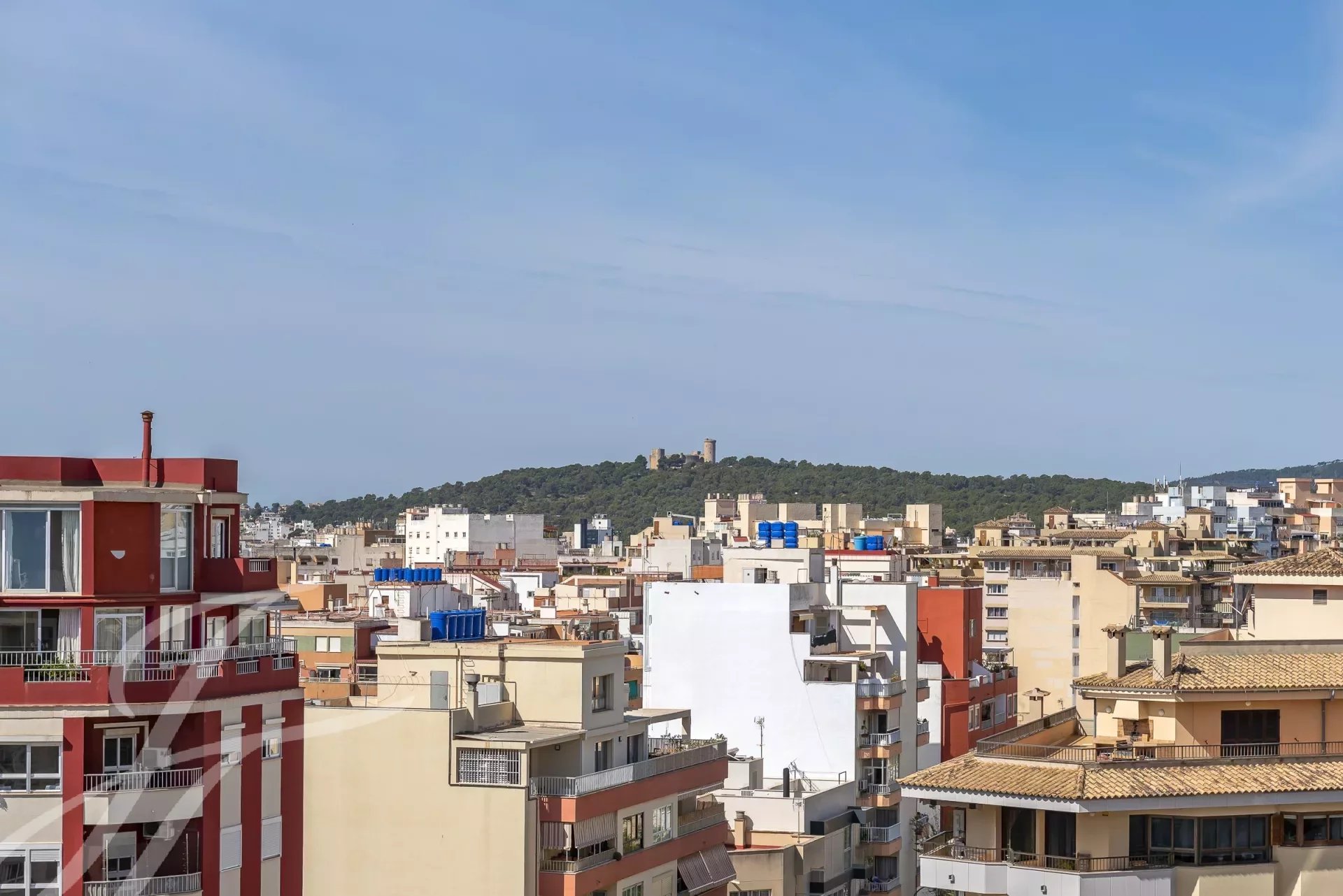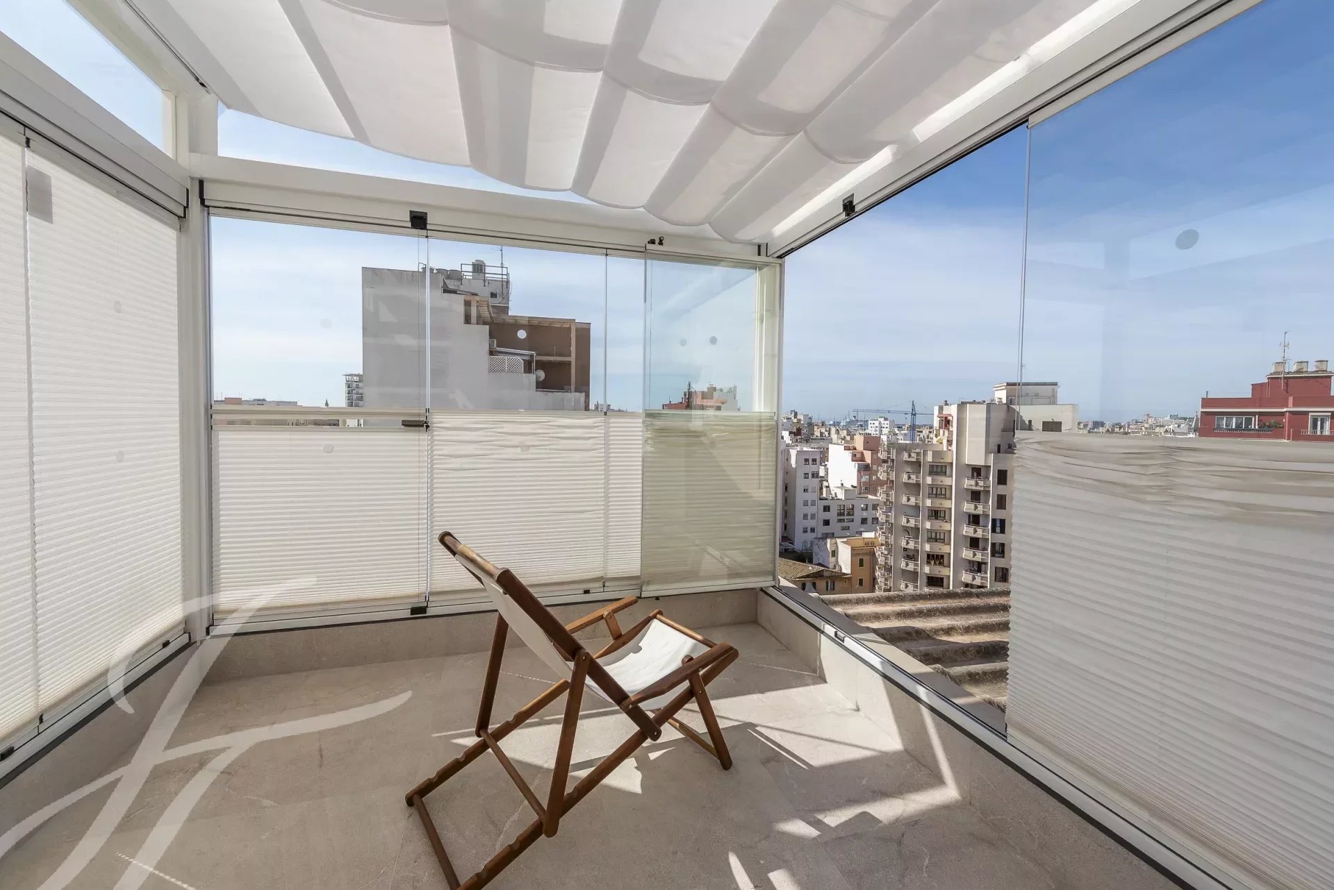 Bright penthouse recently renovated with spectacular views of Palma. Very cozy and with 2 large terraces to enjoy the sun or shade at any time of day. Of very modern and comfortable design, it offers two bedrooms, an open space kitchen, and a living room, very well differentiated from each other and with access to the terraces at the same level. Fully equipped kitchen, central heating and air conditioning, and a fireplace guarantee maximum comfort throughout the year.Parking.