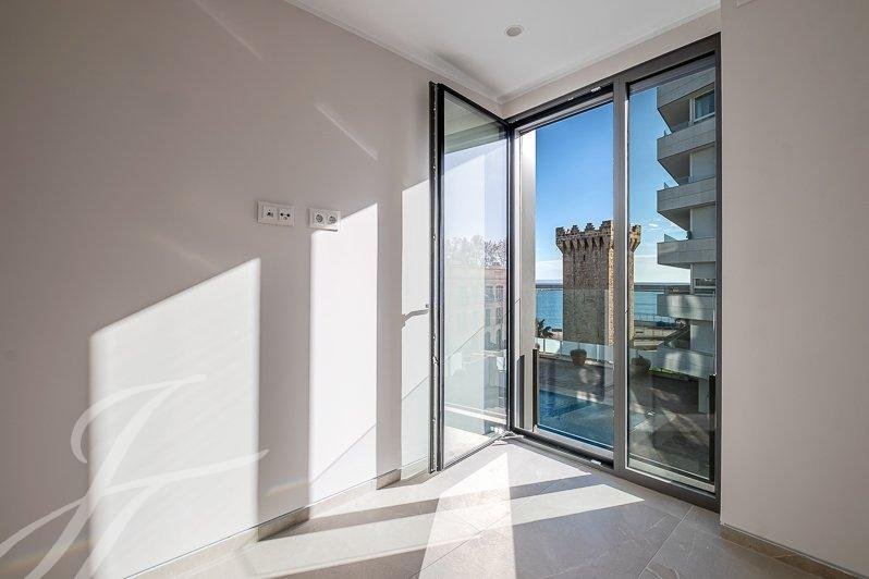 This luxurious new sea-front development is located just a few minutes away from the city centre. The modern and stylish, asymmetric structure of the complex is specially designed to offer spectacular sea/harbour views and plenty of natural light, as well as offering each apartment absolute privacy. There is a total of 12 apartment and 3 duplex penthouses, each one with private parking in the underground garage. The building also offers a large array of common areas: different terraces, exterior and indoor swimming pools, a spa with a fitness area and a sauna. This stylish second-floor apartment has 2 bedrooms with impressive sea views, a high-quality designer kitchen, 2 bathrooms and plenty of storage room, as well as a spacious covered terrace. The images included are of the show flat and the building.