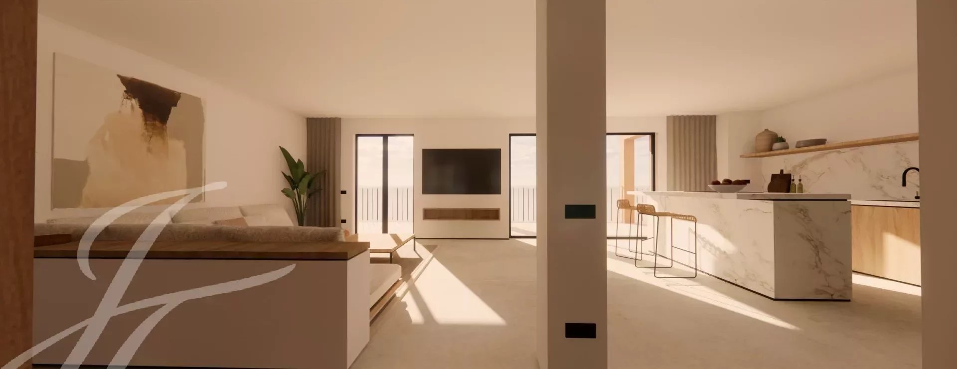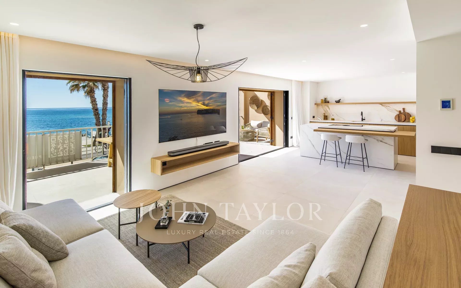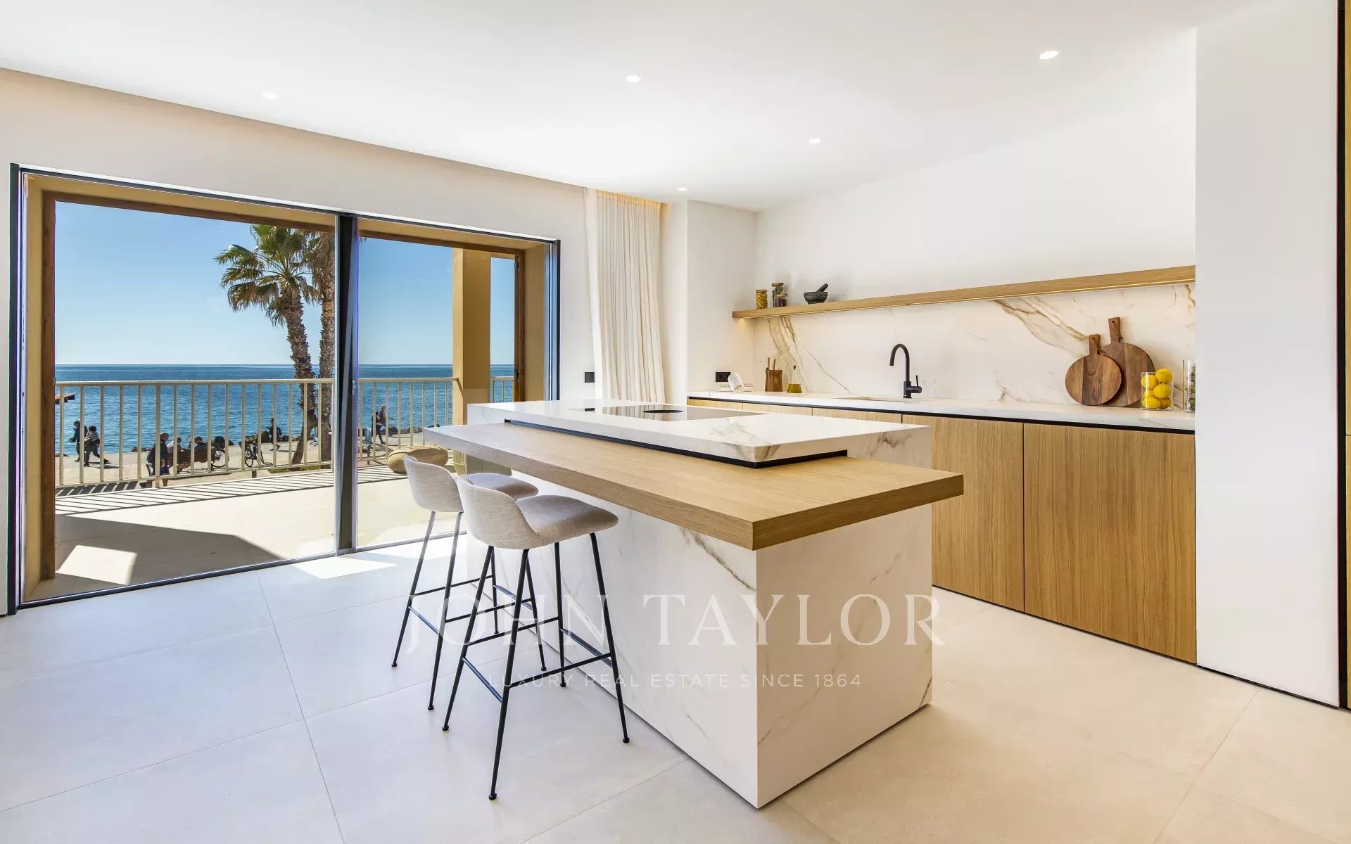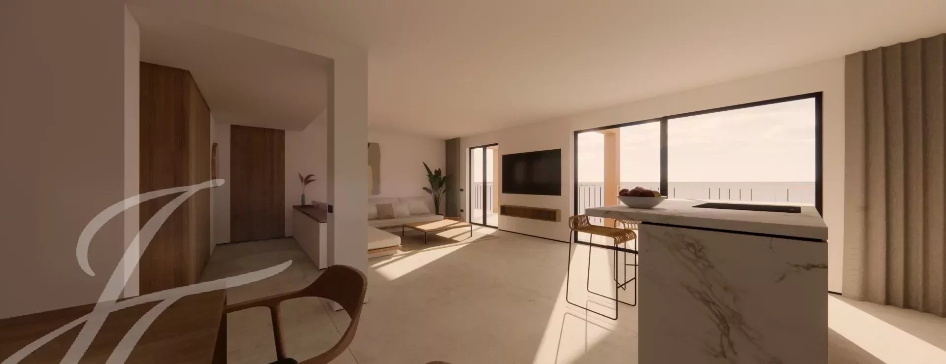 Experience coastal living at its finest in this beautiful apartment located in the first line to the sea. Inside, you'll find a modern and open floor plan, with the living, dining, and kitchen areas seamlessly flowing into one another. From here, you´ll be able to access and enjoy the 40m2 big terrace with breathtaking views of the Mediterranean waters. The kitchen itself is a chef's dream, with sleek and stylish Abitarum cabinetry and top-of-the-line Gaggenau and Bora appliances. And with three bedrooms and two bathrooms, there's plenty of space for you and your loved ones to spread out and relax. As the apartment is currently being renovated to the highest standards, its future owner can expect a turnkey ready property featuring A/C, underfloor heating as well as a second terrace at the back of the apartment. A parking can be bought additionally. Enjoy long walks at the promenade of Portixol, the beach and countless restaurants and bars right at your doorstep, while being also in just short distance to the old town of Palma and its airport. Don't miss out on this amazing opportunity - schedule a viewing today!