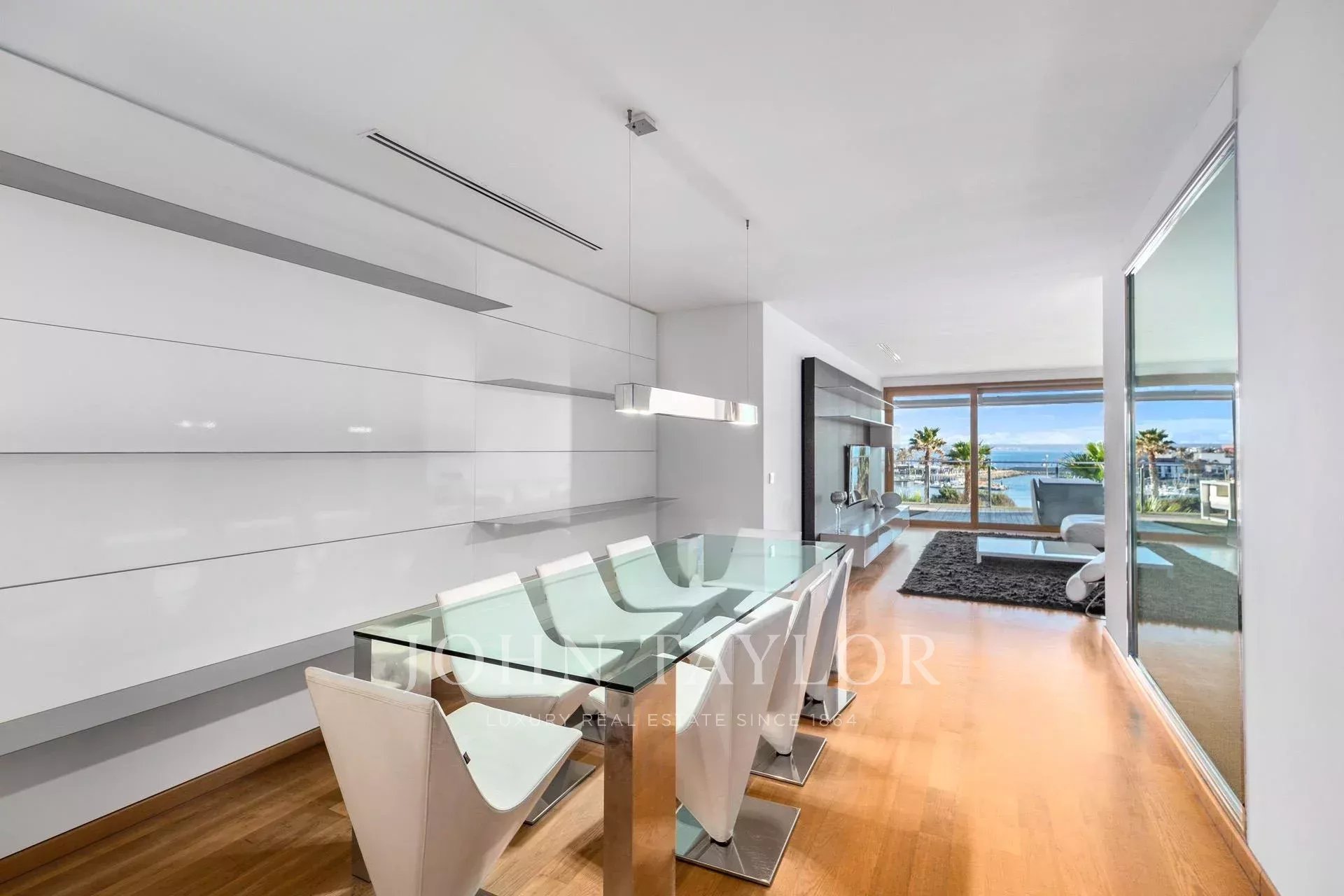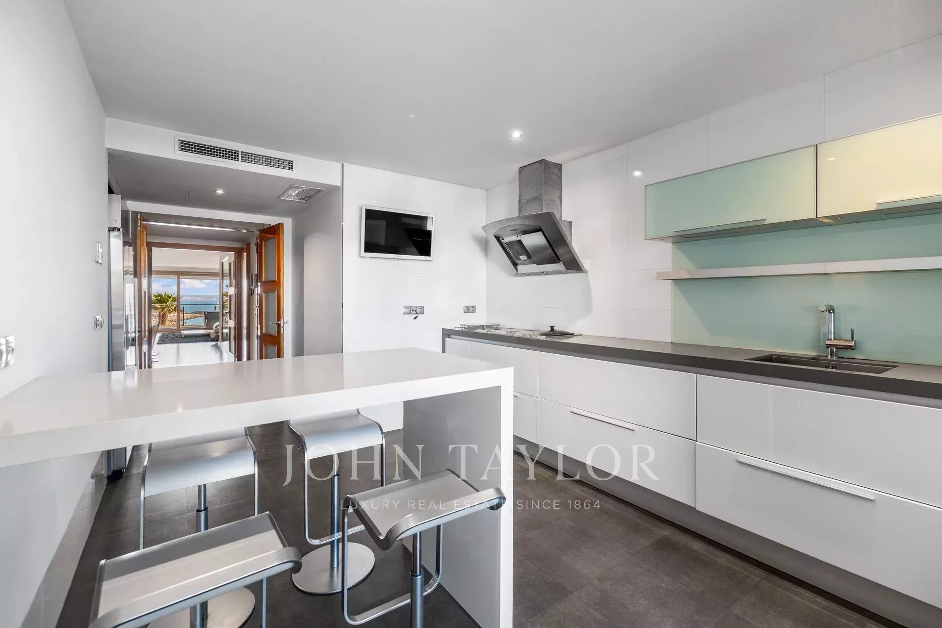 This spectacular apartment on the seafront of Portixol combines all the modern comfort with a modern design open to the magnificent sea views that the house gives us, with the entire bay of Palma and the charming port as a real luxury setting. The Portixol area is in an excellent location within the capital of Mallorca, with the sea at its feet and just a 15-minute walk from the historic center of Palma. It has a wide selection of restaurants with the best Mediterranean cuisine and famous beach clubs sitting on the sand, as well as having direct access to the only sandy beach in Palma. It is a spacious apartment with modern lines and spaces flooded by a large entrance of natural light, it has 230 m2 where top quality materials have been used. It is distributed in four large bedrooms with fitted wardrobes and the main one with a dressing area, three bathrooms, one of them en suite and a courtesy toilet. A single surface is occupied by the living-dining room, with large windows that allow a large entrance of light and give us access to the fantastic terrace of 30 m2 with incredible sea views. The spacious kitchen is arranged independently, fully equipped, and with a laundry room in addition to having another rear terrace. It should be noted that the house is part of an exclusive complex that offers us two magnificent communal swimming pools, a playground area, a paddle tennis court, 24-hour security, and underground parking and storage room.