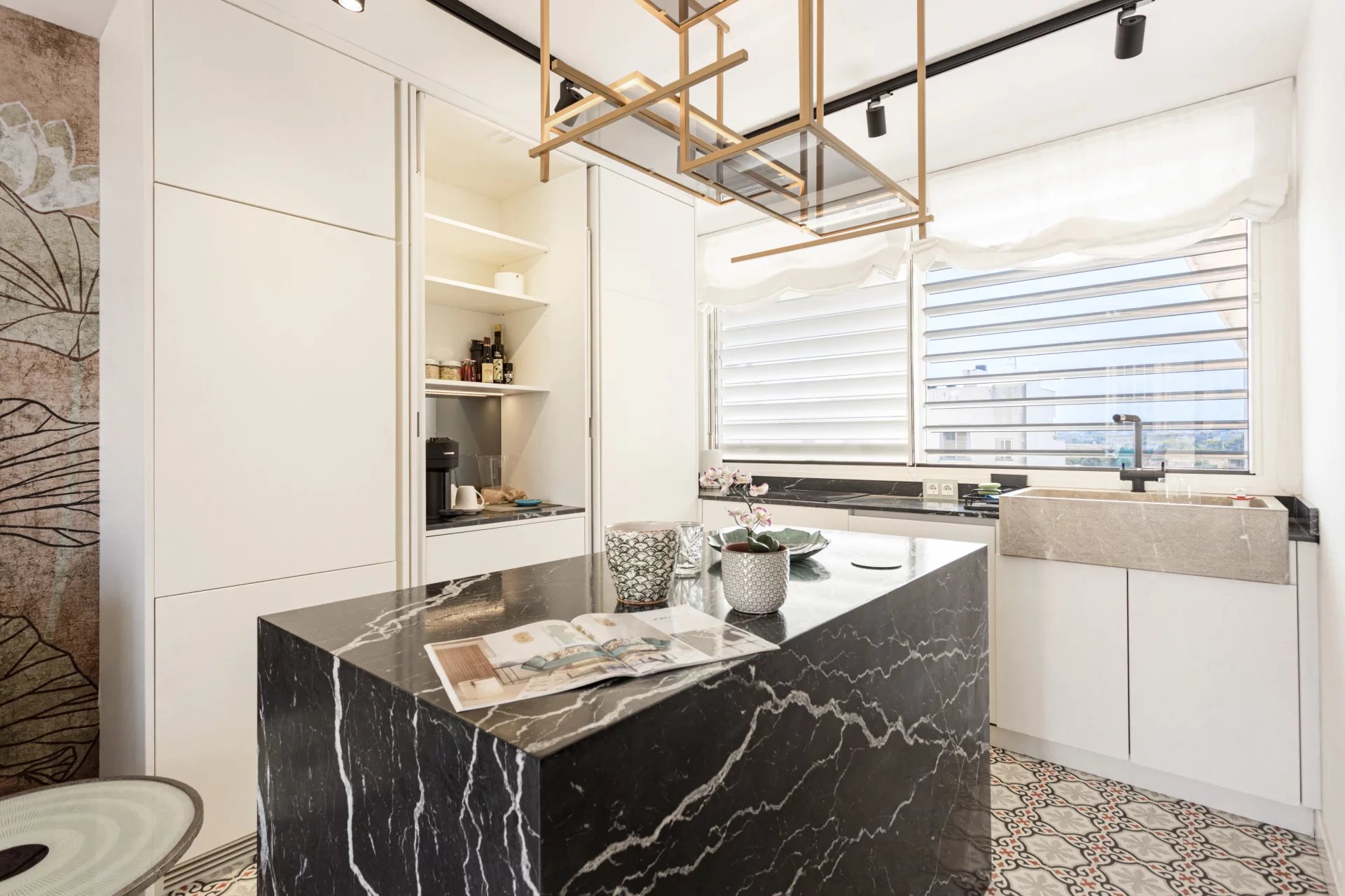 This exclusive apartment comes equipped with premium features, including underfloor heating, air conditioning, an osmosis water system, electric awnings, a wine cooler, Miele appliances, a Japanese-style shower toilet, and an alarm system and elevator. A private garage is also included, as well as the furniture.