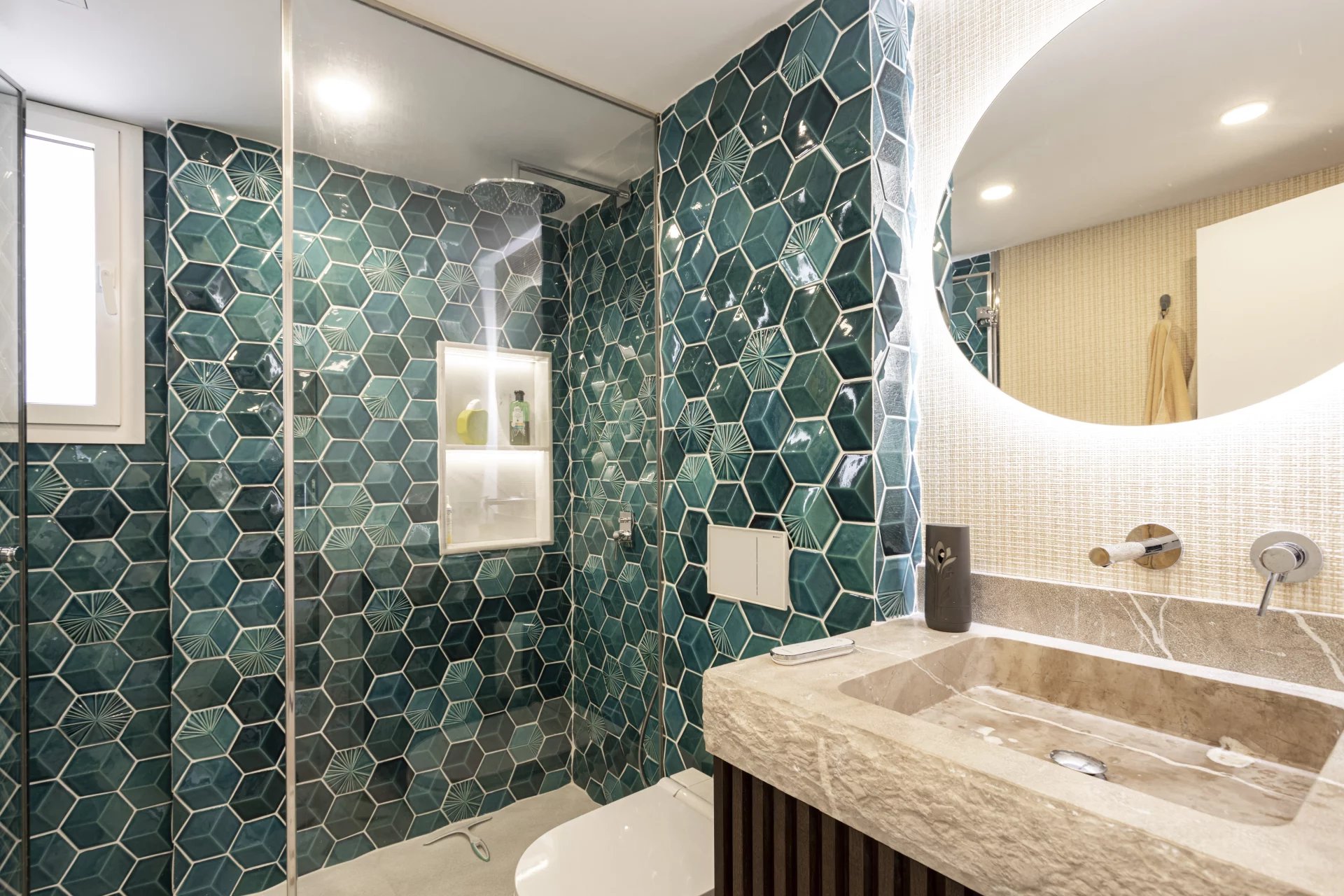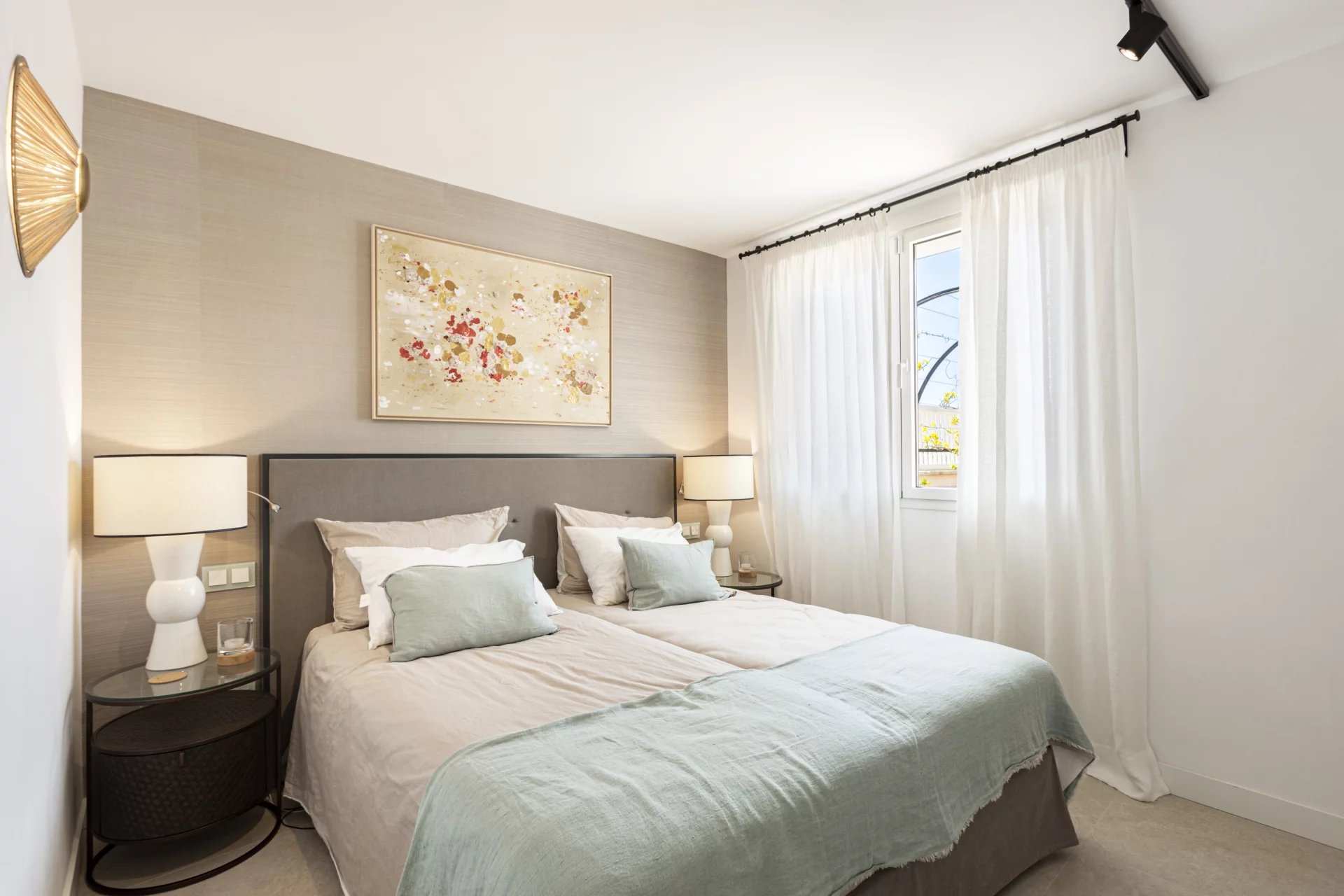 This stunning penthouse for sale in Portixol offers a combination of contemporary elegance with Mediterranean flair just a 5-minute walk from the beach. Fully renovated and styled by a professional interior designer, the property features 61 m² of elegant living space and 125 m² of private terraces spread across two levels.