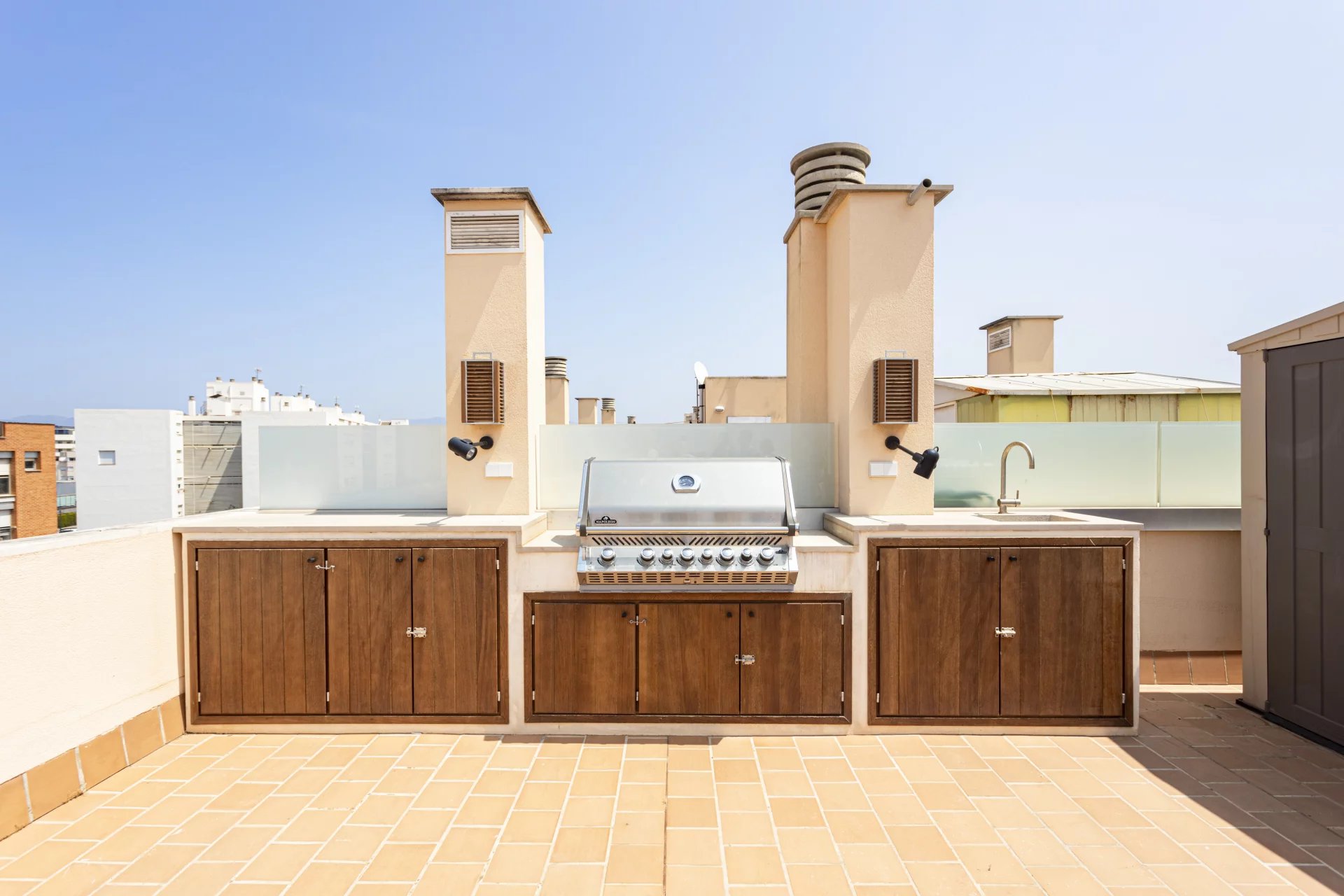 The highlight of this luxury penthouse in Palma is the expansive rooftop terrace, complete with a fully equipped outdoor kitchen, professional-grade grill, and multiple lounge areas. From here, you can enjoy panoramic sea views and entertain guests.