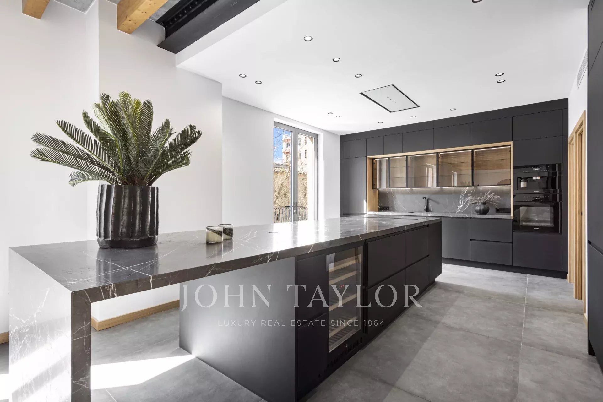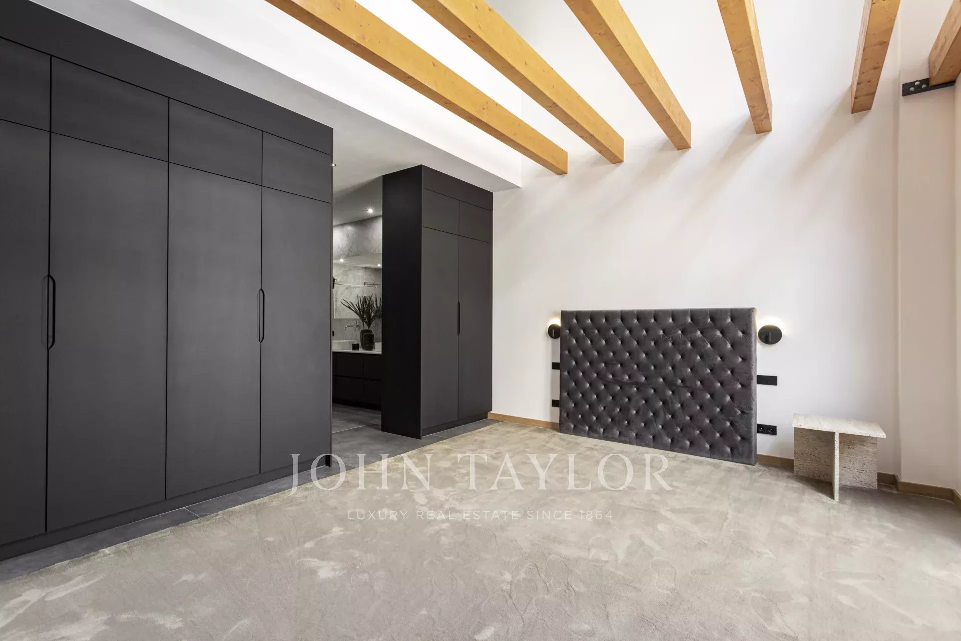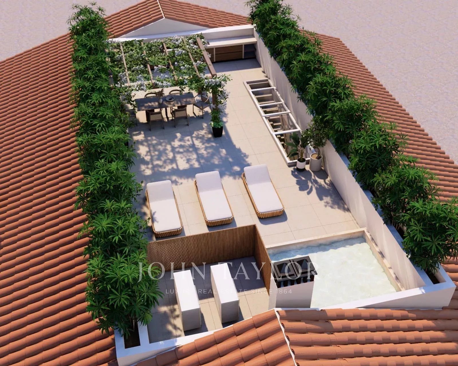 The master bedroom with a dressing area and an en suite bathroom ensures maximum comfort living on one floor. Access the first floor via the "floating stairs" to the additional two bedrooms, both with en suite bathrooms and an additional lounge area. The 100 sqm rooftop terrace is without doubt the jewel of the crown, with an exterior kitchen, dining, and lounge area complemented by the gentle sound of the water fountain. The property has exterior parking, underfloor heating, central A/C, and is sold furnished.