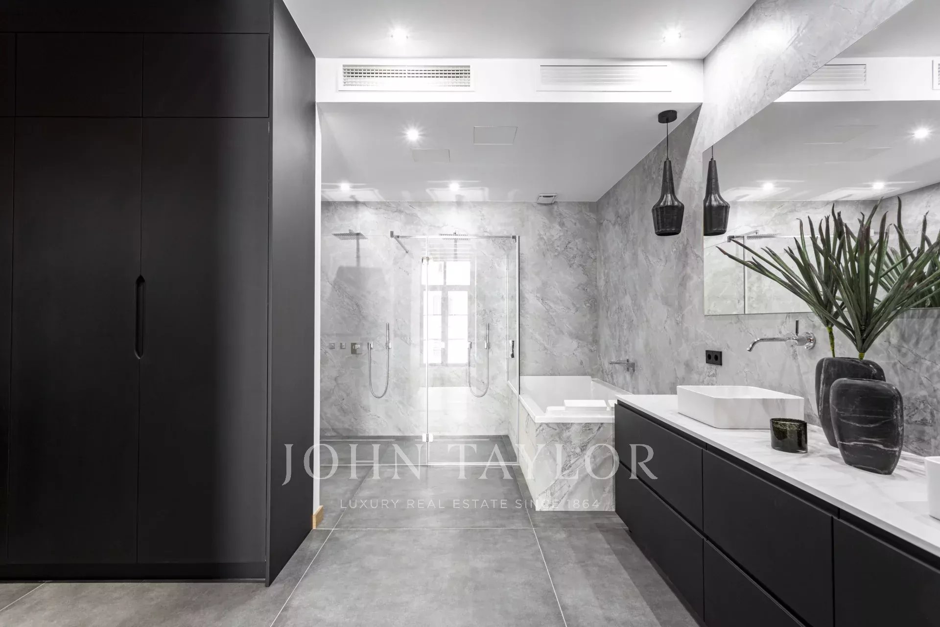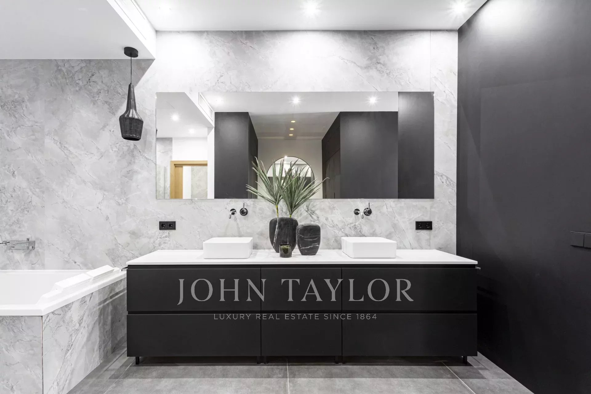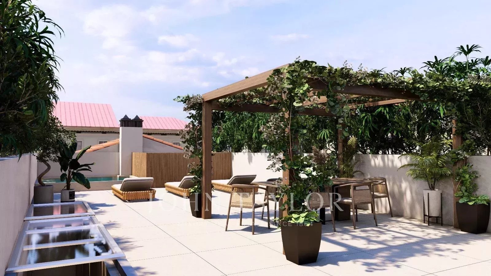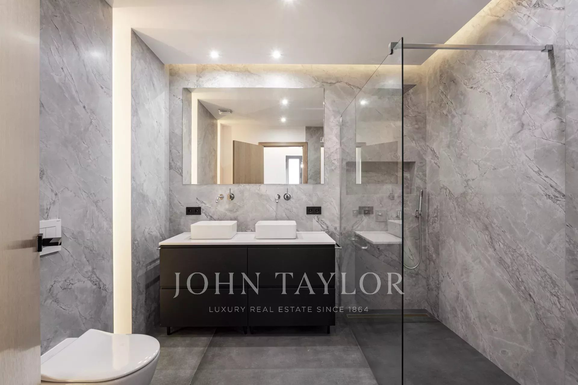 The master bedroom with a dressing area and an en suite bathroom ensures maximum comfort living on one floor. Access the first floor via the "floating stairs" to the additional two bedrooms, both with en suite bathrooms and an additional lounge area. The 100 sqm rooftop terrace is without doubt the jewel of the crown, with an exterior kitchen, dining, and lounge area complemented by the gentle sound of the water fountain. The property has exterior parking, underfloor heating, central A/C, and is sold furnished.