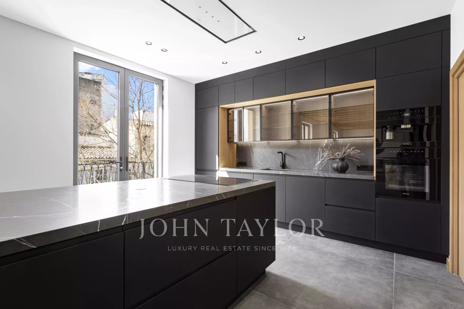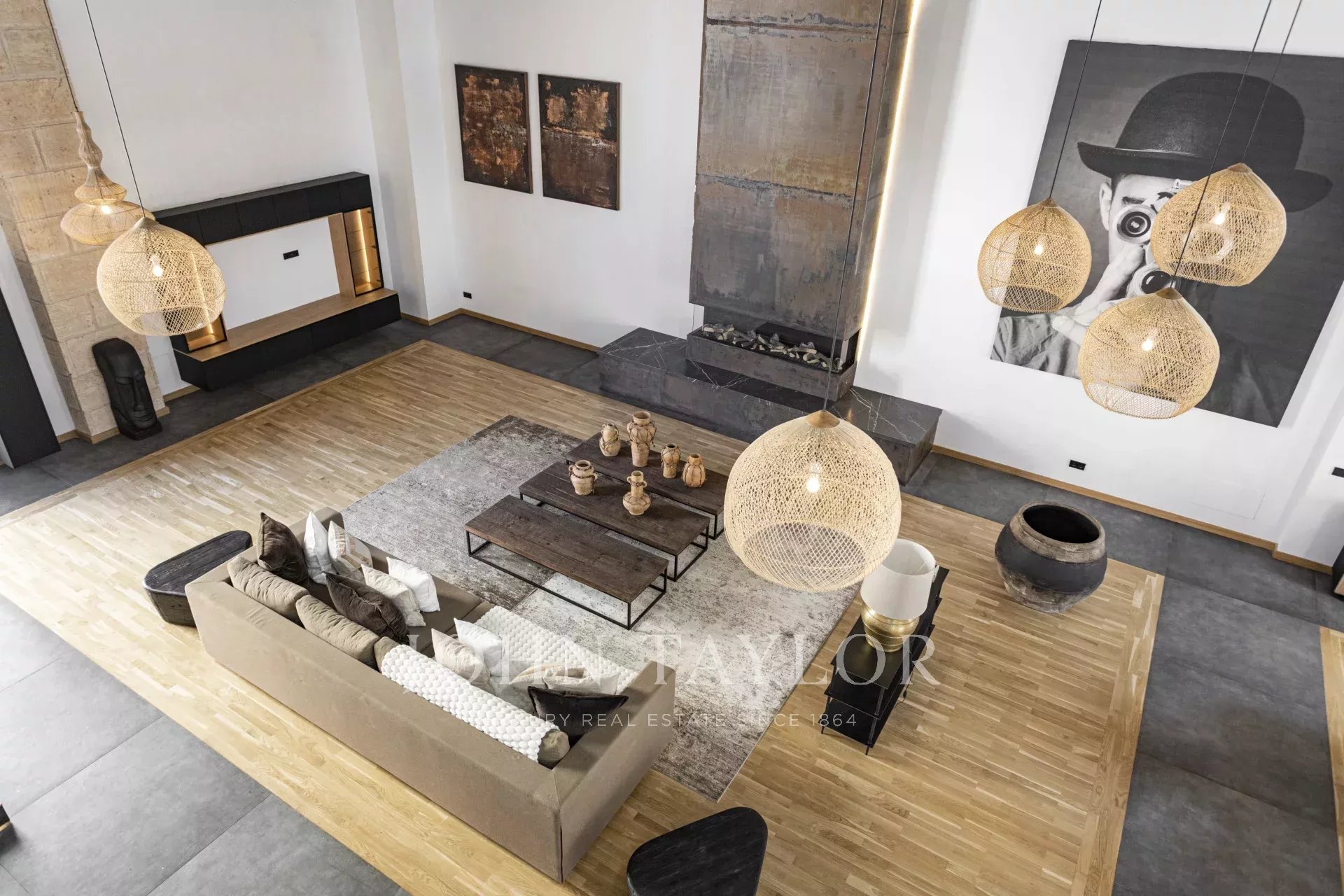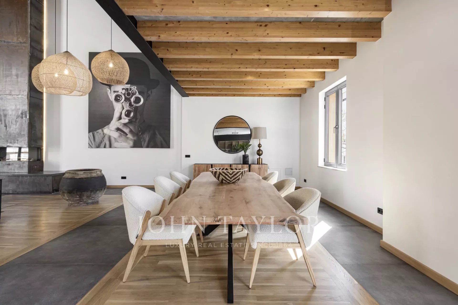 Upon entry, one is impressed by its 6.80 m2 high ceilings, immense natural light, and the space the property offers. The ground floor includes a magnificent 166 sqm open plan layout, including a fully fitted kitchen with an island and casual seating, a formal dining area, and a living area with an open fireplace.