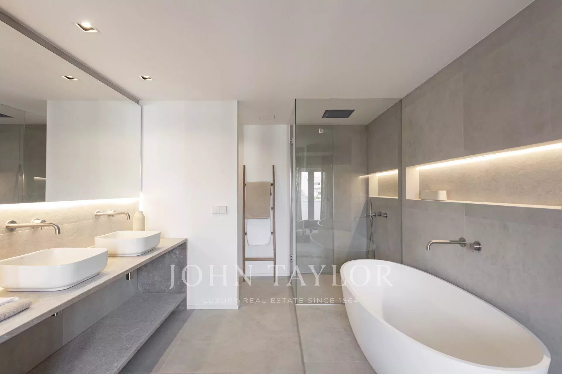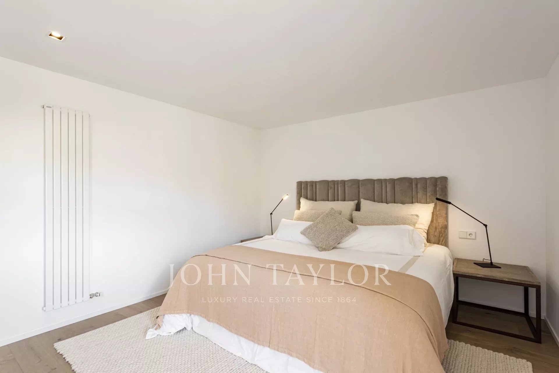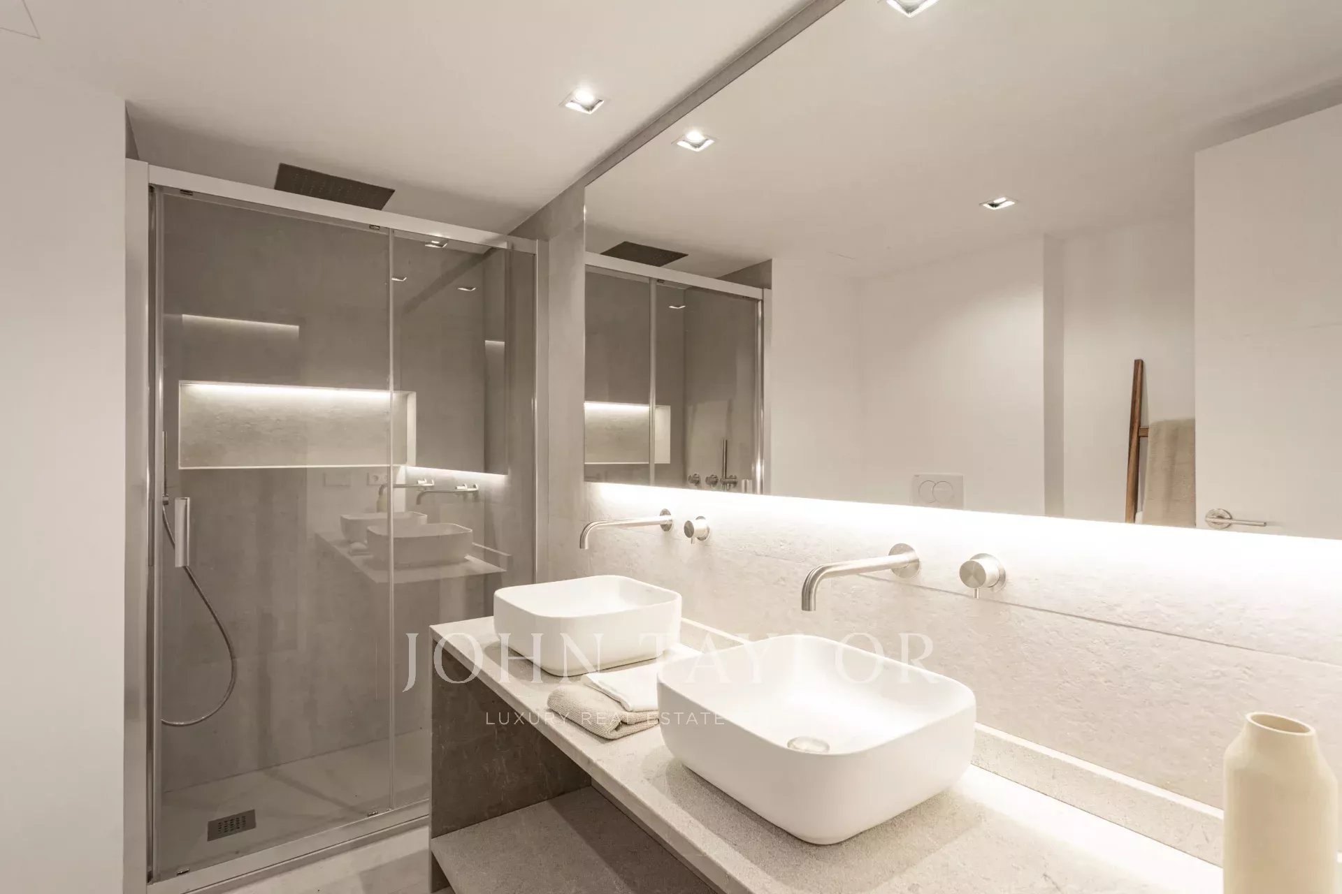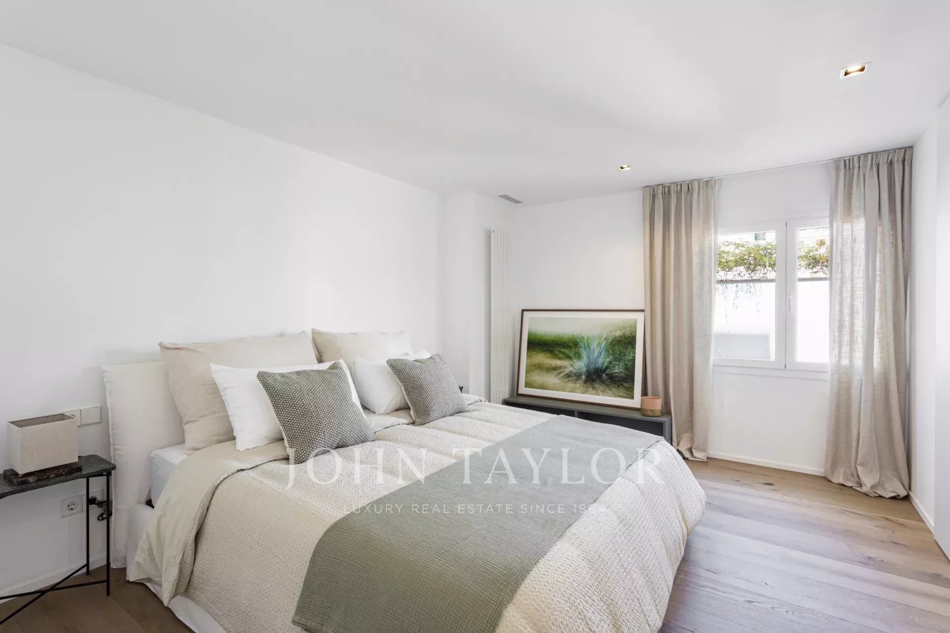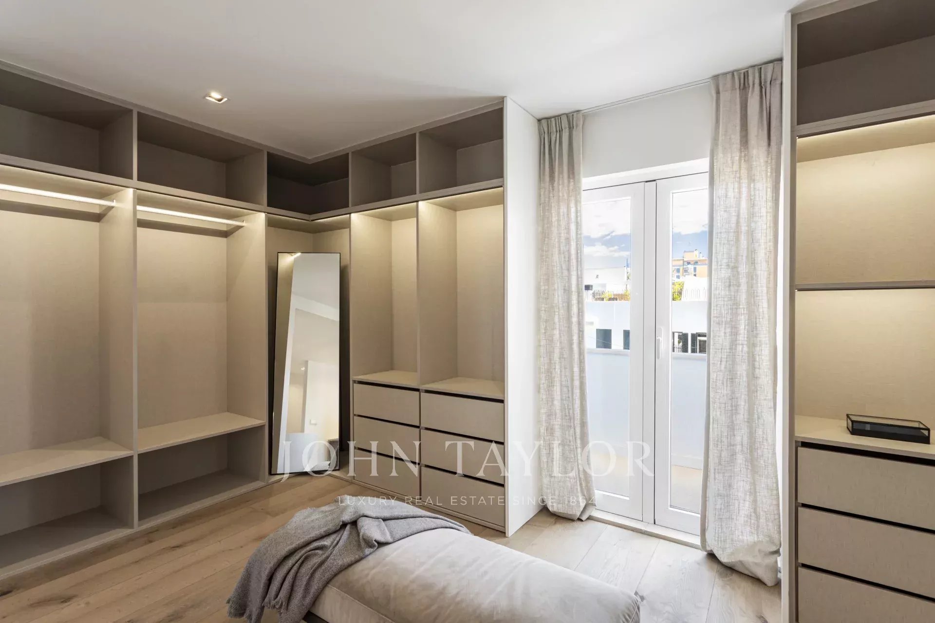 The apartment has two spacious bedrooms, one with a dressing room and bathroom en suite, offering an elegant and comfortable space. There is also the possibility of creating a third bedroom by taking advantage of the space next to the guest toilet, which adds even more value to this property. The layout has been carefully designed to maximise every square metre: there are two full bathrooms, a practical separate laundry room and a guest toilet, all with high-quality finishes and modern details. With high ceilings, exquisite decoration and tastefully selected materials, this property comes fully furnished and ready to move into.