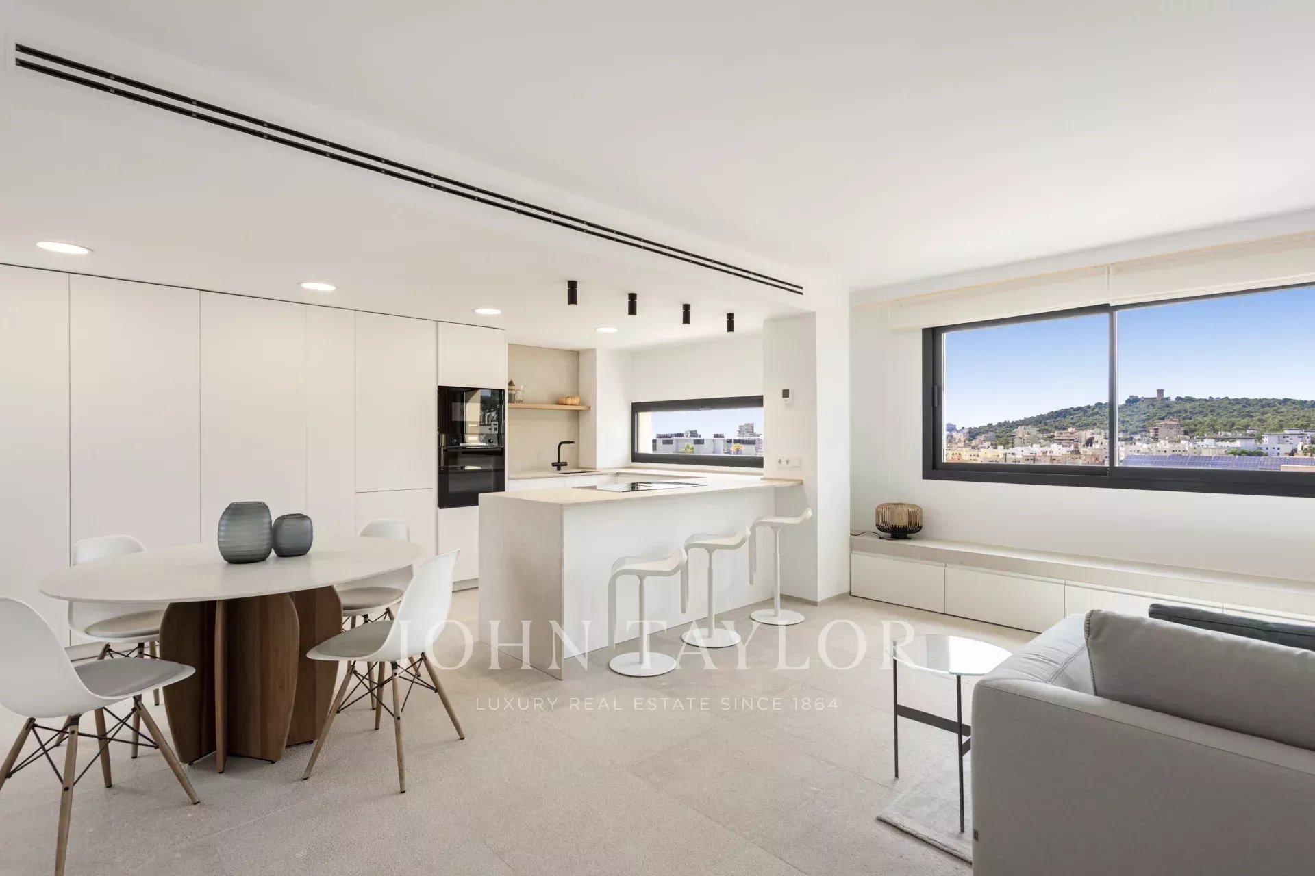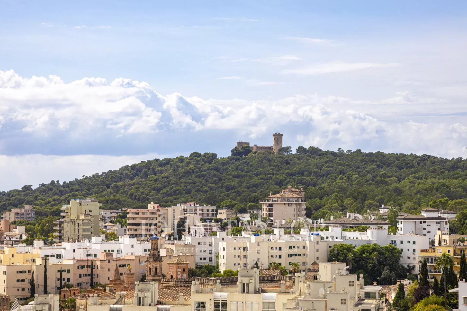 Located in the sought-after Son Espanyolet neighborhood, just minutes from the center of Palma and Santa Catalina, this exclusive duplex penthouse with a spacious rooftop terrace offers breathtaking panoramic views over the neighborhood, Bellver Castle, the Cathedral, and the sea. Elevated above the surrounding buildings, it ensures exceptional privacy and natural light throughout the day.
