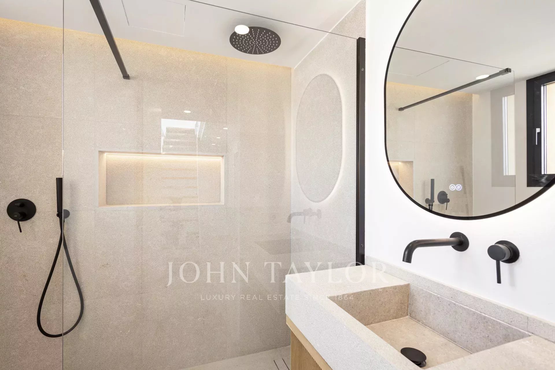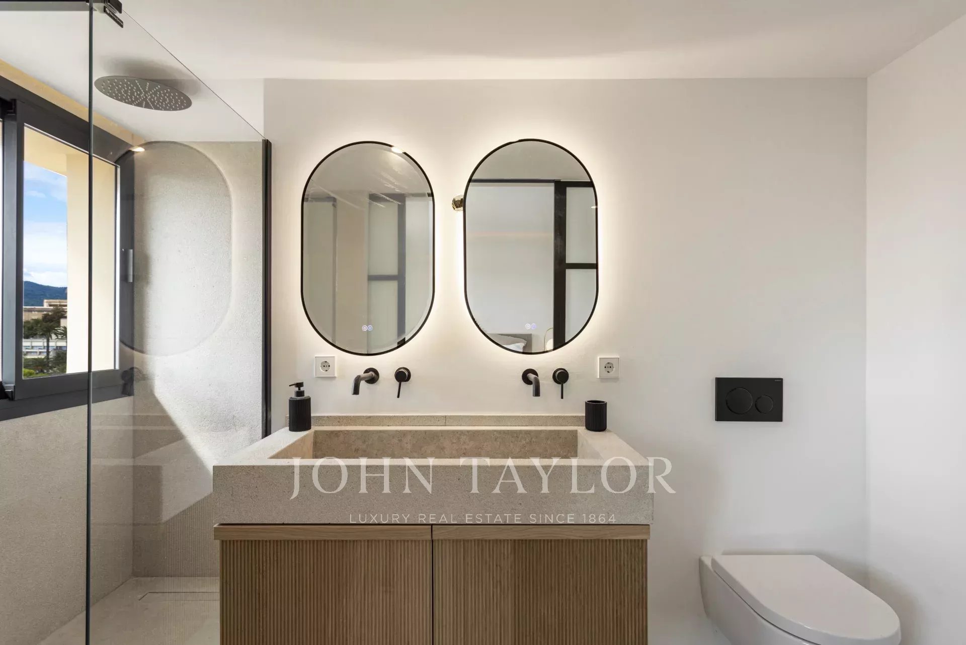 A beautifully crafted staircase leads to the upper floor, where you’ll find three bedrooms and two bathrooms with walk-in showers, as well as a second private terrace, perfect for quiet moments outdoors.