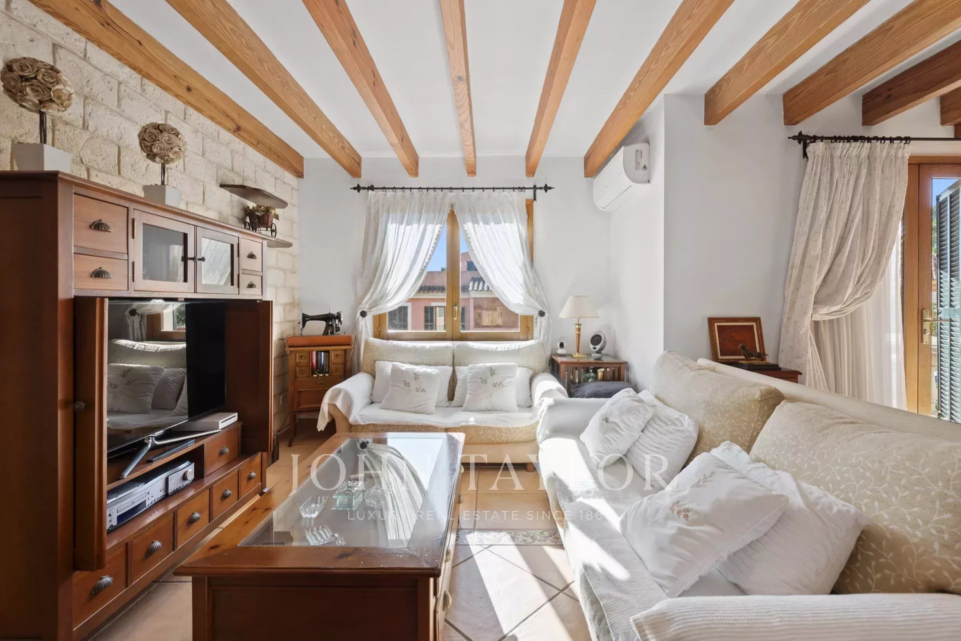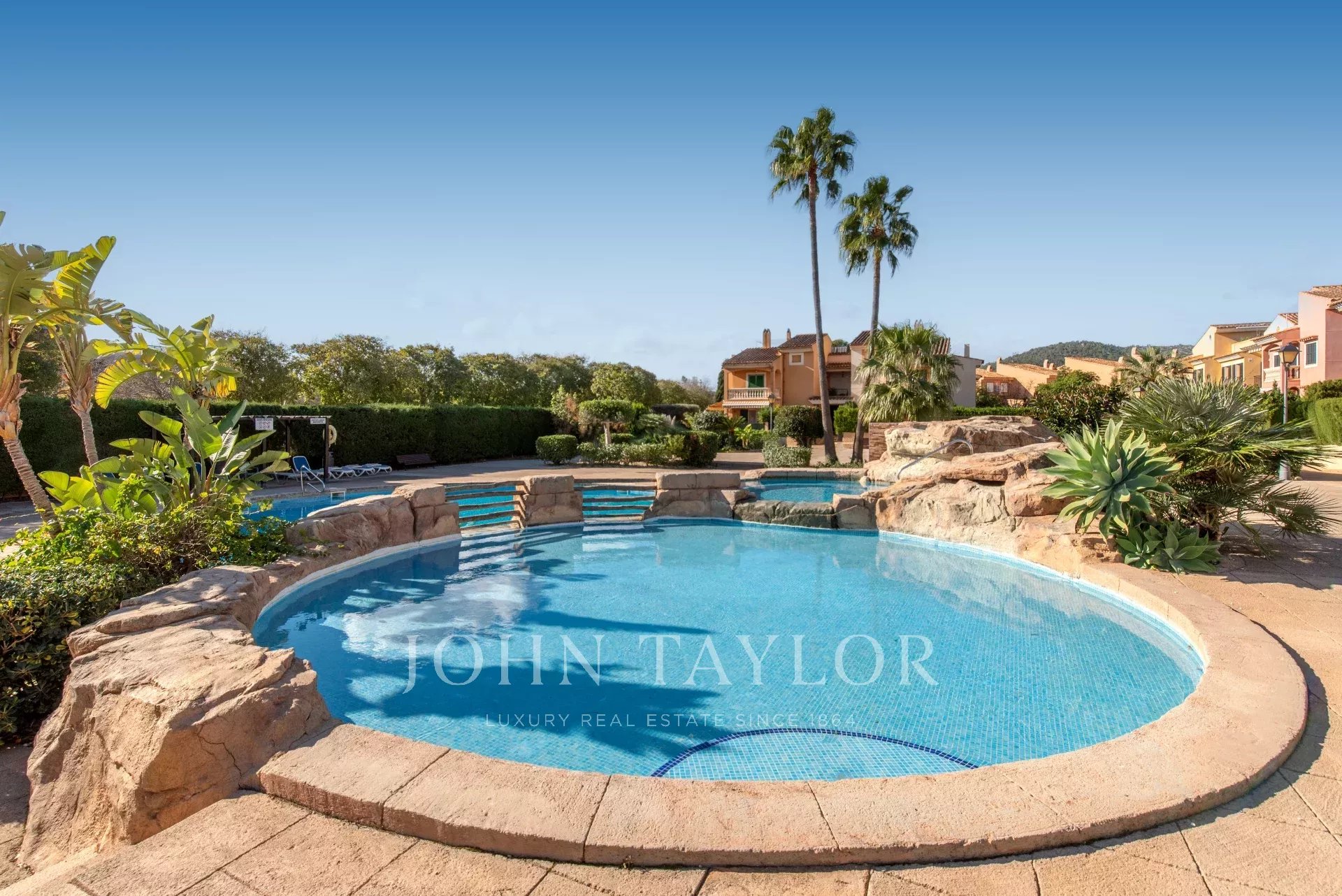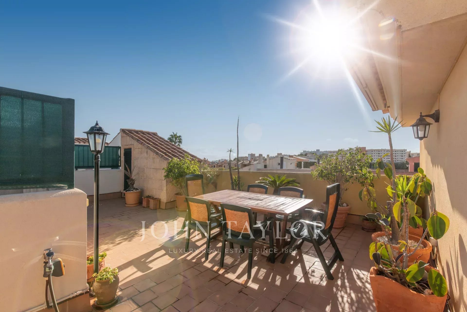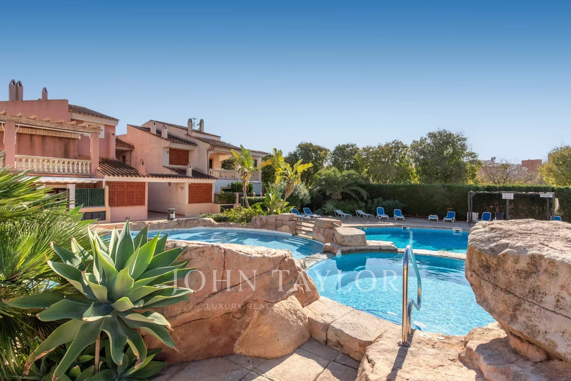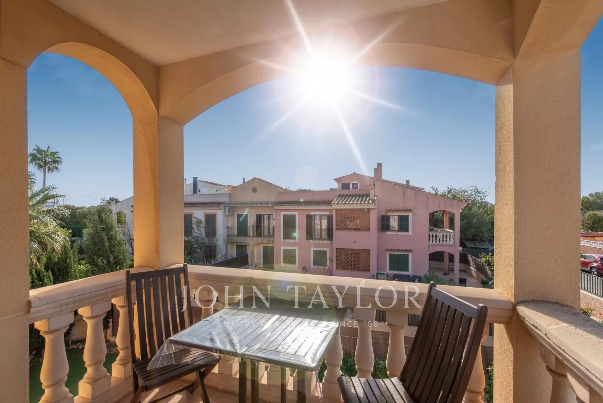 This wonderful apartment is located in Son Caliu, an excellent residential area between Portals Nous and Palmanova with all kinds of services within 5 minutes walking distance. It is part of a well kept community built in 2000 that offers 3 communal swimming pools. The duplex apartment is in perfect condition ready to move in. It offers a spacious and bright living room with access to a south facing terrace, 3 bedrooms with fitted closets and 2 bathrooms. A beautiful wooden staircase leads to an attic currently used as a studio that connects to a large terrace where you can organize lunches and dinners with family and guests.