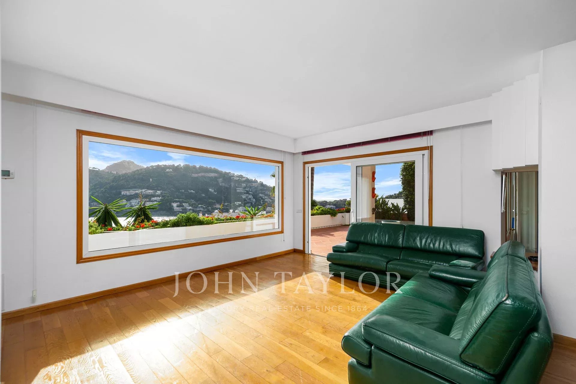 This apartment offers breathtaking, unobstructed views of the harbor from both the expansive terrace and interior spaces. Thanks to its southeast orientation, residents can enjoy sunlight throughout the day. Spanning 148 m² on a single level, the apartment is complemented by a generously sized terrace. Originally designed with three bedrooms, the current layout integrates one room into an expansive living-dining area, which can easily be converted back into a third bedroom if desired.