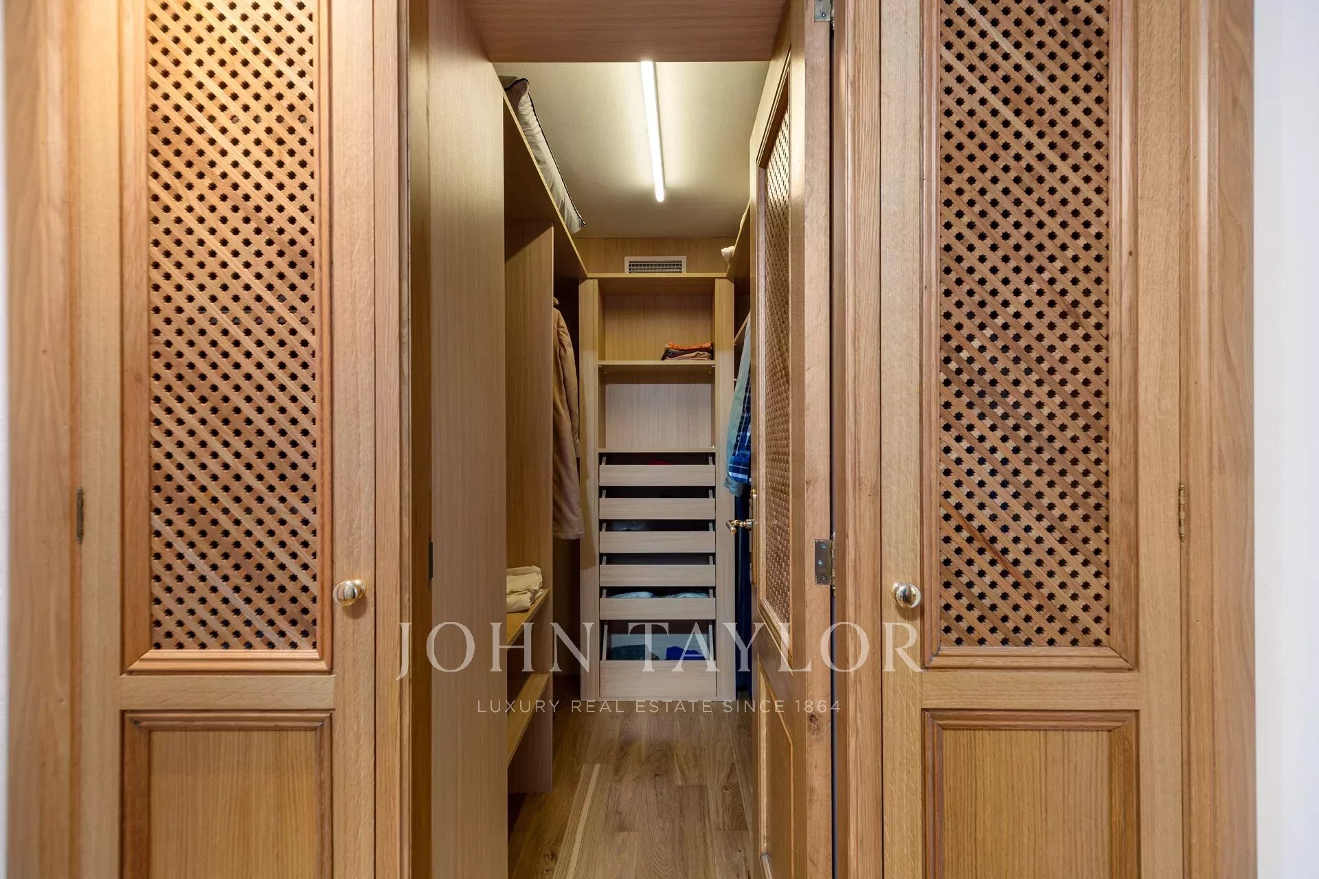 Access to the apartment is seamless via the underground garage, with an elevator that also connects directly to the rooftop solarium and communal pool area. The exclusive complex provides residents also with a sauna offering panoramic harbor views. The property includes two parking spaces and two large storage rooms.