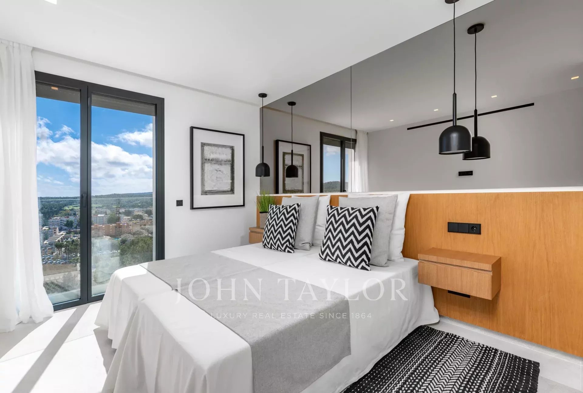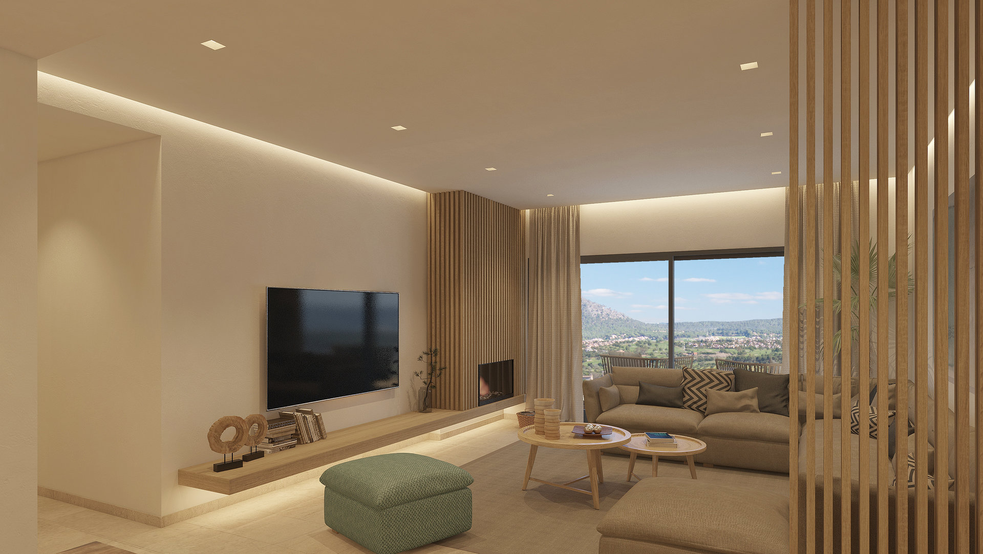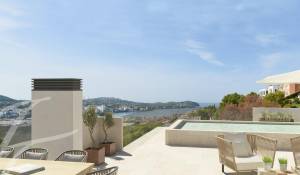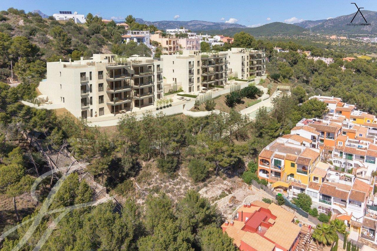 These modern apartments are being built in Santa Ponsa. They have fantastic panoramic views of Santa Ponsa and the golf course, with east-south-west orientation and beautiful terraces of 18 m2 to fully enjoy the Mediterranean lifestyle. The apartments have 4 double bedrooms and 3 bathrooms, 2 of them en suite, equipped with high quality materials. A bright living room and dining room, as well as an open and modern kitchen with appliances and a kitchen island combined with materials of the highest quality give you comfort and well-being. The complex has 24 residential units, a community pool and a Mediterranean garden. A subway parking space is included in the sales price. The project will be completed in 2025.