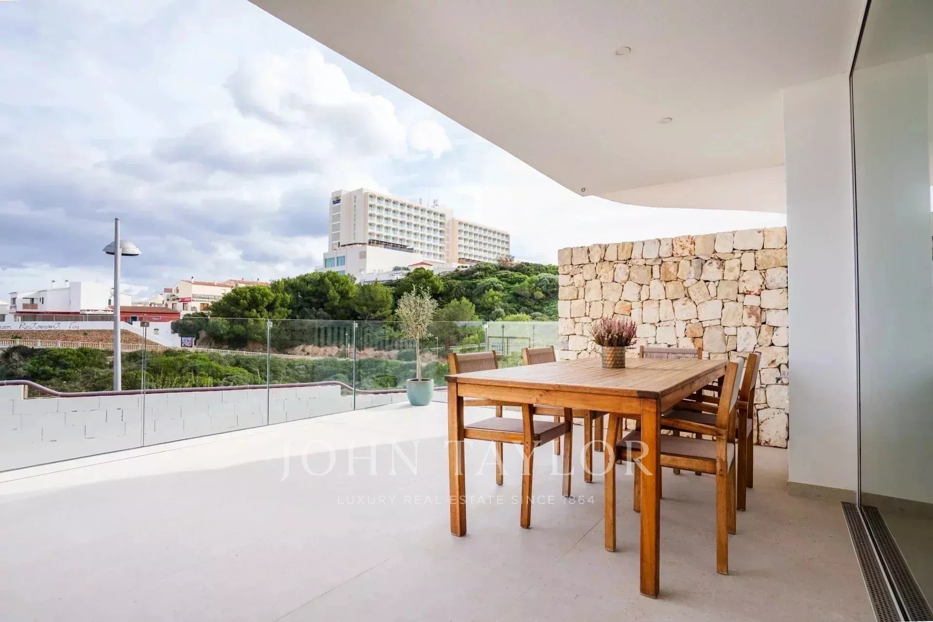 If you are looking for stunning sea views and a modern and luxurious apartment, this property could be a golden opportunity. Here you will live just 200 meters from the beach of S'Arenal d'en Castell, with all the necessary amenities for year-round well-being. You will find 1, 2 or 3 bedroom apartments with spacious terraces ranging from 100 to 260 square meters. The living space is generous and extremely bright, allowing you to enjoy the wonderful surroundings from your sofa. After enjoying the interior spaces, you will have access to common areas that include a children's play area, a coworking space, a swimming pool, a gym and a spa. The property has a parking space and a storage room.