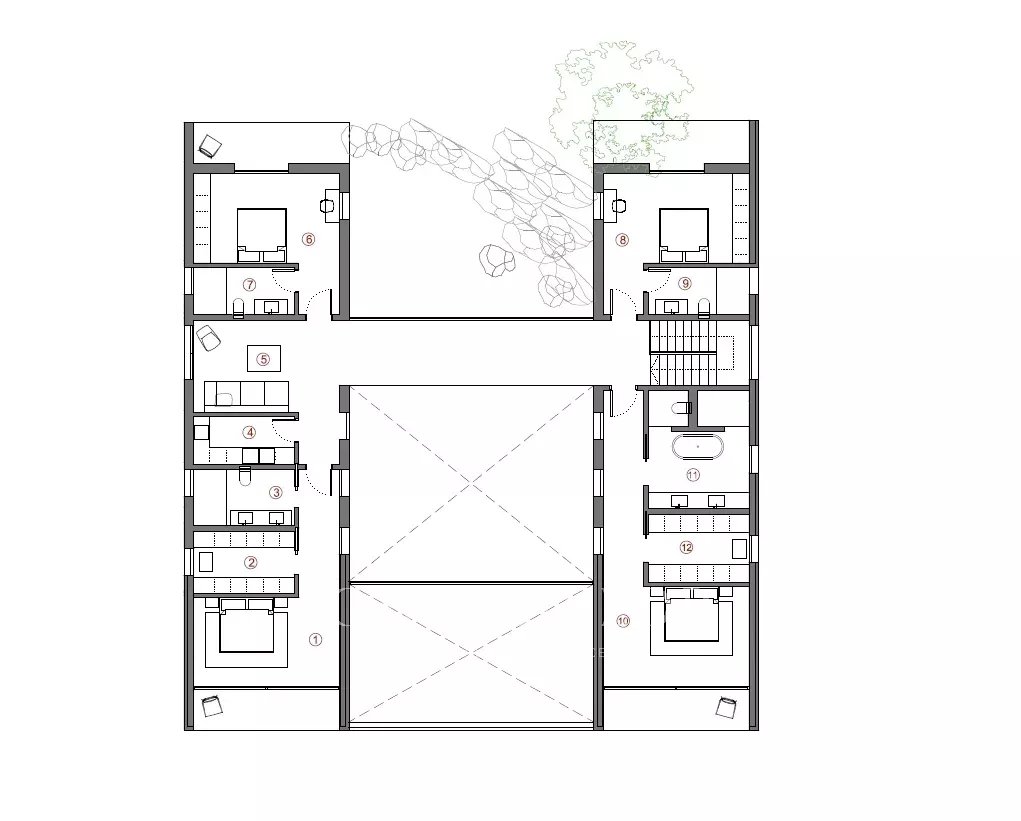 The upper floor has 4 bedrooms, all of them with bathrooms en suite and 2 of them master bedrooms with individual dressing rooms each and we add that the project has a utility room and garage.