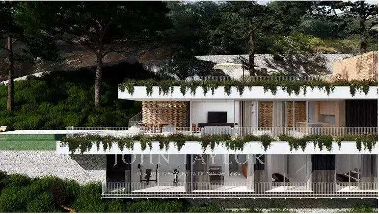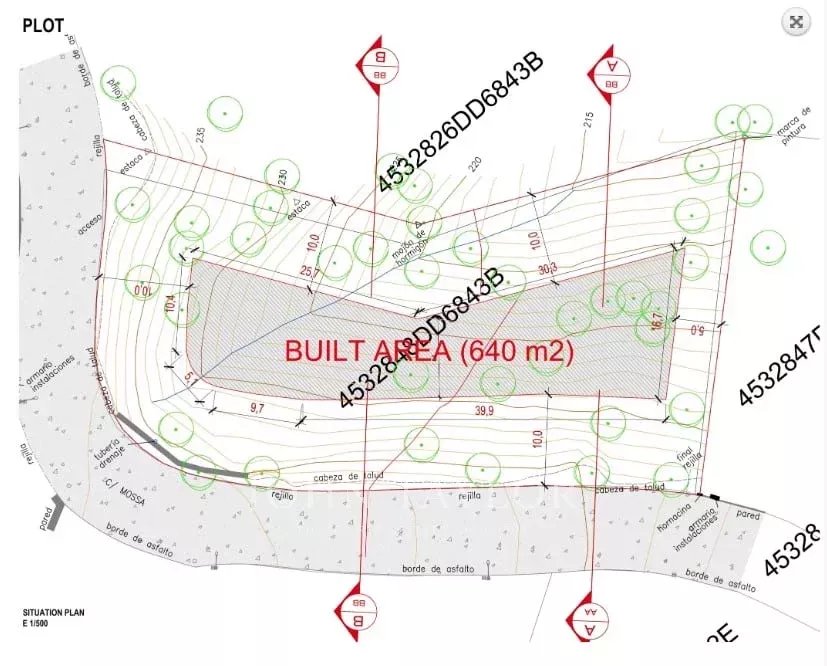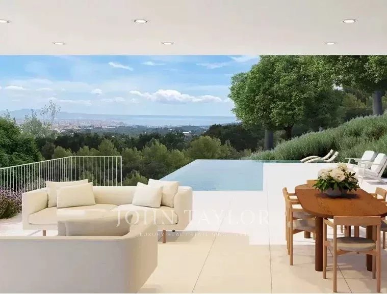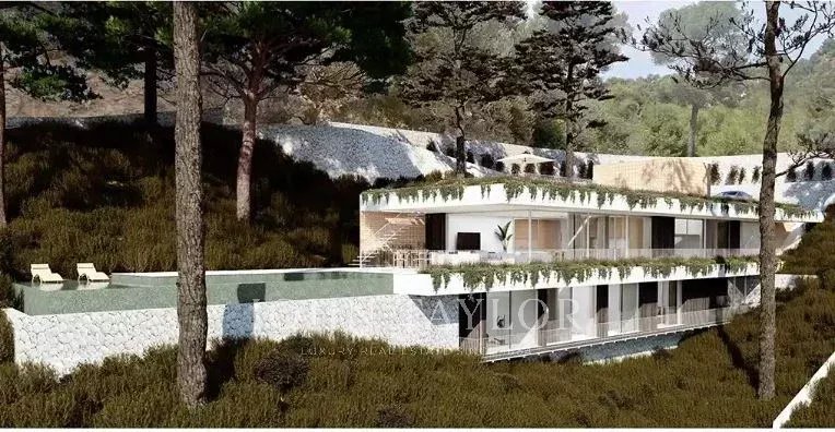 The plot with panoramic sea and city views. with a surface of 2235 m2 is suitable for building up to 737sqm property on two floors. It has an official connection to the main drainage system. Located in a very exclusive neighborhood and served with the extras of the Son Vida urbanization, such as security, the three golf courses, and the two 5-star hotels, make this place one of the most desired in Mallorca. The indicated price does not include any further planning, construction or changes of the current project.