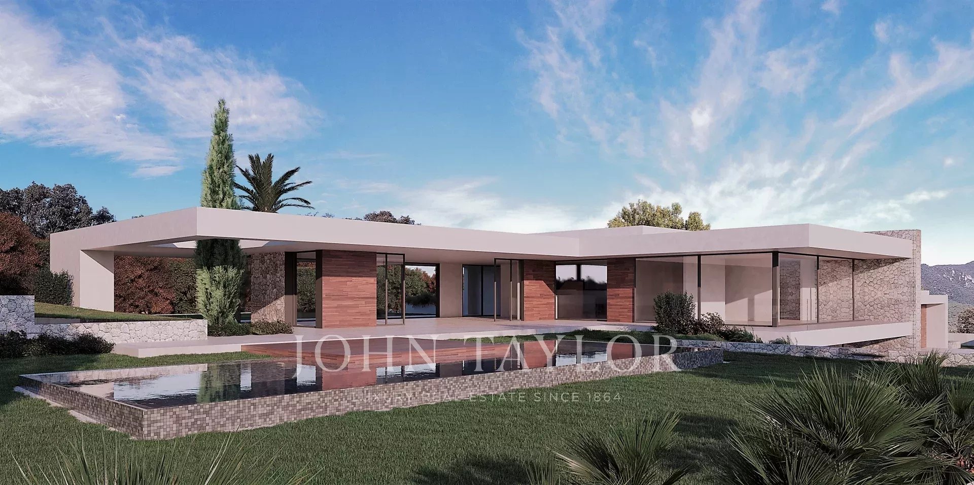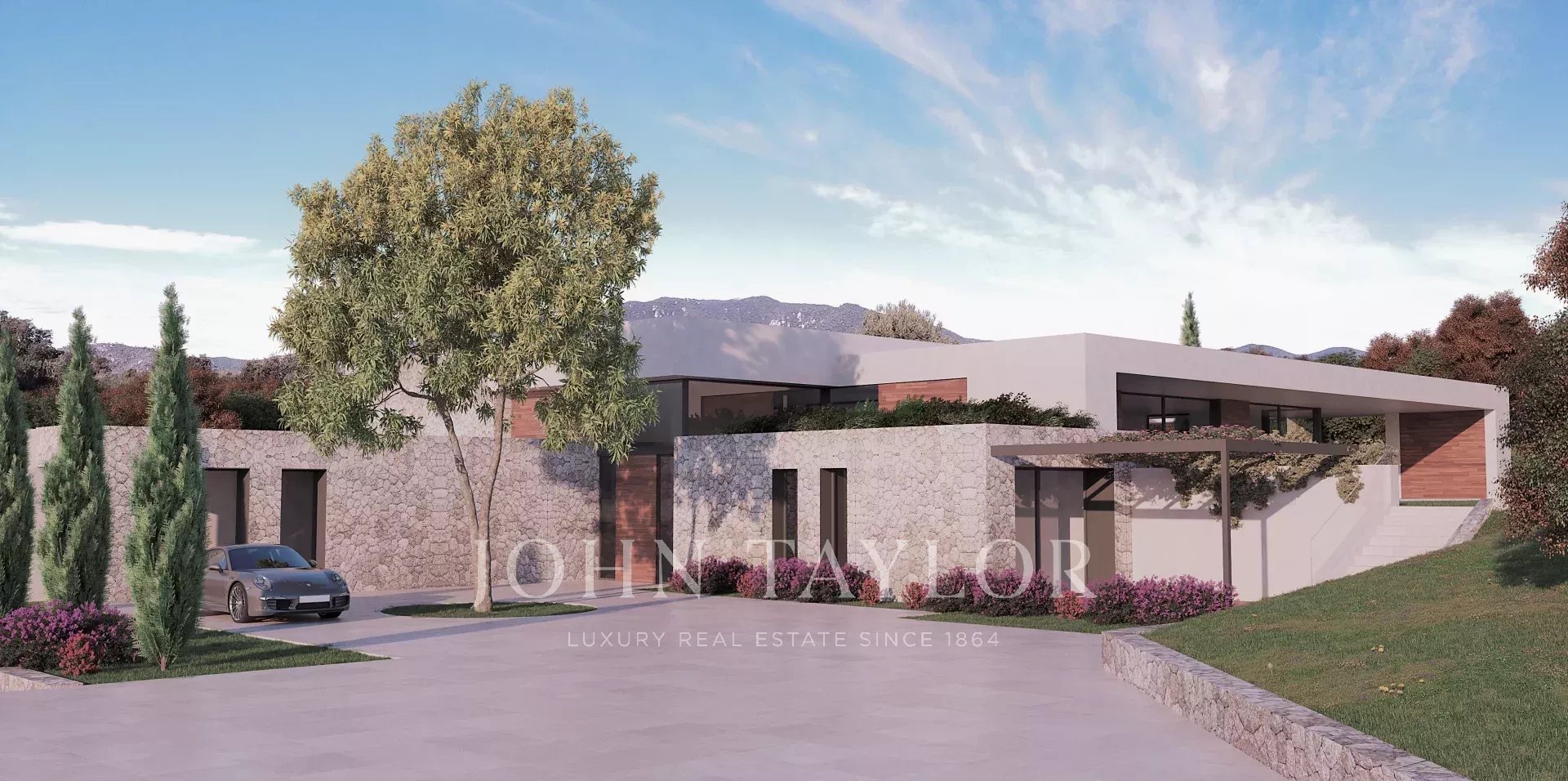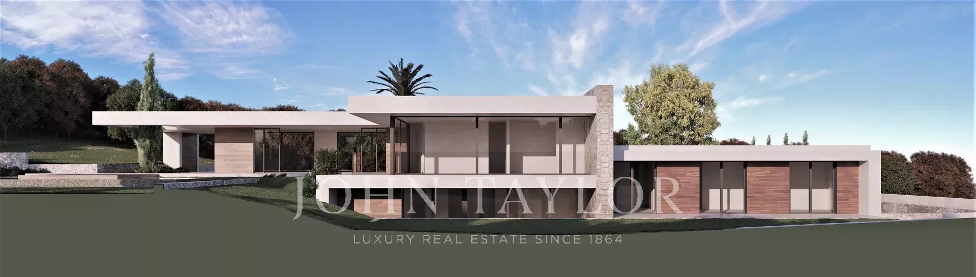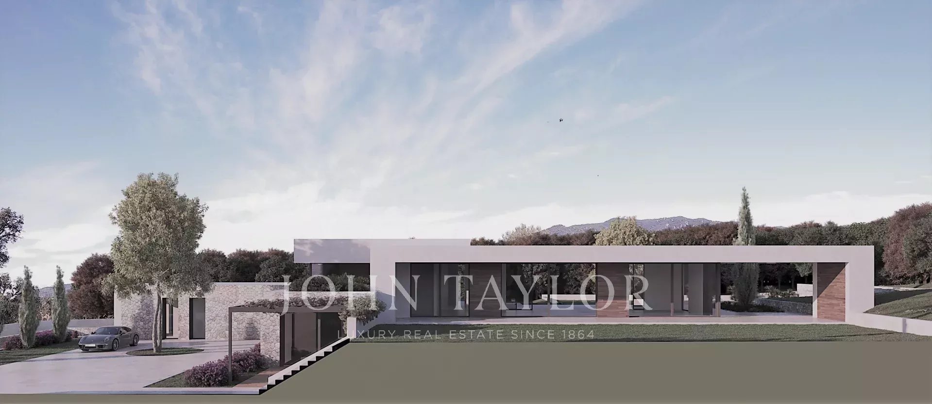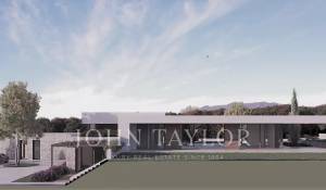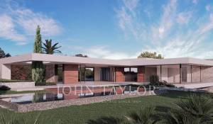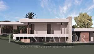 Large plot with a project next to the golfcourse of Santa Ponsa. This is one of the last plots available on the first line of the golfcourse in Santa Ponsa. It is also one of the largest lots with almost 3,500 m2. The land has a slight slope and enjoys beautiful views of the golf course. Thanks to the large dimensions, a luxury villa could be built with a constructed area of about 700 m2 and additionally a large basement. There is already a initial project for a modern-style house with high ceilings. Almost the entire house is on one floor and blends perfectly into the plot, where indoor and outdoor life seamlessly converge. With this design, privacy, views and orientation are also optimized, so that there is always the possibility of enjoying the sun at any time of the day. Don't miss out on this magnificent opportunity! Of course we can recommend you archtects and very experienced construction companies to realise your dream home.
