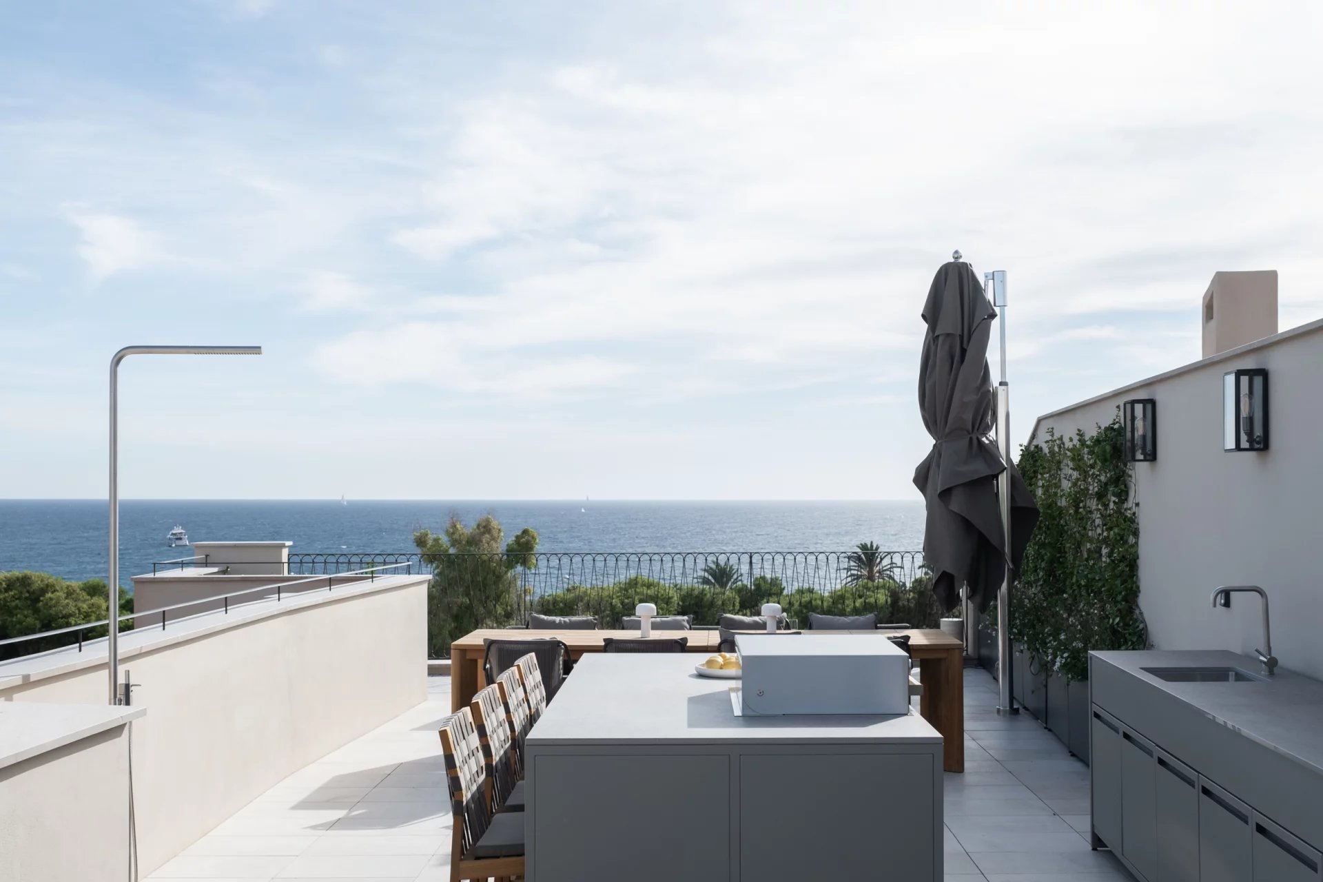 The property offers 792 m2 of interior living area built on four floors, accessible via a lift. The sleek interior has been transformed to offer four exquisite suites with built-in wardrobes and treelined sea views, three open-plan, stylish living rooms with feature fireplaces, a spa with a sauna and steam room, a fitness area, and a truly spectacular entertainment area. An additional impressive 120 sqm rooftop terrace with a gas BBQ, spacious dining area, lounge, and chill-out area is the perfect location to enjoy the exterior of the property, be it for enjoying the sun, sheer relaxation, or entertaining with friends and family.