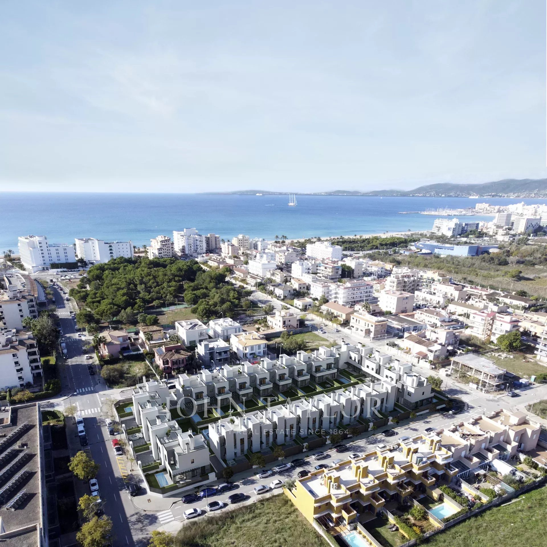 El Arenal or S'Arenal, former fishing village is located between two municipalities, Llucmayor and Palma on the south coast of Mallorca. It is ideal location, 12 km from Palma and only 5 km from the airport, is one of the pillars of its success. It has a very well-known sports harbour, which is also one of the biggest attractions. El Arenal is also known for its long white sandy beach full of palm trees. The stunning Paseo Maritimo is an easy walk to explore the coast, with everything you could want, leisure areas, restaurants, and cafes. From El Arenal you can also enjoy the southernmost part of the Sierra de Tramontana, which can be seen far beyond Palma. From the beach, near the yacht club, you can even visit Palma Cathedral and Bellver Castle on a clear day. There are also several bars or beach bars, known as Balnearies, serving drinks and snacks; The Balnearies are numbered and are often used as reference.