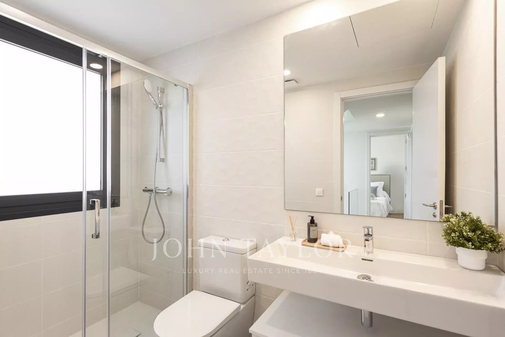 At the front, two open-air parking spaces surrounded by plants provide a warm welcome and maximum convenience.