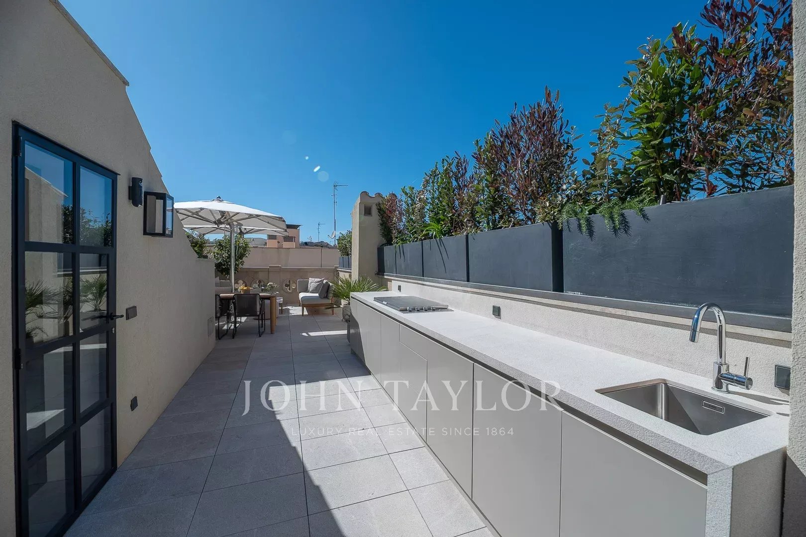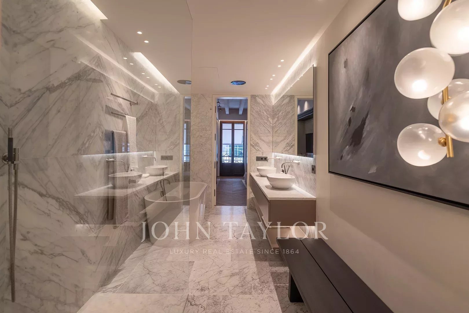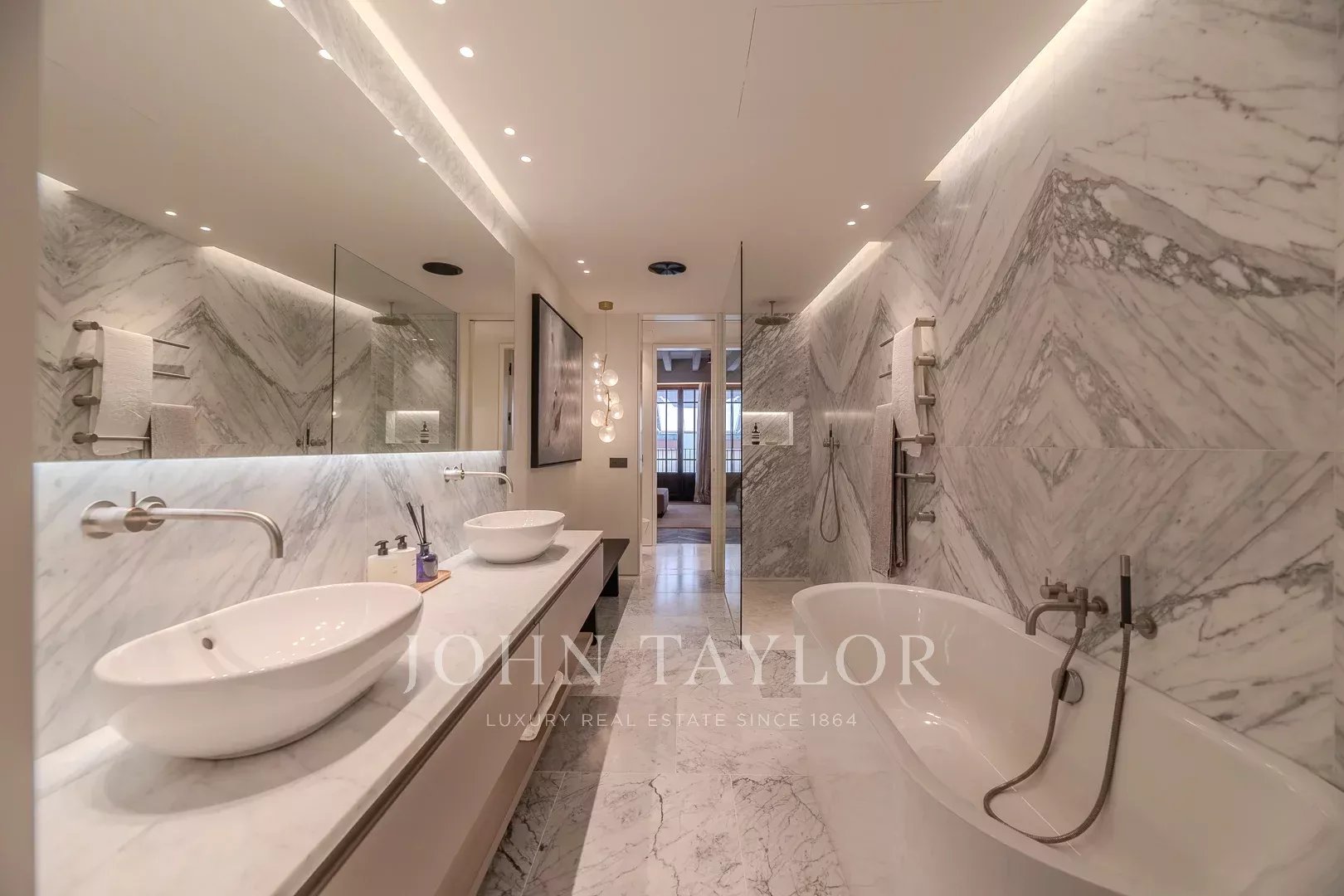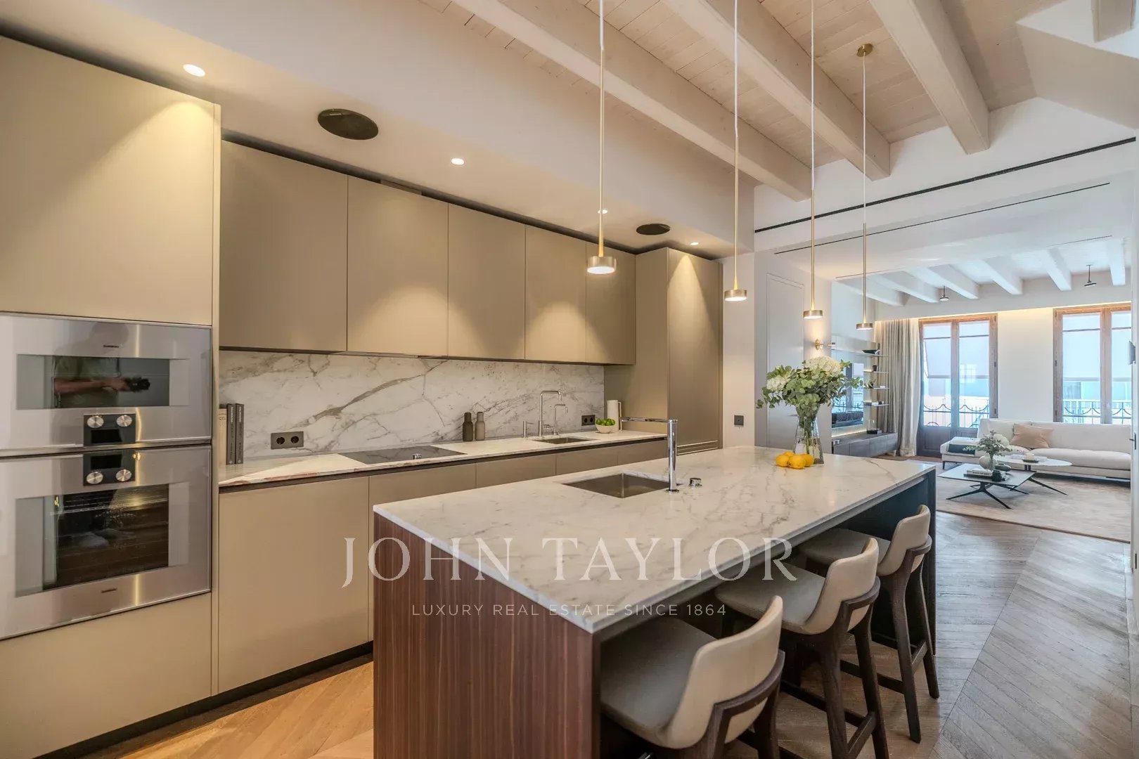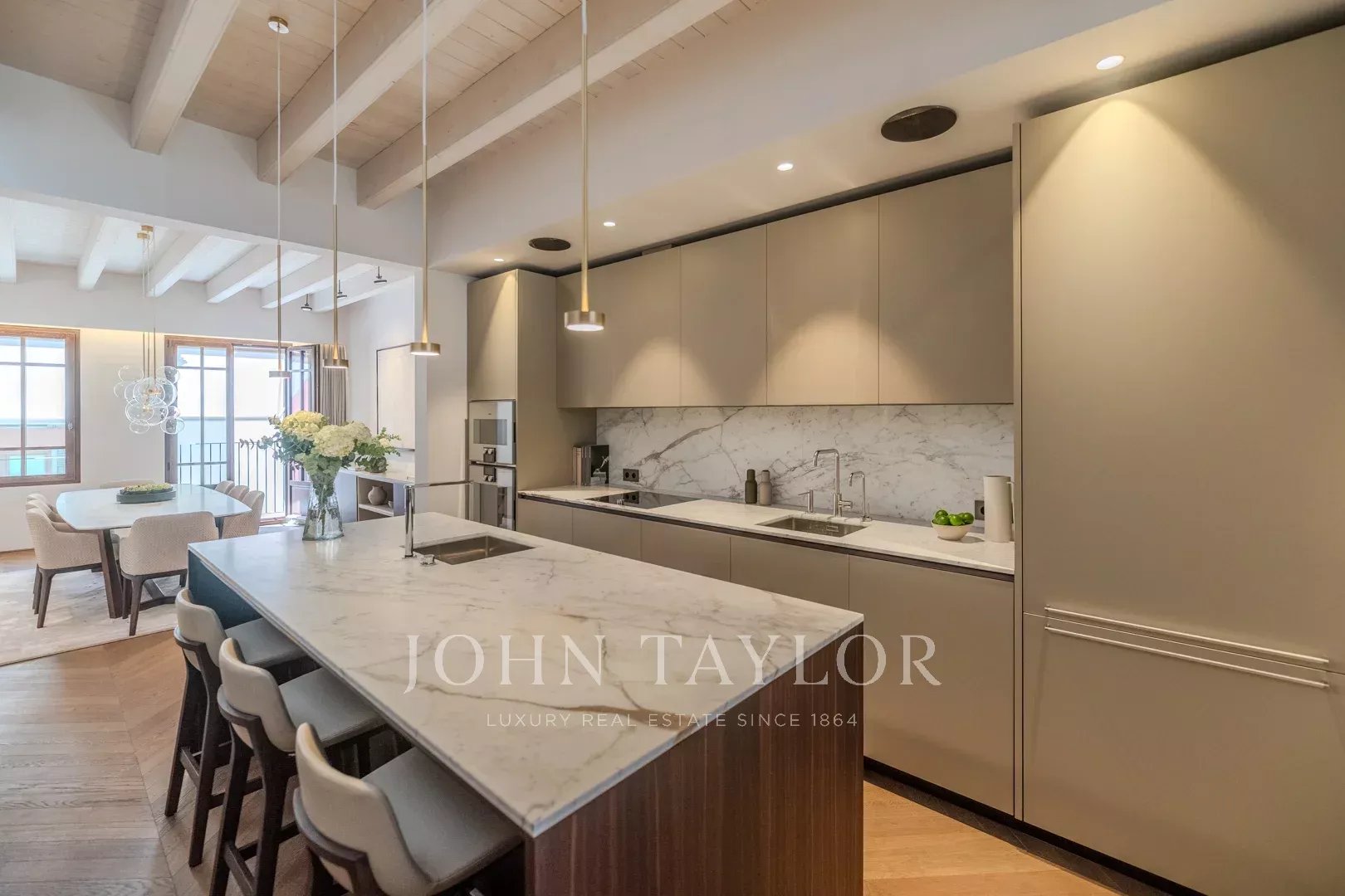 The Llorenc Townhouse showcases an array of top-quality brands and bespoke elements, including Poliform carpentry, Gaggenau and Miele appliances, Giopato & Coombes lighting, Bang & Olufsen audio systems, Roda outdoor furniture, and Loro Piana textiles. Additional highlights include custom-designed marble details, Flos lighting, Vola fixtures, and Sonance Invisible speakers, all selected to create an unparalleled living experience.