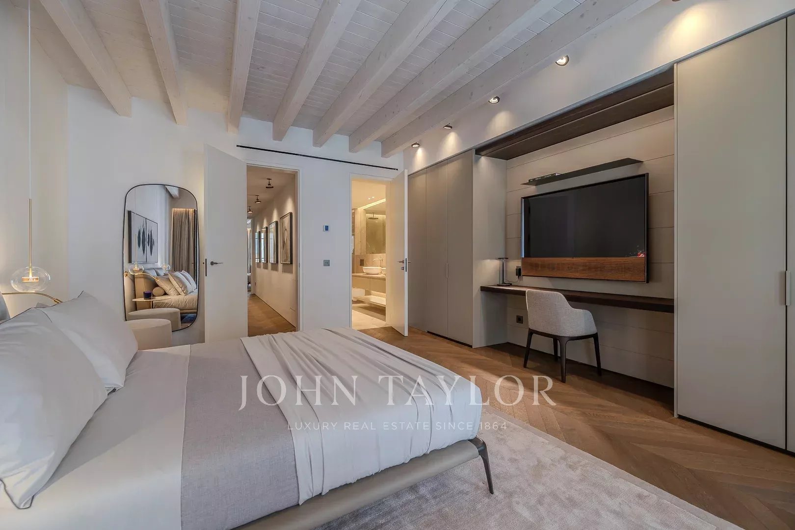 First Floor: Two beautifully appointed double bedrooms, each with an en-suite bathroom, offer privacy and comfort for guests or family members.