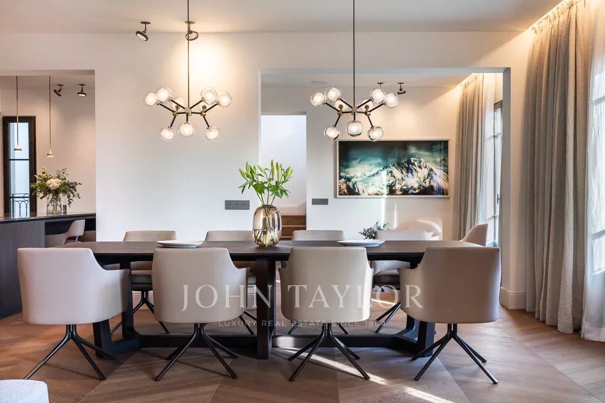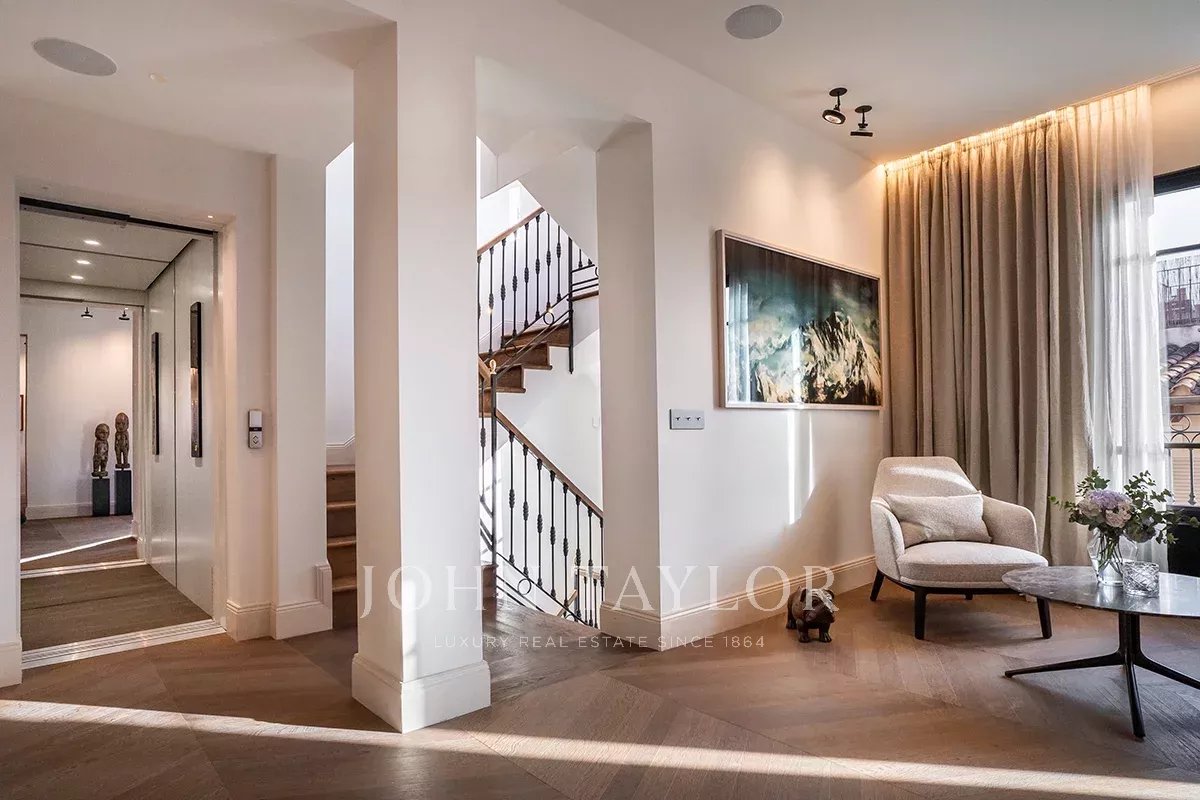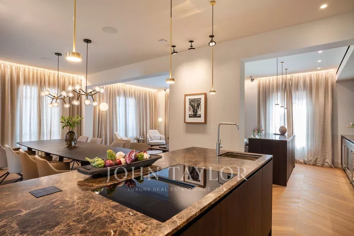 Key features of the property are 5 bedrooms, and 5 bathrooms, including a unique master suite on its private floor and a guest/staff apartment, 4 guest toilets, an owner's private office, an impressive living area with a custom cocktail bar, a private library with sea view, 3 kitchens, including an area perfect for hosting soirées, events or board meetings, one of the finest private 80 sqm terraces in Old Town and an exclusive "Champagne Terrace" with panoramic Mediterranean/Mountain views. The property comes complete with underfloor heating, central A/C and private parking.