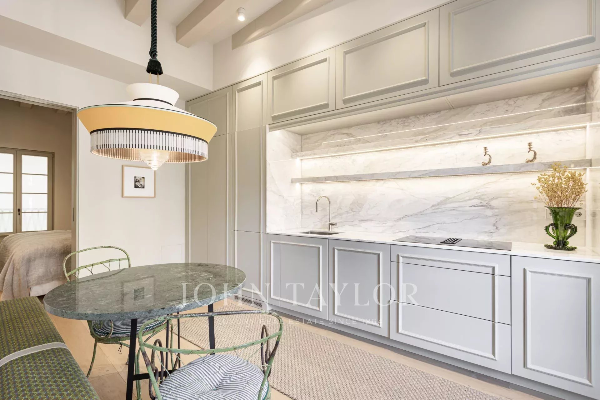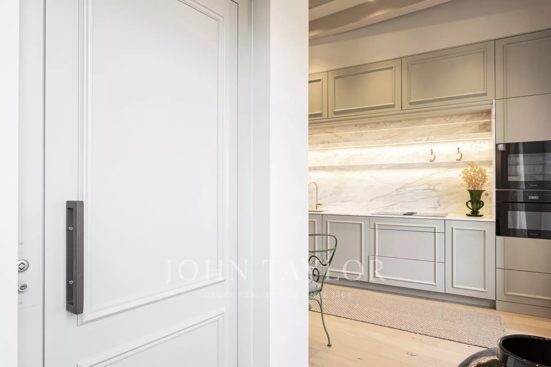 Direct lift access to each floor of the penthouse assures maximum comfort. Upon entry, one is instantly impressed by the sheer quality of the materials incorporated in the restoration, which is reflected everywhere one looks, from the custom-made windows and doors to the natural oak flooring with underfloor heating throughout. The beautiful handmade kitchen and individually chosen marble are other examples of the level of perfection that has been achieved.