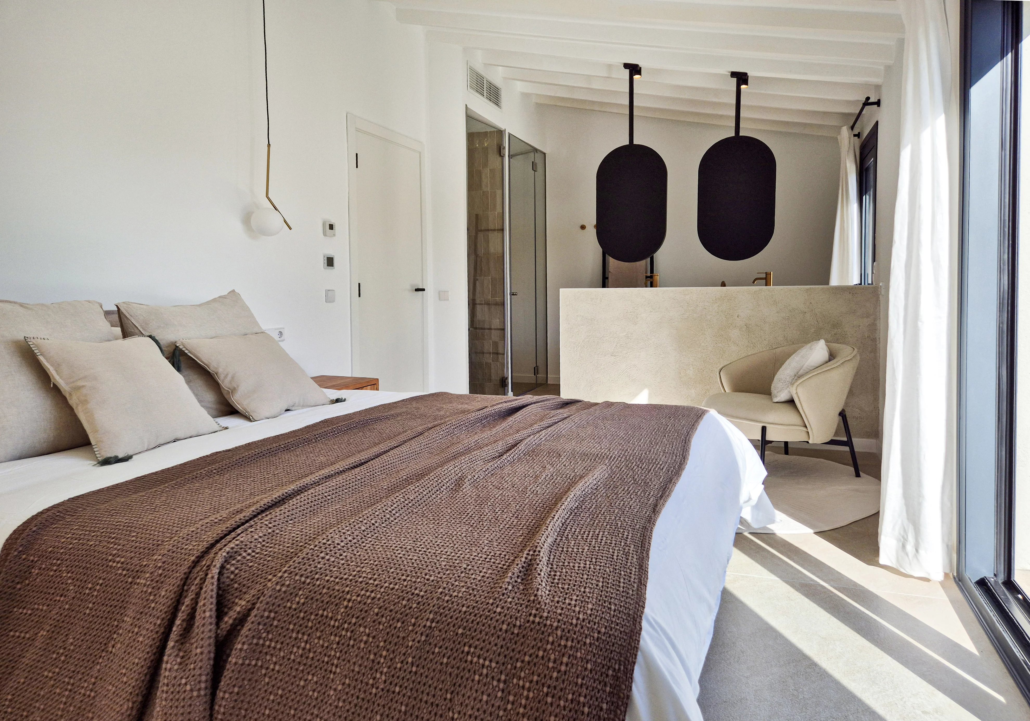 Double-height ceilings, stone accents, and a sunlit open-plan living and dining space lead to a private terrace and landscaped garden, perfect for entertaining or relaxing under Mallorca’s sun. Three spacious en-suite bedrooms upstairs provide maximum privacy, creating a serene retreat.