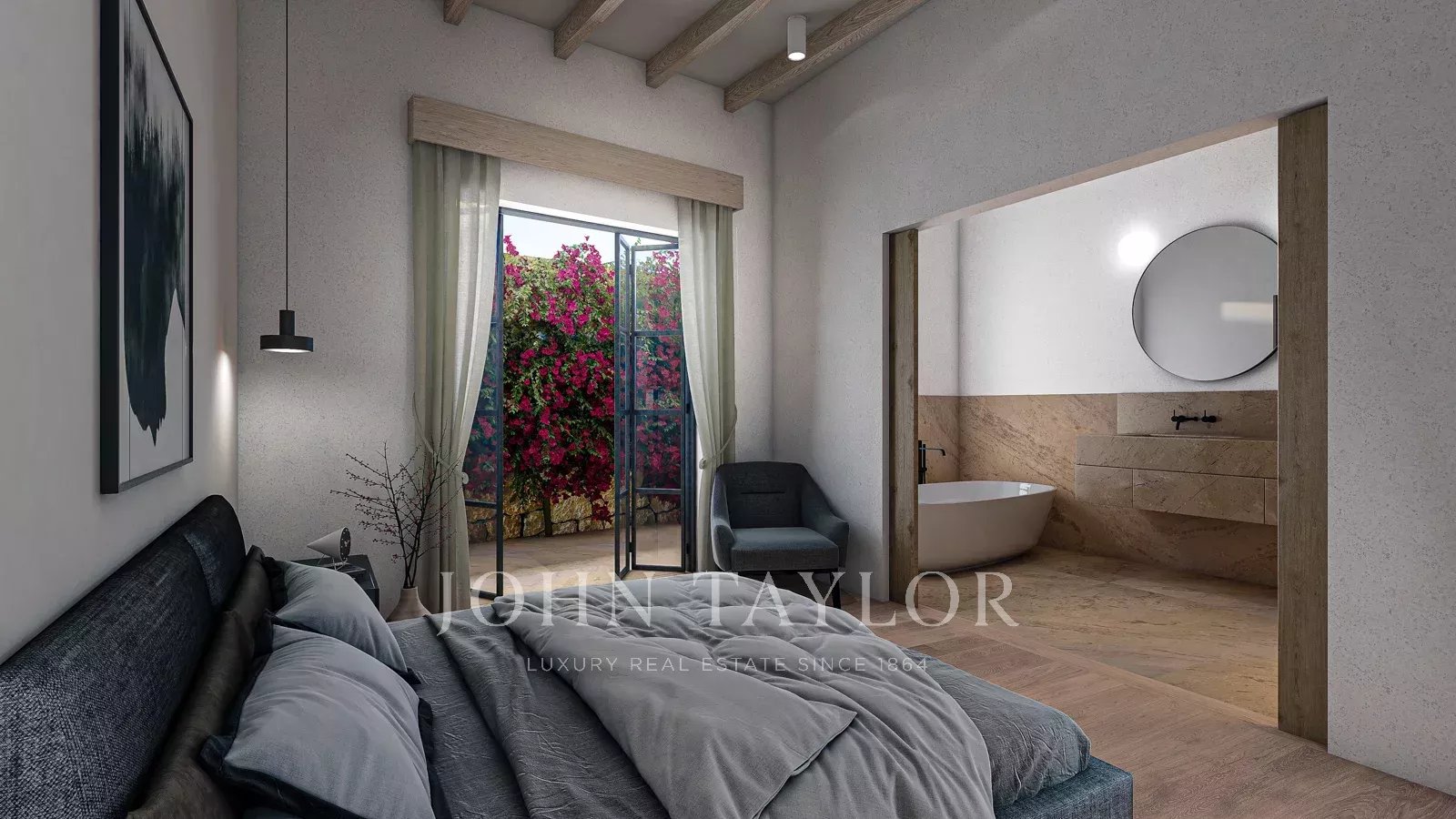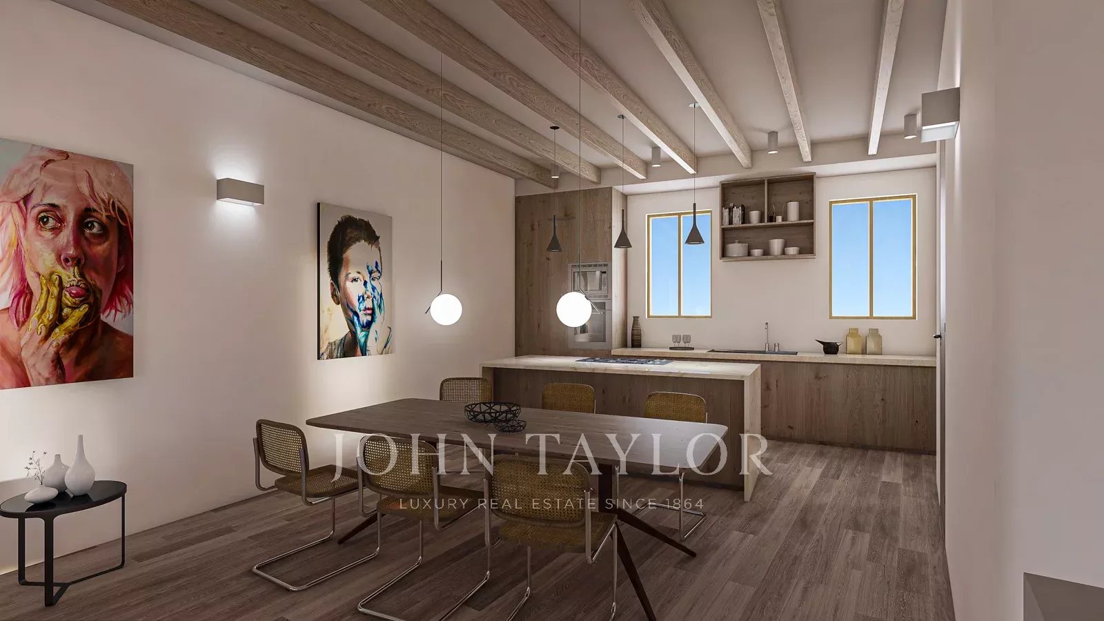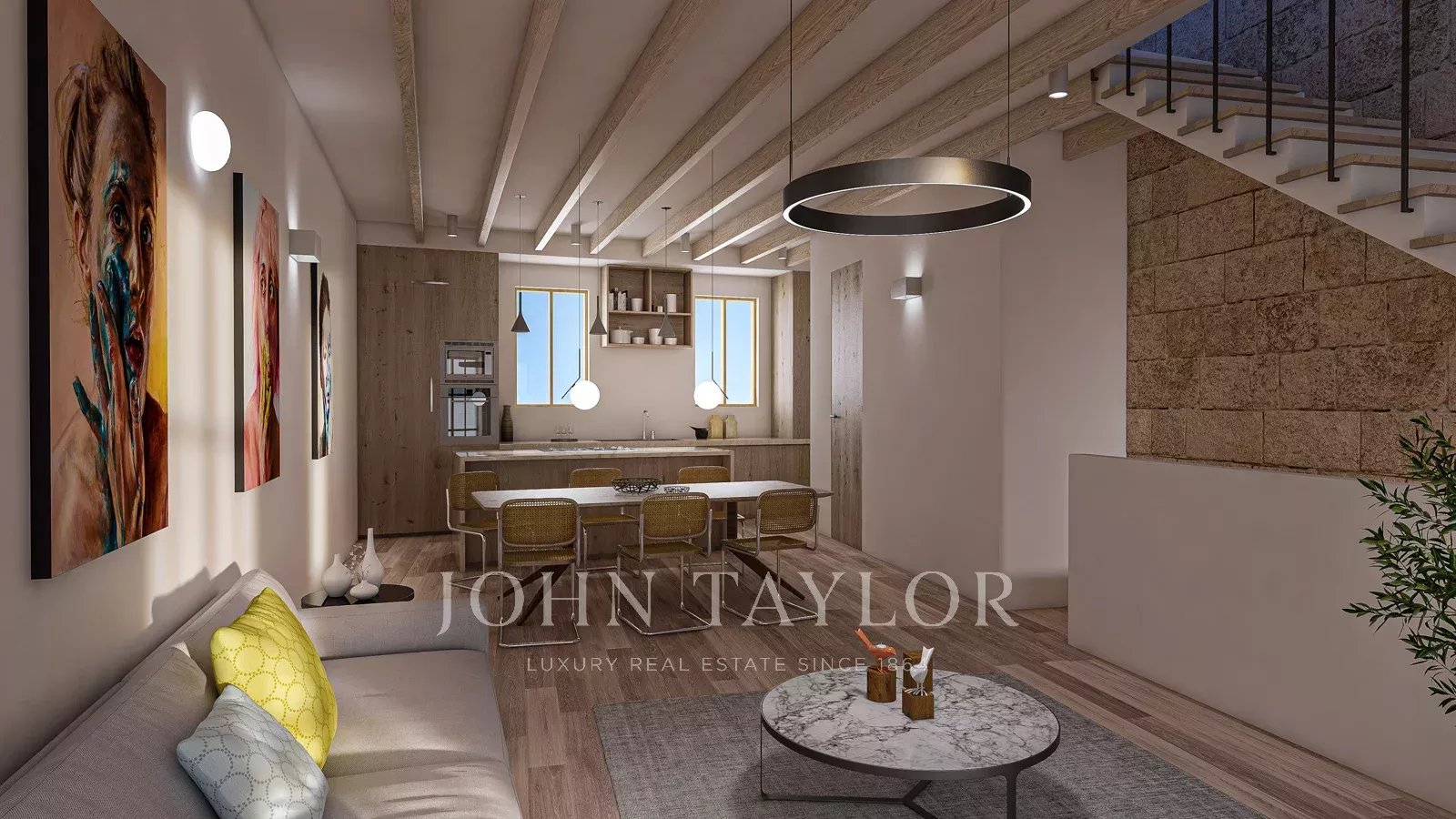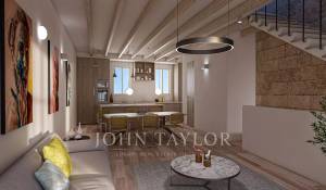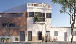 This townhouse is situated in the highly desirable neighborhood of Es Jonquet/Santa Catalina. The residence is currently undergoing a top-tier renovation, incorporating premium materials, and boasts a generous living space spanning 135 m2. The ground floor presents two generously sized bedrooms. The back bedroom, designed as a master suite, boasts its own secluded patio, an expansive bathroom equipped with a bathtub and a deluxe shower, along with a private dressing room. The front bedroom is comparably more modest and includes a compact bathroom. Ascending to the first floor, a spacious open-concept living and dining area unfolds. The kitchen, crafted from exquisite solid oak, is complemented by state-of-the-art GAGGENAU appliances. A front balcony adds a great feeling to this open living area. Furthermore, you will find access to the private roof terrace from the upper floor. From this vantage point, you can enjoy the views to the sea and the beautiful surroundings of Santa Catalina. Additional highlights are hot/cold air conditioning, underfloor heating and the KNX home automation system for most comfort. Completion of the renovation is scheduled for Dezember 2025.