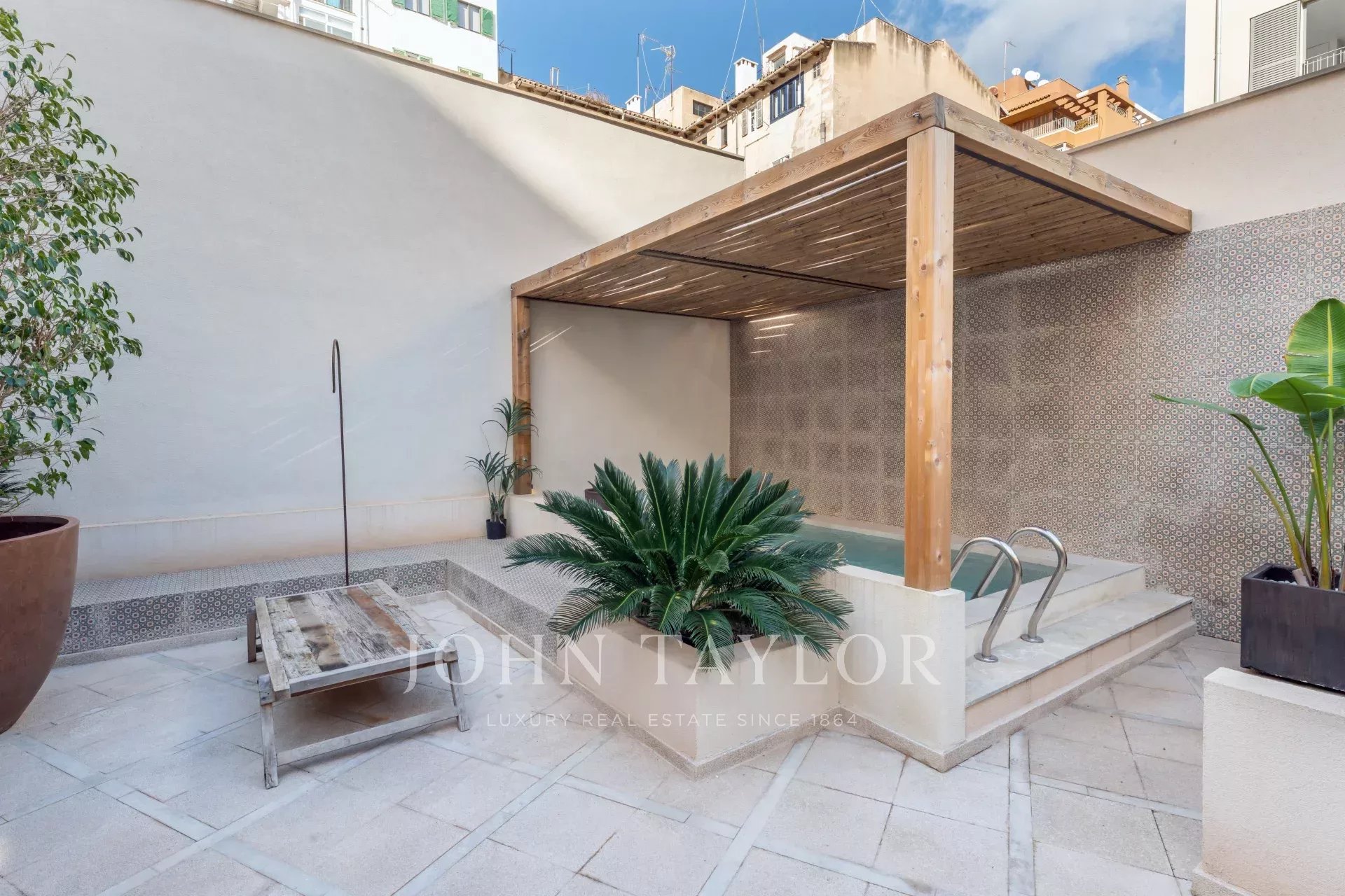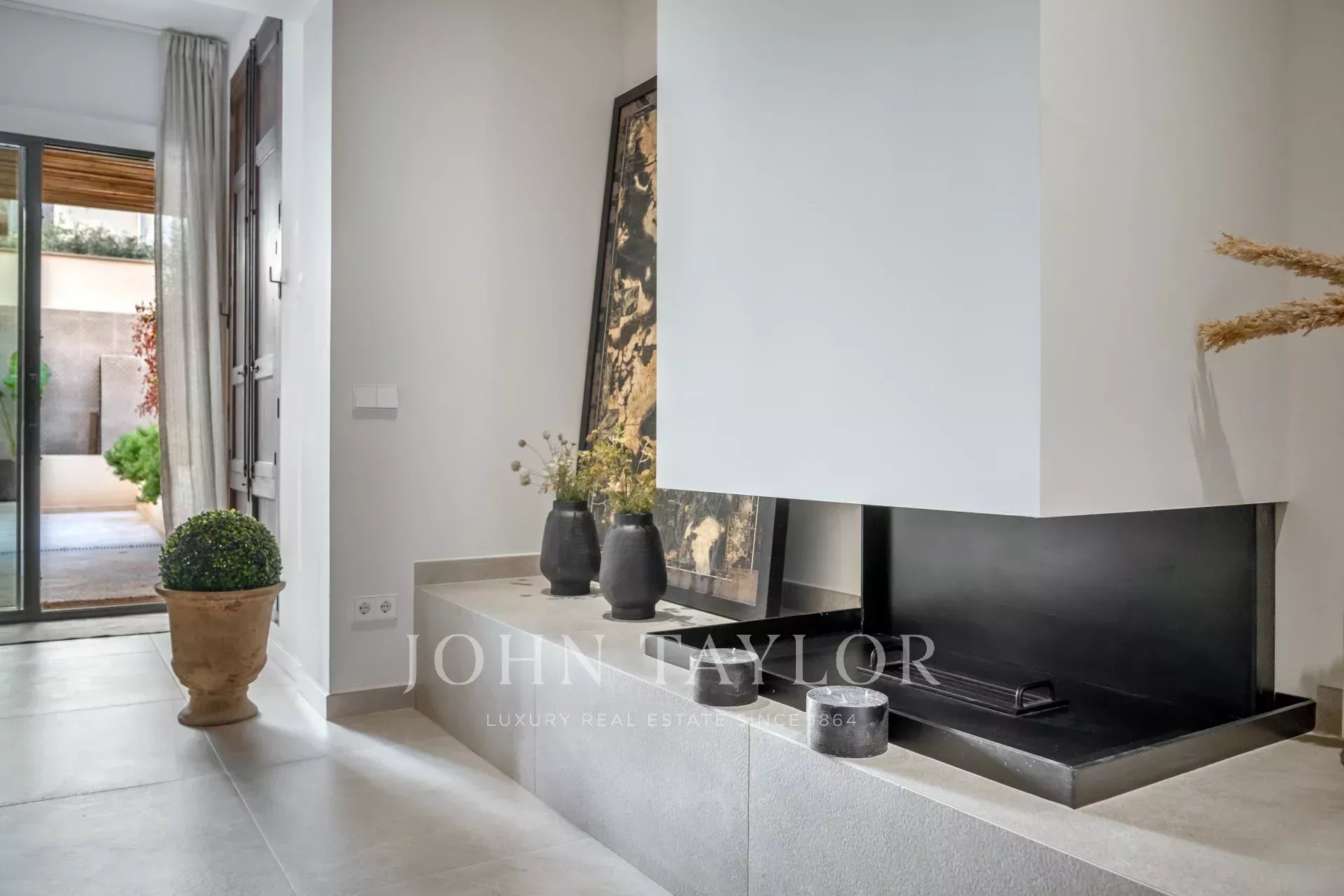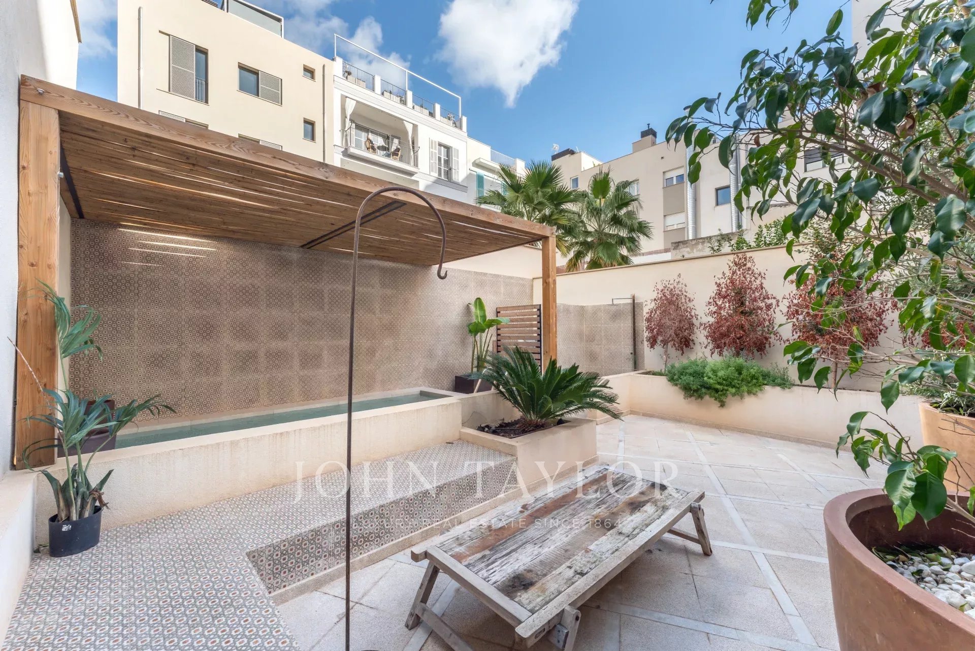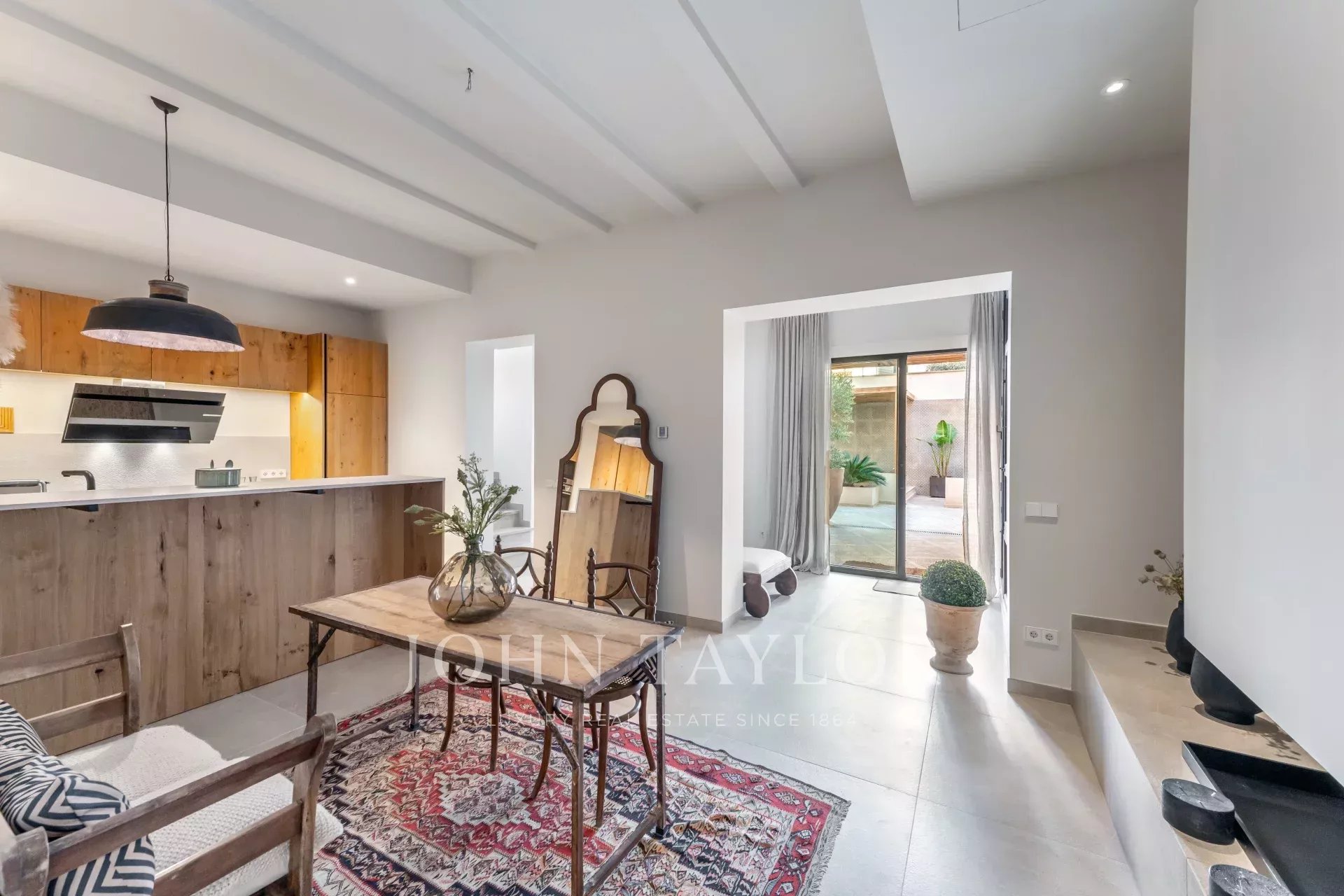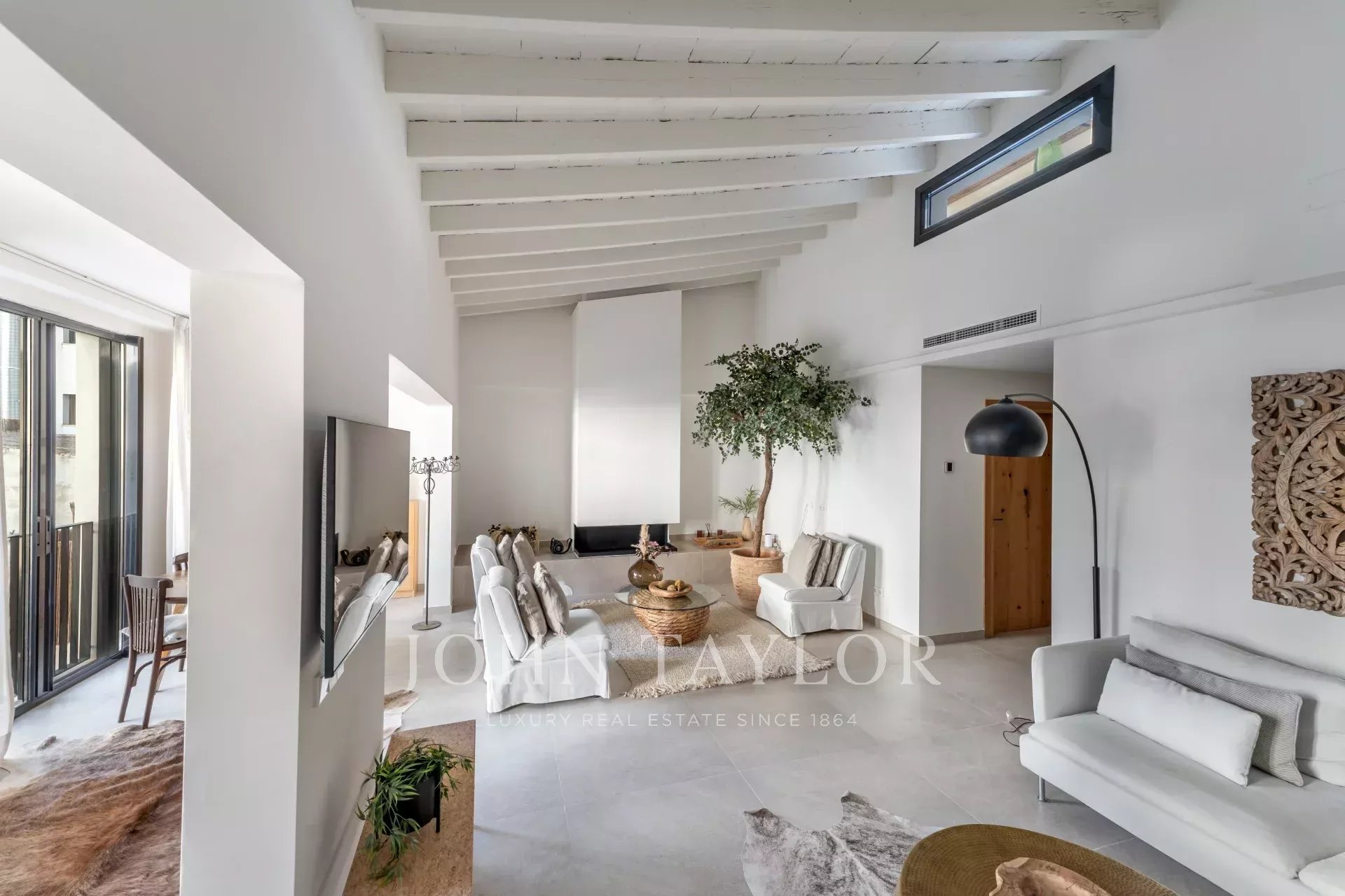 Discover this stunning, fully renovated townhouse located in the sought-after Santa Catalina neighborhood, known for its charm and proximity to Palma's Old Town. Designed with Scandinavian elegance, this home is flooded with natural light and boasts a warm, welcoming atmosphere. Spanning three floors, it features an open-plan layout with a fully fitted kitchen, cozy dining area, and fireplace, all leading to a ground-floor terrace with a private pool. The first floor offers a loft-style living space with exposed wooden beams, a second fireplace, and a formal dining area—perfect for entertaining. On the top floor, enjoy the spacious terrace with scenic views of the neighborhood. With four bedrooms, five modern bathrooms, central air conditioning, and private parking, this townhouse is both practical and luxurious. Its location provides easy access to local shops, restaurants, and everything Palma's Old Town has to offer.
