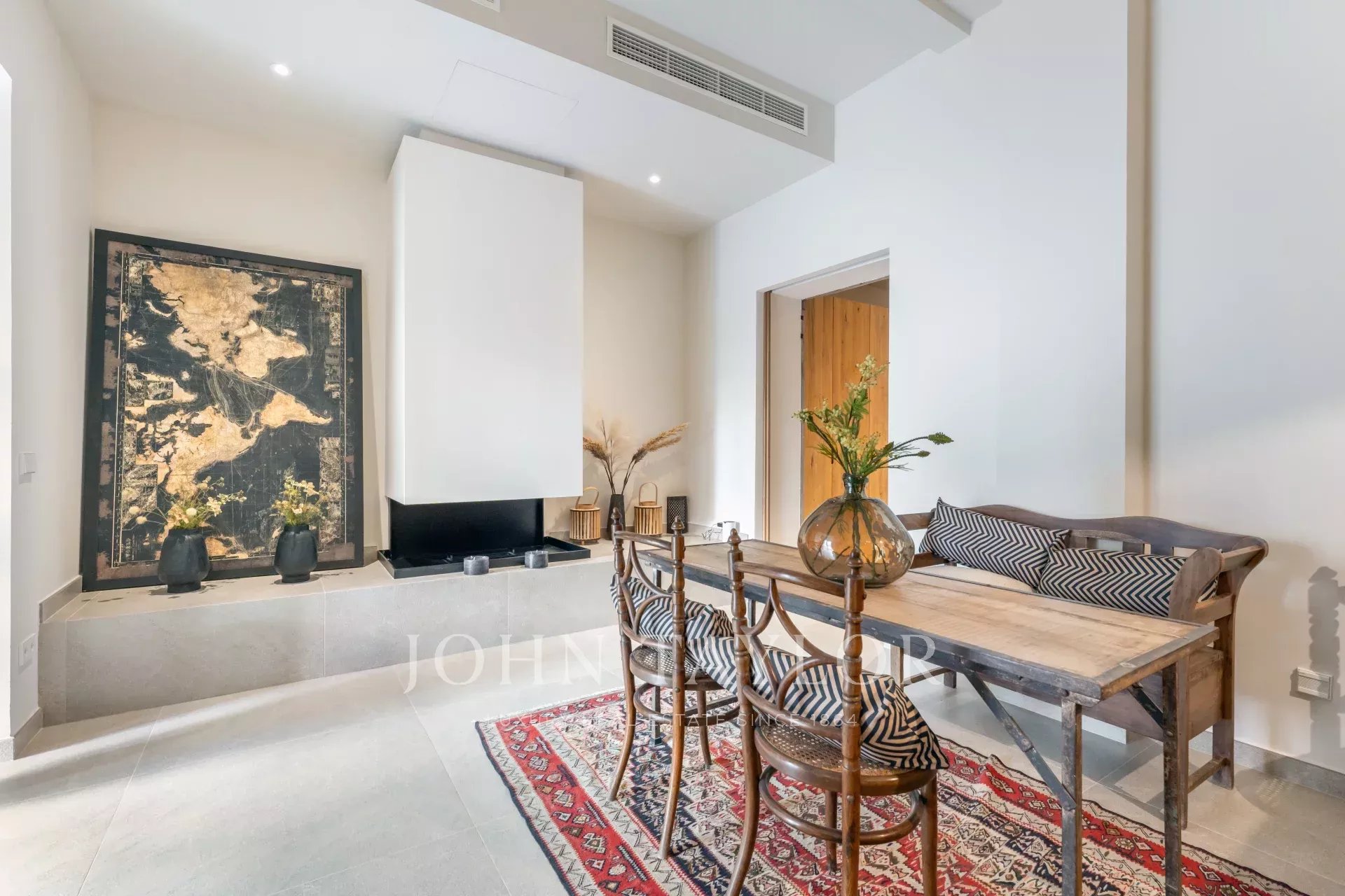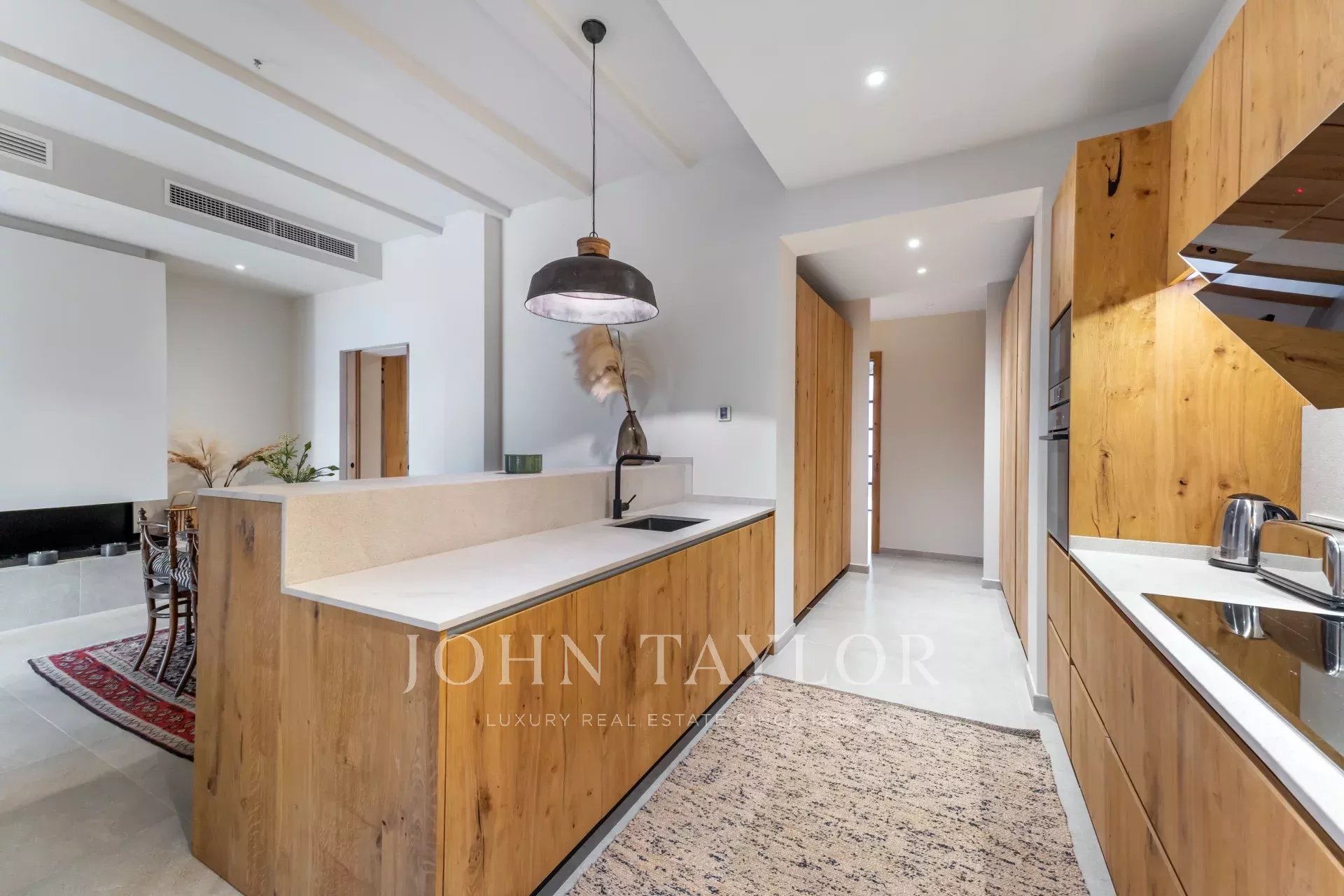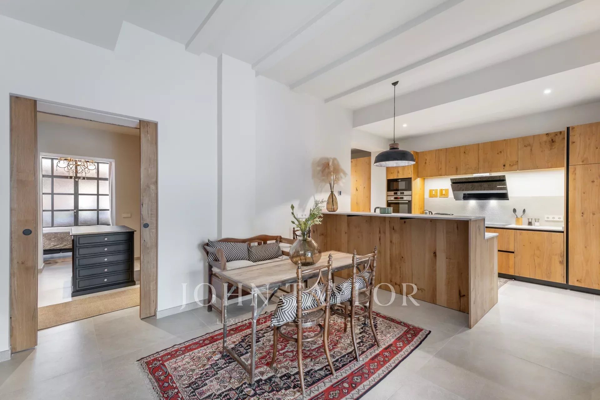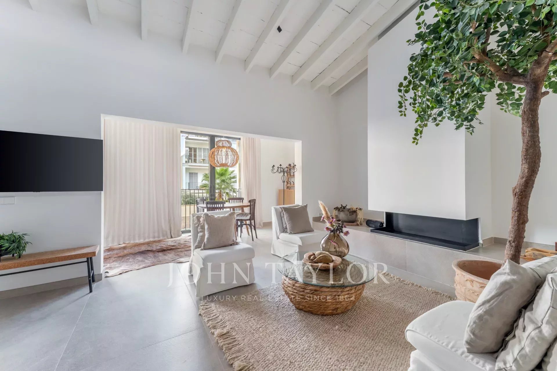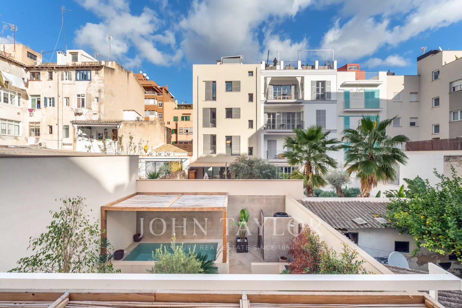 Discover this stunning, fully renovated townhouse located in the sought-after Santa Catalina neighborhood, known for its charm and proximity to Palma's Old Town. Designed with Scandinavian elegance, this home is flooded with natural light and boasts a warm, welcoming atmosphere. Spanning three floors, it features an open-plan layout with a fully fitted kitchen, cozy dining area, and fireplace, all leading to a ground-floor terrace with a private pool. The first floor offers a loft-style living space with exposed wooden beams, a second fireplace, and a formal dining area—perfect for entertaining. On the top floor, enjoy the spacious terrace with scenic views of the neighborhood. With four bedrooms, five modern bathrooms, central air conditioning, and private parking, this townhouse is both practical and luxurious. Its location provides easy access to local shops, restaurants, and everything Palma's Old Town has to offer.