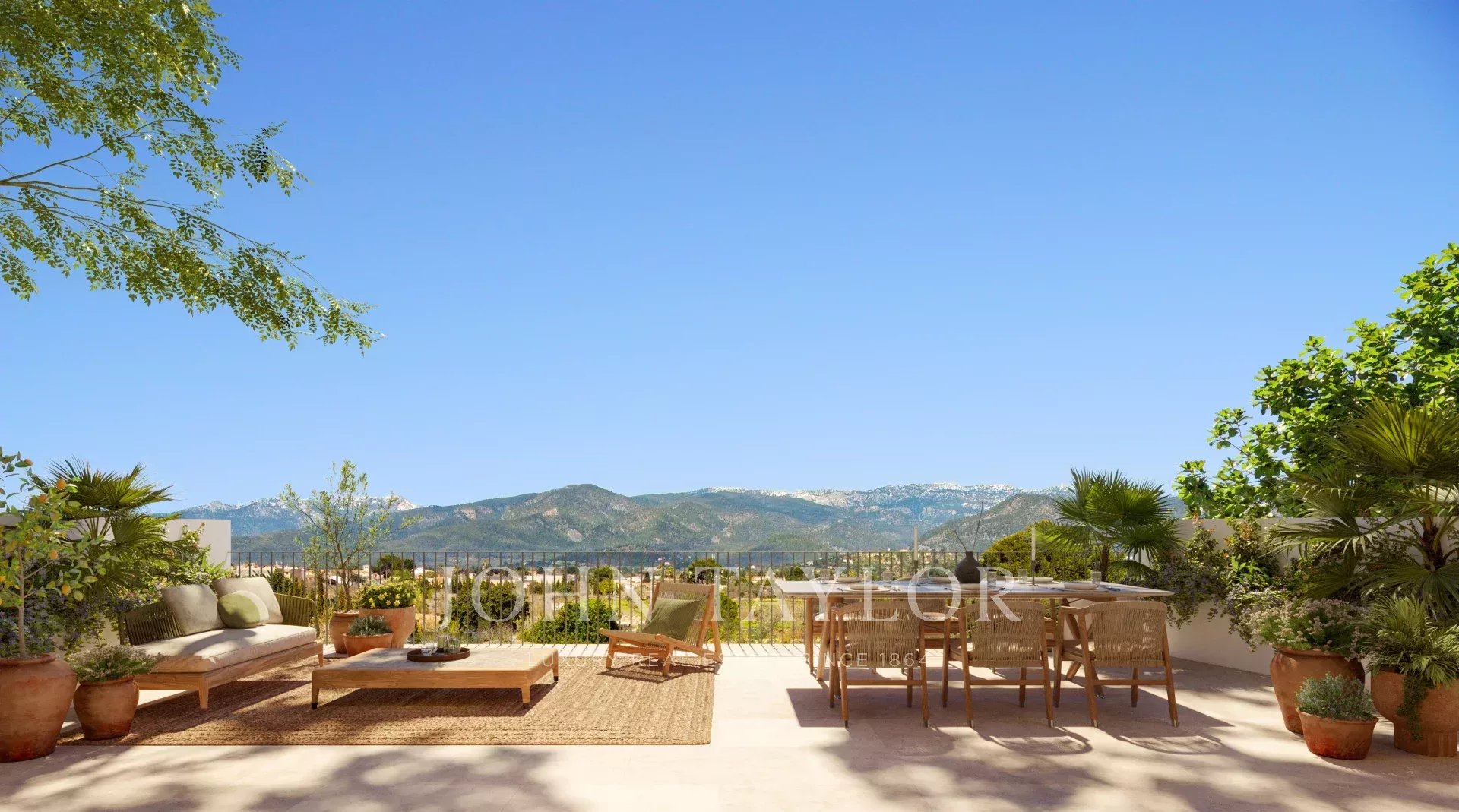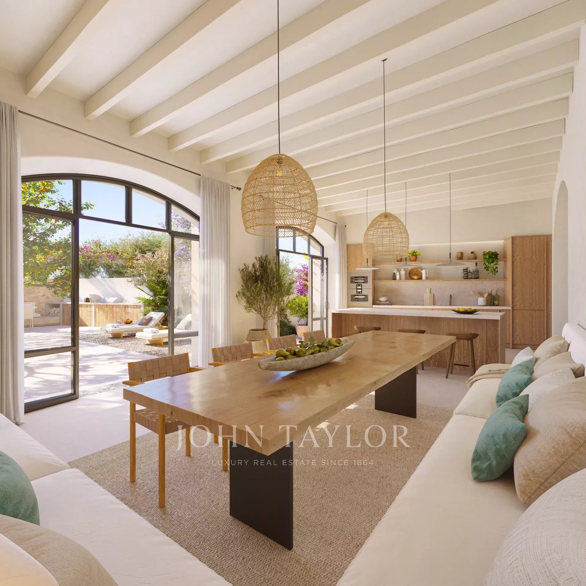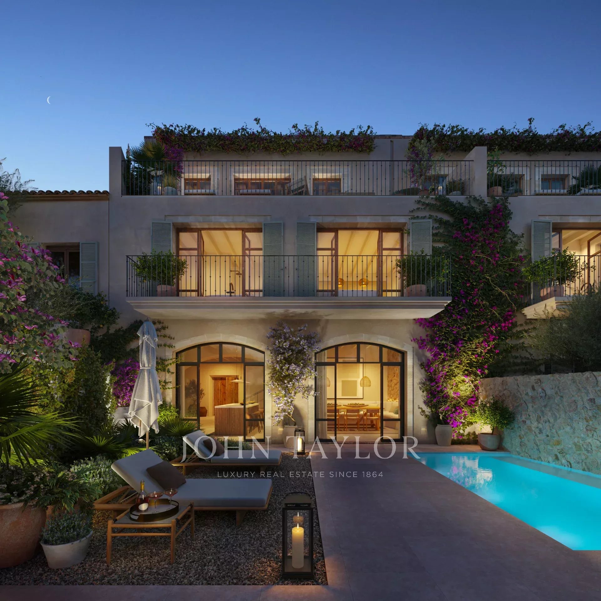 This townhouse with a pool is being constructed on a tranquil street in the cosy and beautiful village of Santa Maria, only a short walk away from the town’s center with its lively cafes, restaurants and people. The property will have a traditional facade and a modern, high quality interior. The large wooden doors open up to a wonderful house, distributed on 3 floors. It comes also with a private garage, a garden with a pool, as well as a terrace on each level of the house offering a breathtaking Tramuntana mountain view. Encompassing a seamlessly crafted blend of traditional Mallorquin architecture with contemporary living, this property leaves nothing more to be desired.