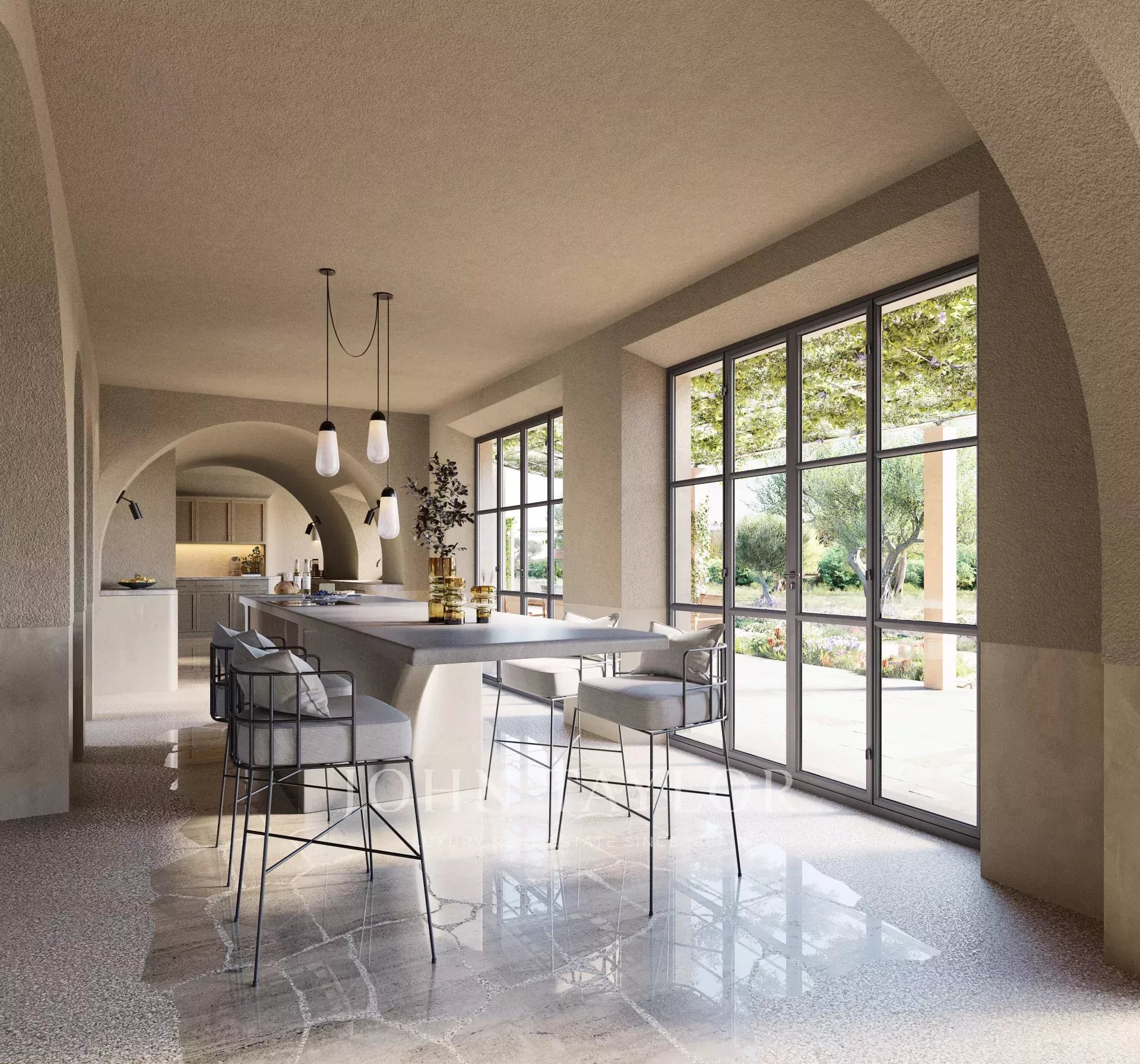 Ca Na Serra is under construction at present and will be completed in March 2026. Built using the best materials, its exterior is in perfect harmony with its countryside surroundings. The interior design offers quiet simply expectacular blend of natural light, open plan layout with stone flooring, domed ceilings, natural wood, and marble. The ground floor includes a fully fitted kitchen, pantry area, breakfast nook, and very spacious living room, all of which lead directly to the exterior terrace, which is perfect for exterior dining, relaxation or entertaining. The ground floor is completed with two bedrooms with ensuite bathrooms, a guest lavatory, and a complete bathroom. The first floor offers a stunning master bedroom with a dressing area, an ensuite bathroom, and a private terrace with views of the Tramuntana mountains and countryside, a second bedroom with an ensuite bathroom and private terrace, and a third bedroom with an ensuite bathroom. The lower floor includes a superb home cinema room, laundry room, lavatory, and garage parking for 3 cars. The exterior area offers large terrace areas, plenty of shade with pergolas, a summer kitchen, a cosy firepit, and a pool area designed for sheer pleasure. Overall, the perfect property for those looking for a quieter location in natural surroundings with a stunning interior assuring the maximum of comfort and practicality.
