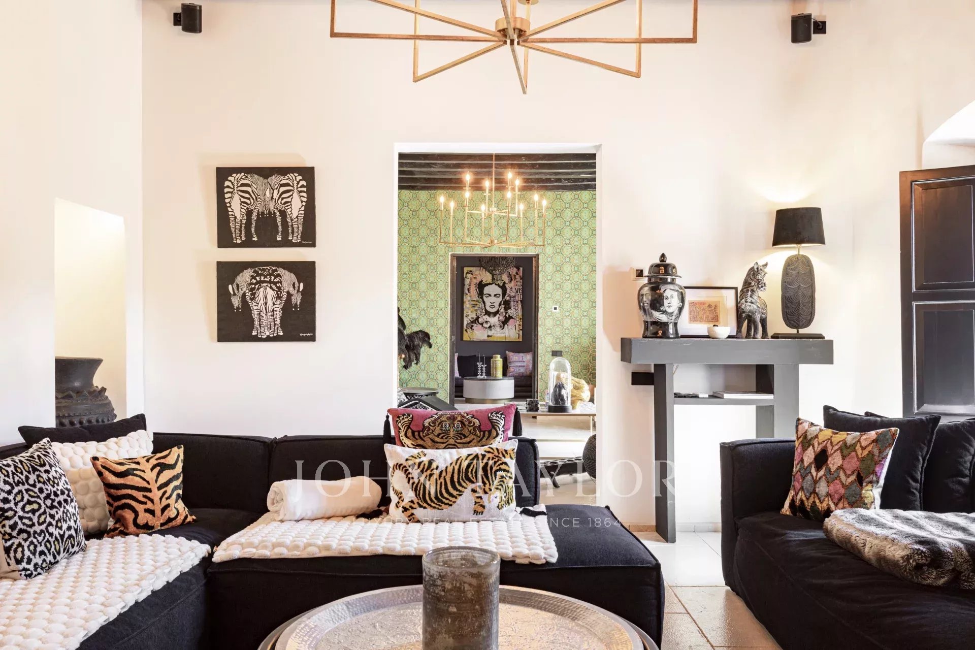 The main house is built on three floors and includes 6 bedrooms, 6 bathrooms, 3 dressing rooms, 3 lounge areas, a T.V. room, a fully fitted kitchen with dining area, 3 dressing rooms, a dance hall, and one of the coolest bars to be seen!
