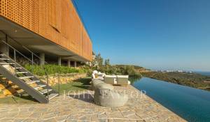 Landscaped by Isabel Duprat, the gardens feature native vegetation and a 20m x 5m pool with chlorine-free water purified by electrolysis, optionally heated using the home's geothermal system. Located in Casares between Marbella and Sotogrande, Finca Cortesin spans 215 hectares and includes private villas, a hotel, a golf course, a beach club, a spa, luxury restaurants, a heliport, and 24-hour security.