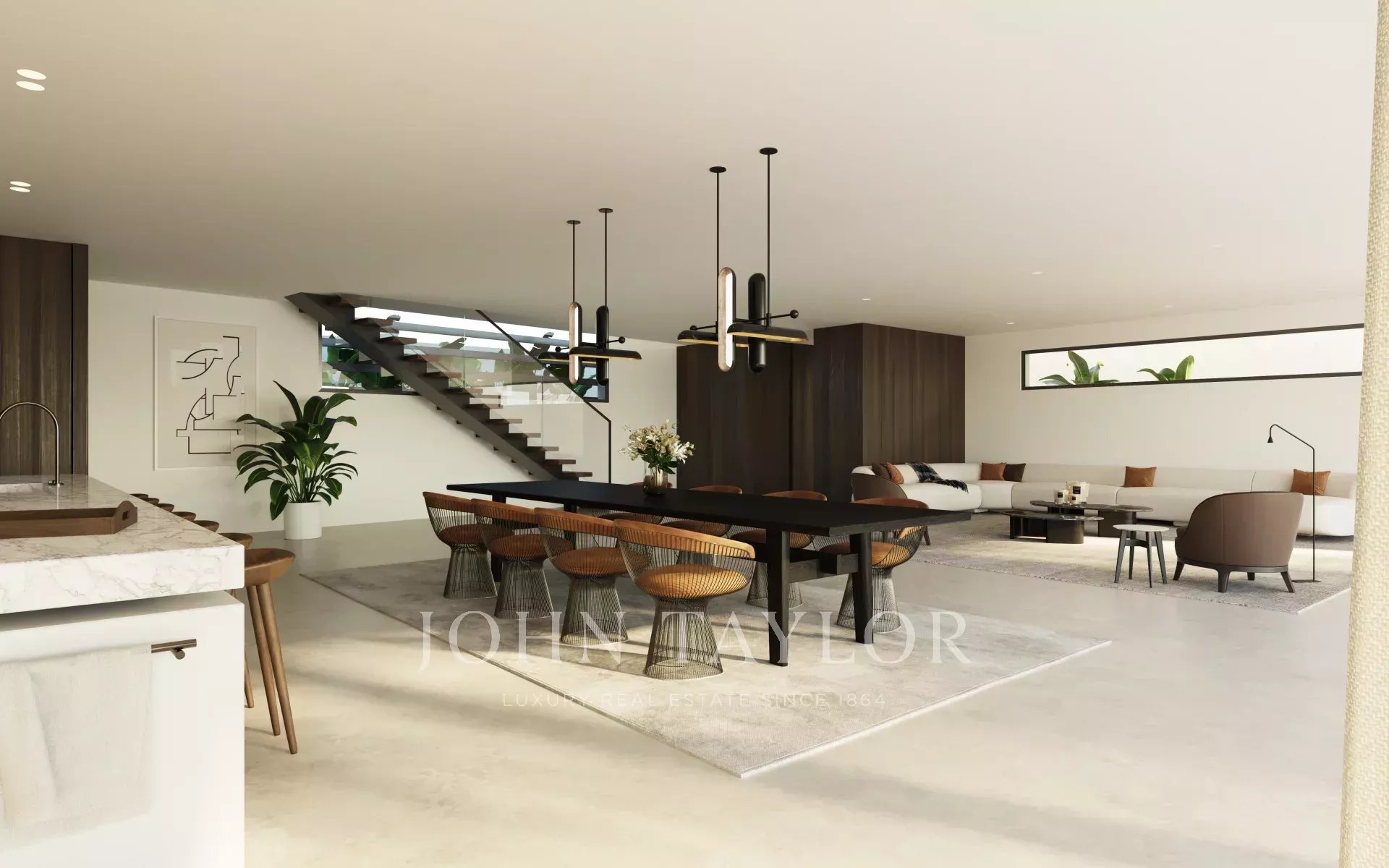 It comprises six en-suite bedrooms, a generous living area with an integrated kitchen, and a large basement. During the construction phase, the buyer will be able to choose the finishes according to personal preferences.