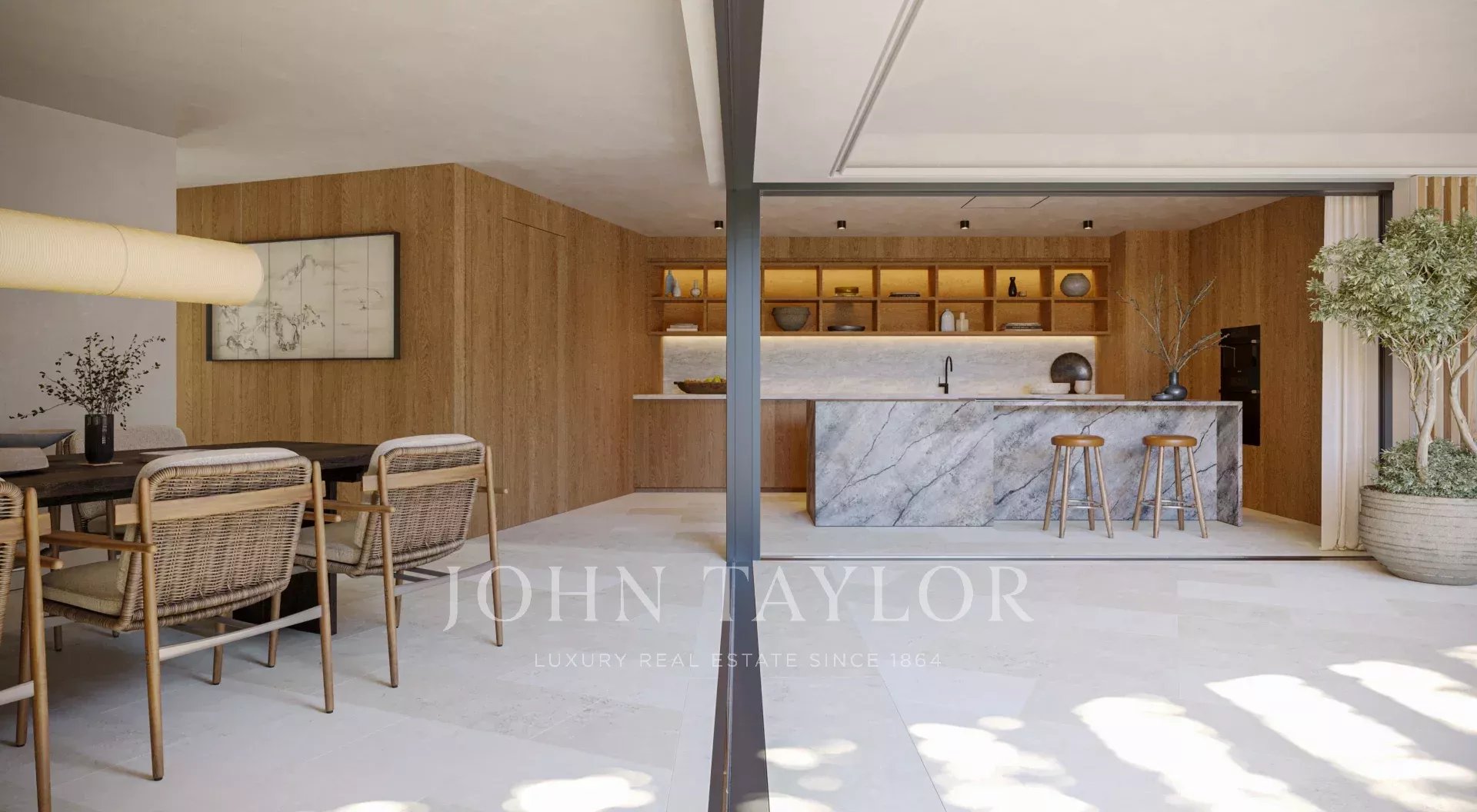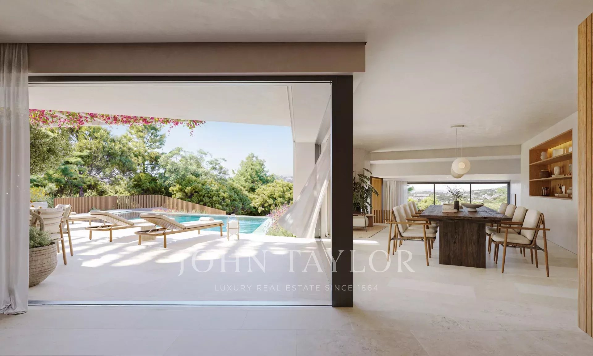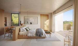 This exclusive villa is a haven of peace and luxury in Cap Martinet, Ibiza, set on a terraced plot surrounded by nature. The original stone walls have been carefully restored, highlighting the ascending path leading to the entrance. Its architectural design plays with volumes and lines, creating an immersive visual experience from the very first moment.