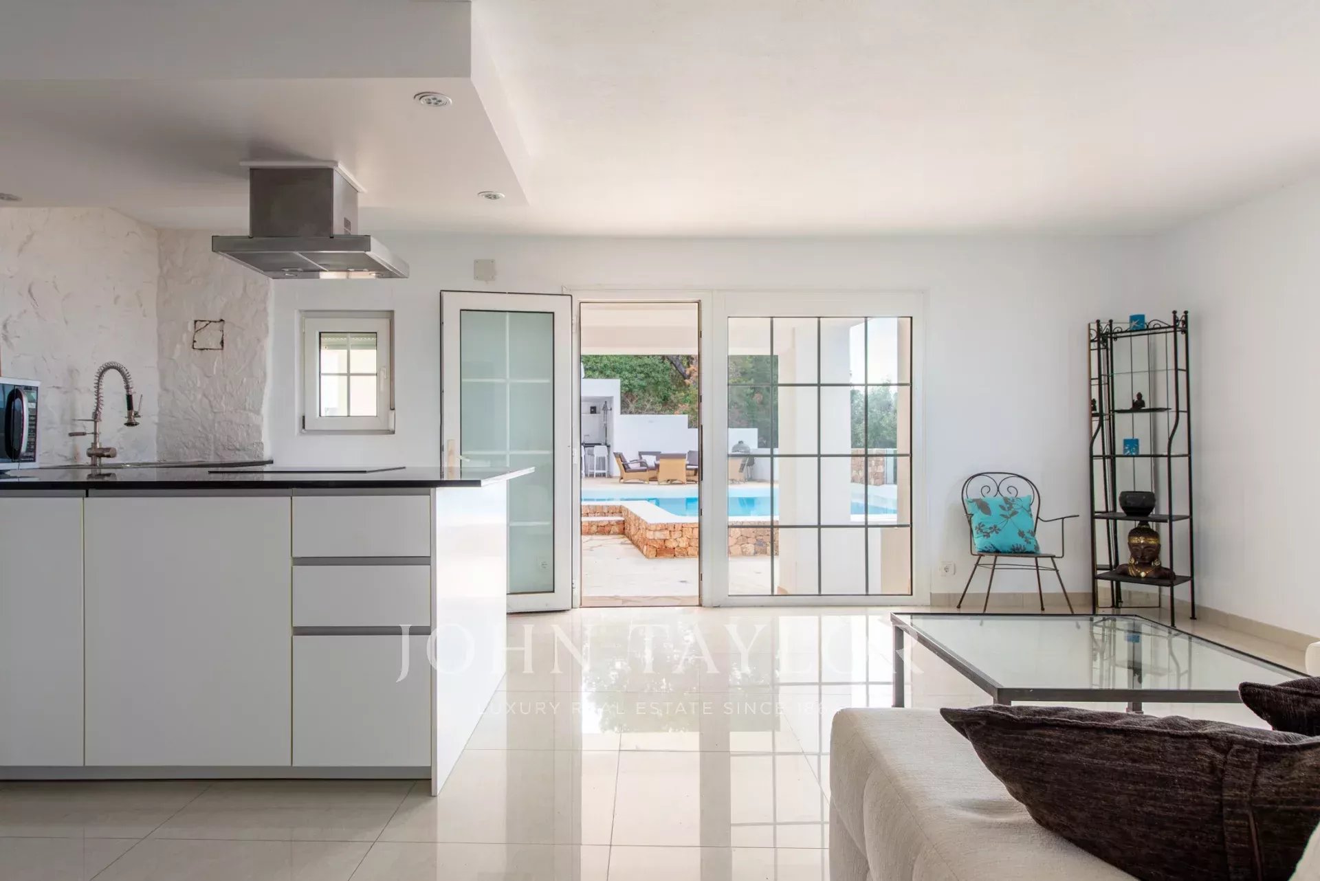 Ideally situated atop a hill near the beaches of Cala Comte and Cala Bassa, this villa offers easy access to restaurants, supermarkets and other nearby amenities.