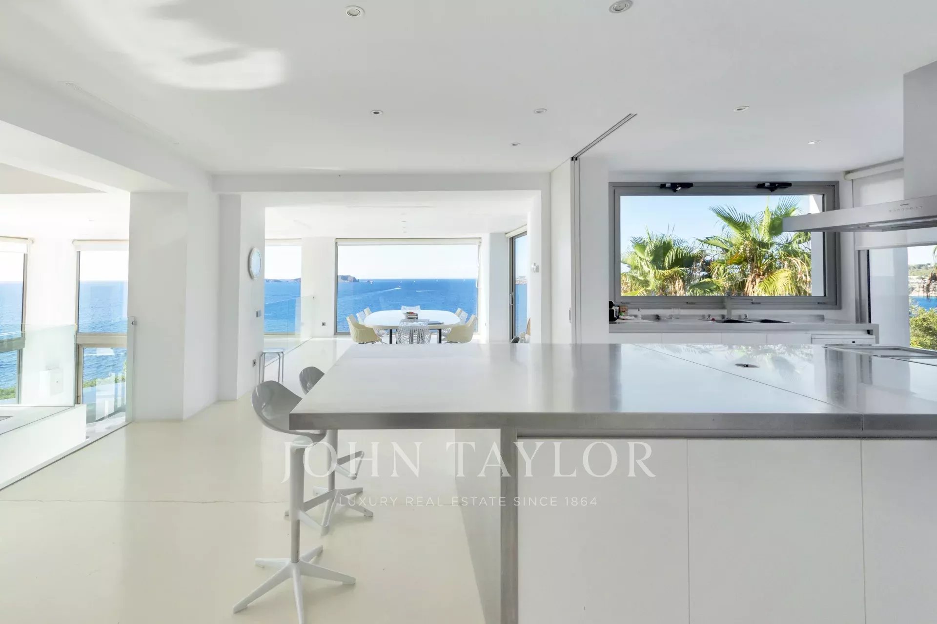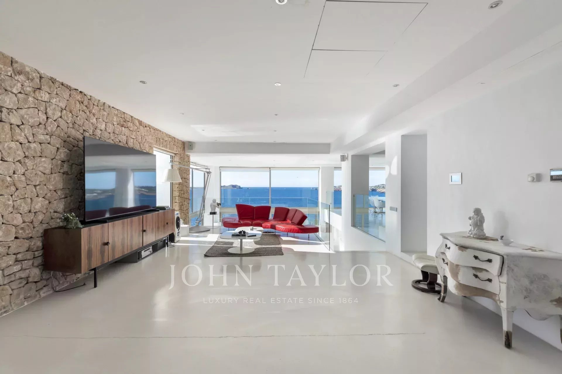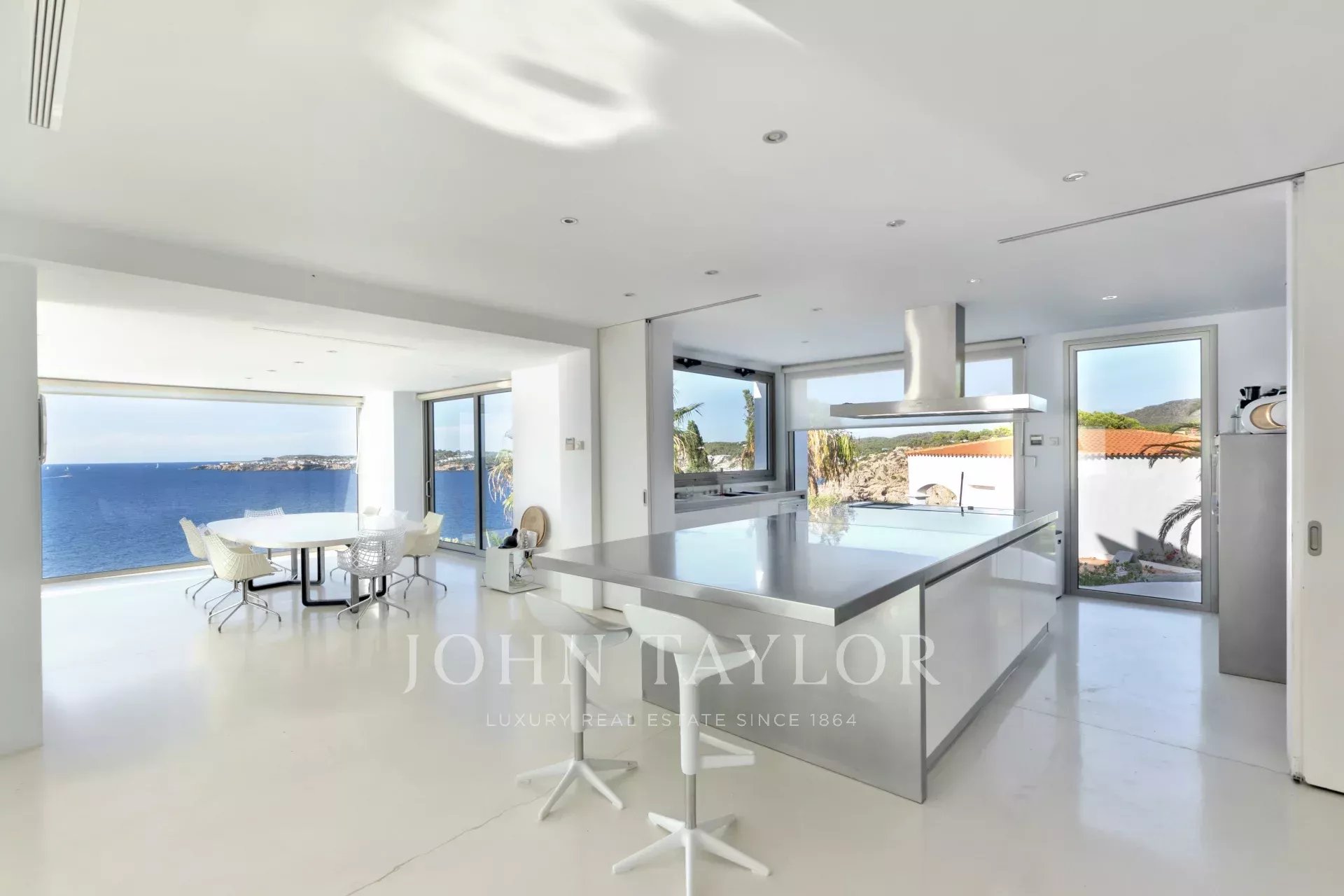 With seven spacious bedrooms and seven bathrooms, the property offers comfort and space to enjoy the true Mediterranean lifestyle. The bright, modern interiors open onto large terraces with several chill-out areas, where the main feature is the sea — offering panoramic views of the sea and sunsets that take your breath away.